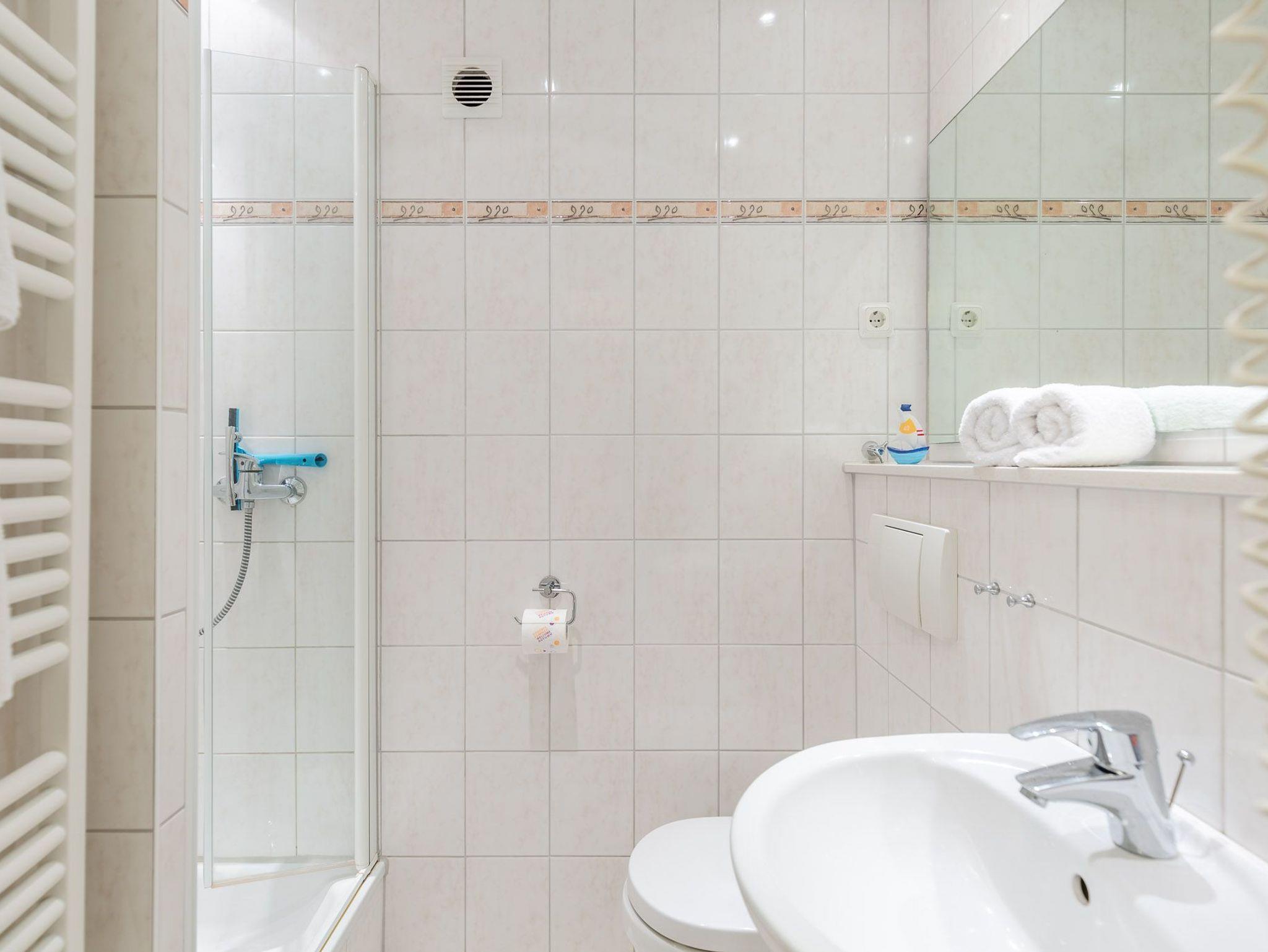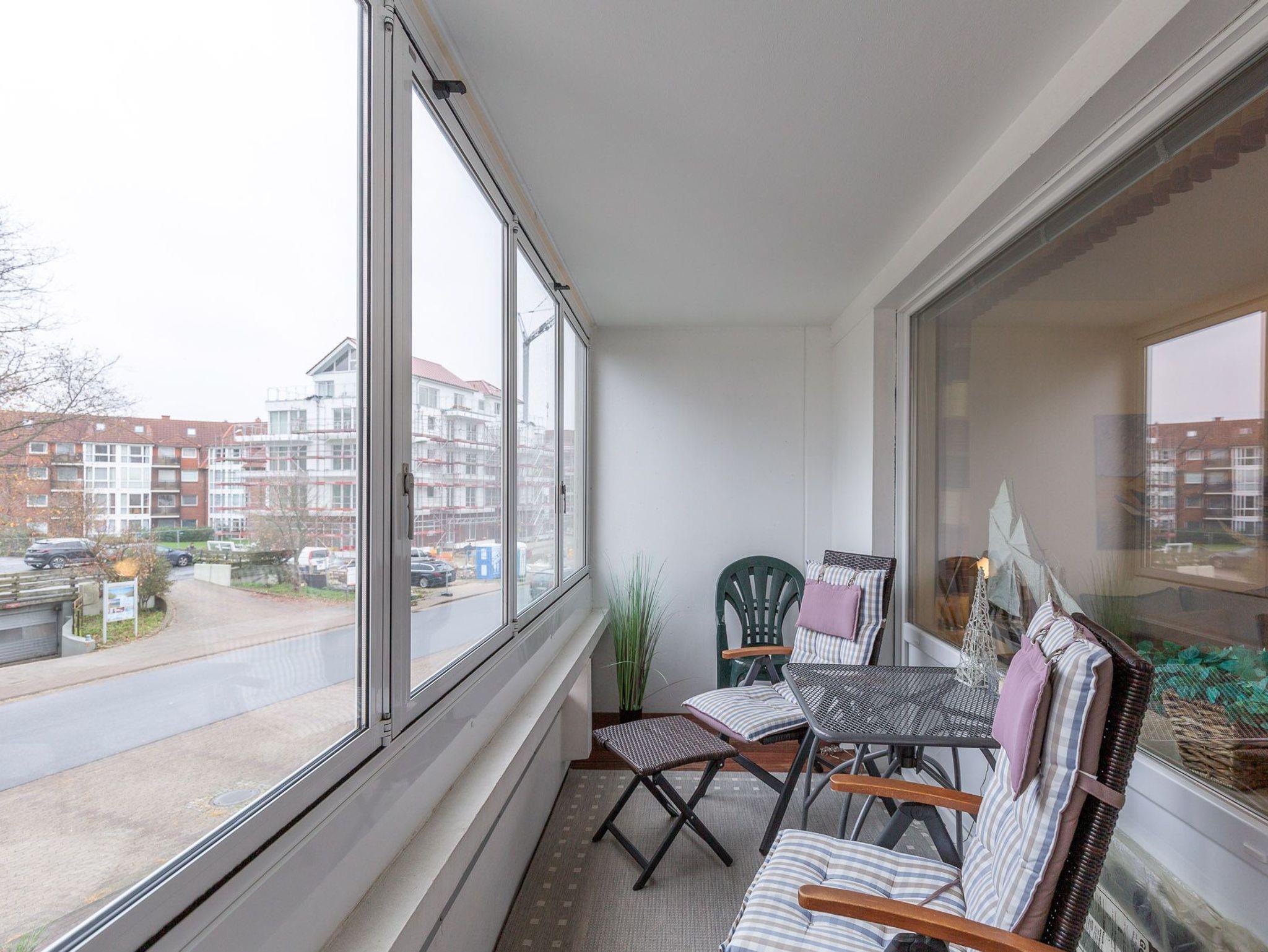 Des Weiteren bietet Ferienwohnung Atlantic 113 einen verglasten und möblierten Balkon. Die Verglasung lässt sich bei Bedarf öffnen. Das moderne Bad ist mit Dusche, WC und einem Handtuchtrockner ausgestattet. Der Wohnung ist ein KFZ-Stellplatz fest zugeordnet.