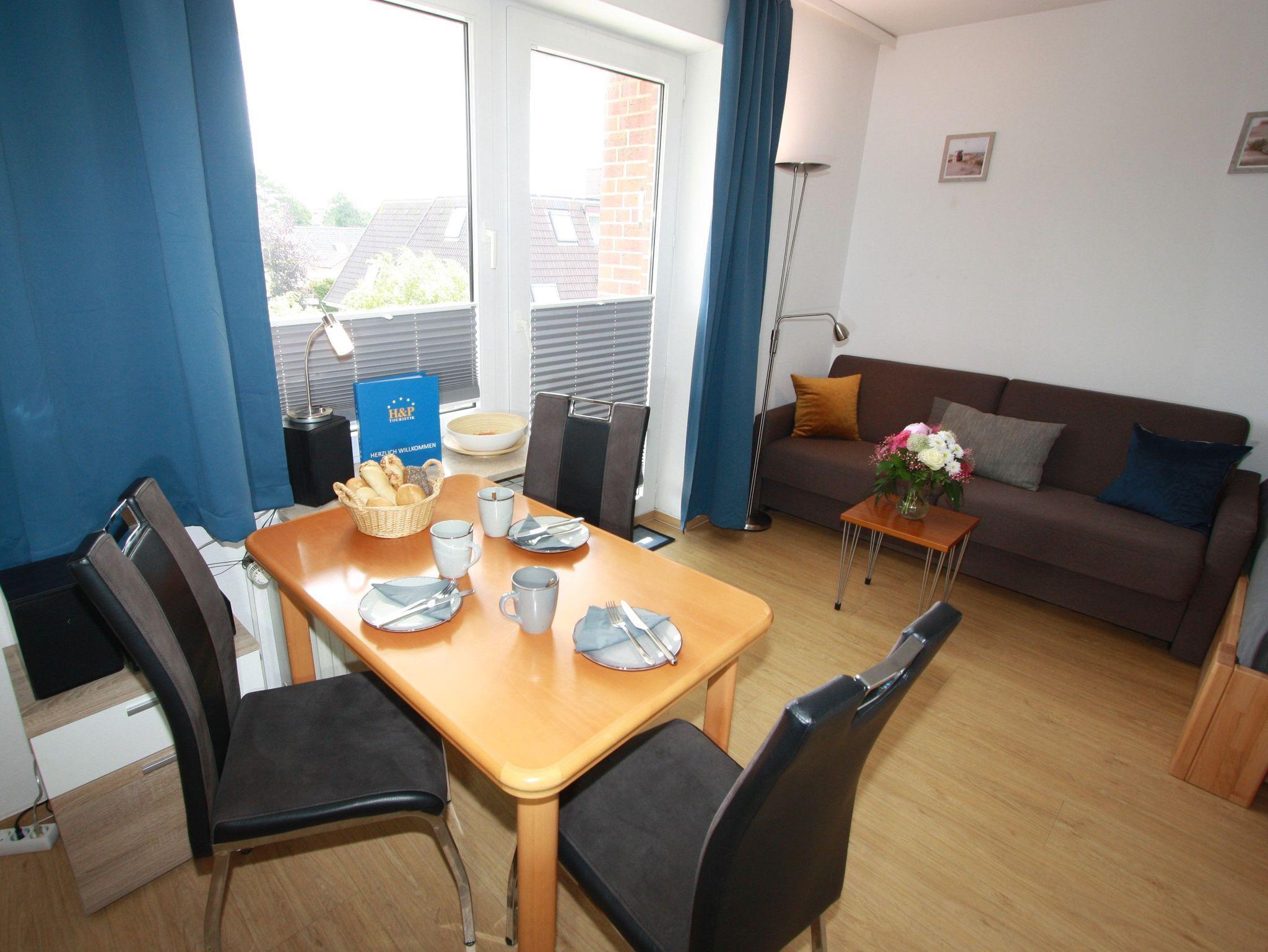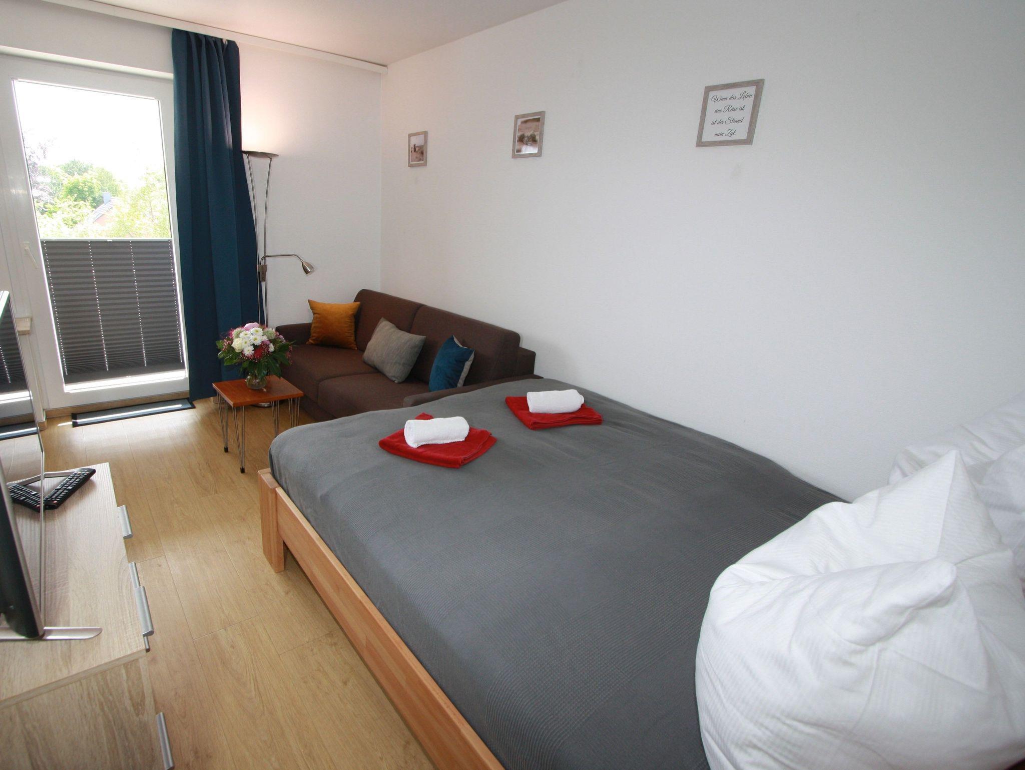 Sie wohnen in einem 1-Zimmer-Appartement für bis zu 2 Personen auf ca. 30 m² Wohnfläche. Die Ferienwohnung verfügt über einen Wohn-/Schlafraum mit hochwertiger Schlafcouch, LCD-TV, Mini-Hifi-Anlage, Internetzugang, voll ausgestattetem Küchenbereich mit Essplatz, Dusche/WC, ostseitigem Balkon (Morgensonne!) und Tiefgaragenplatz.