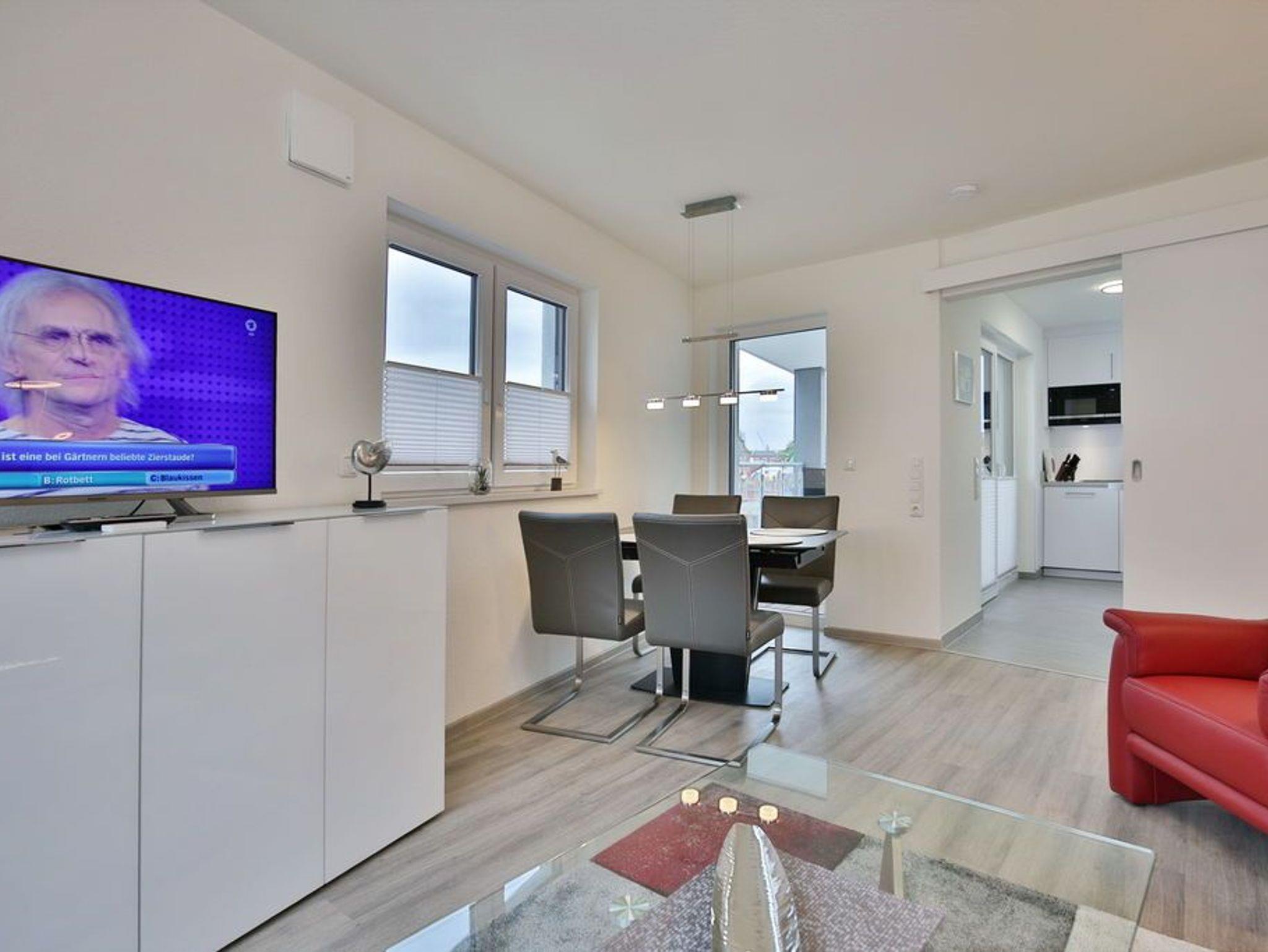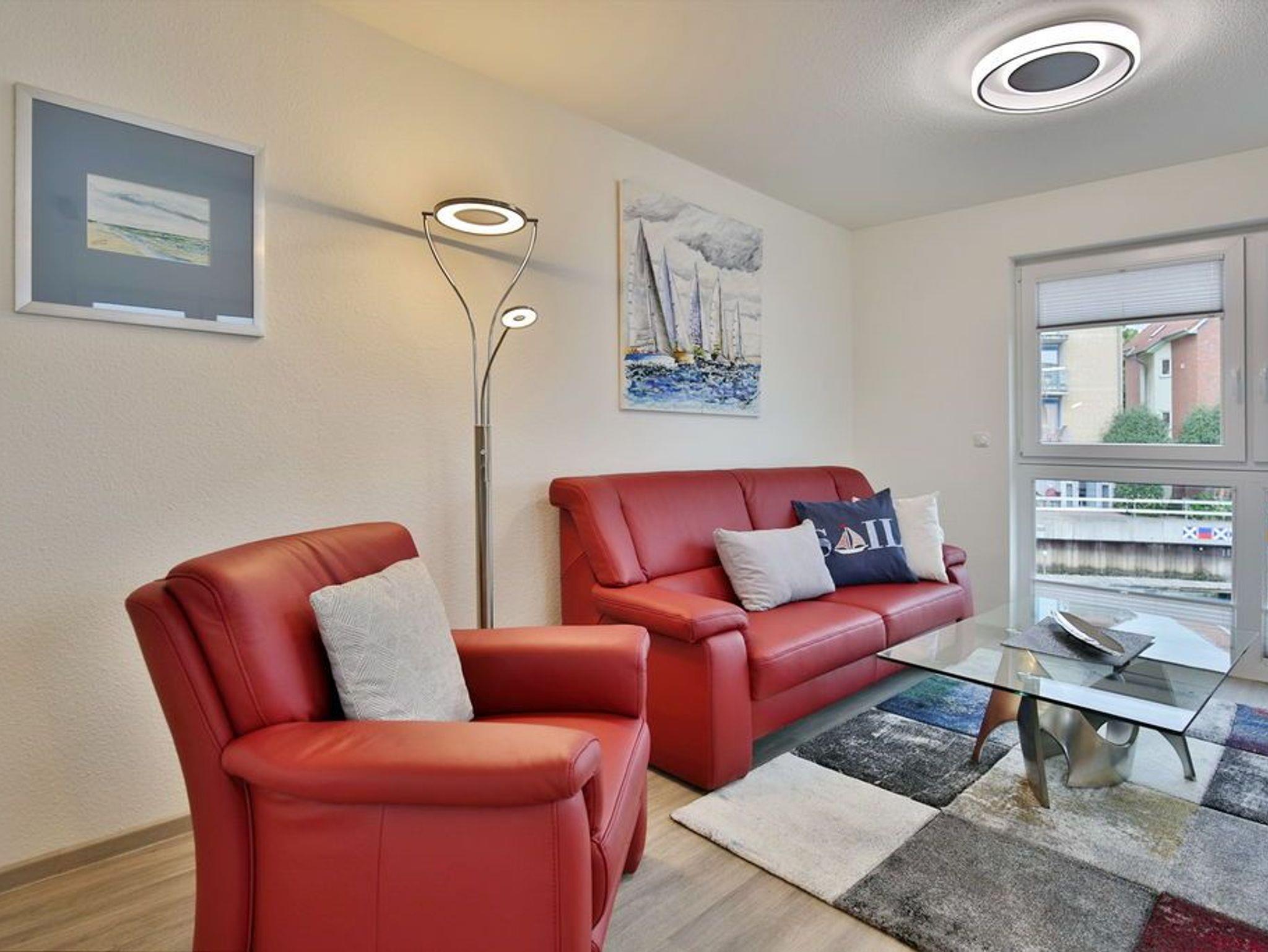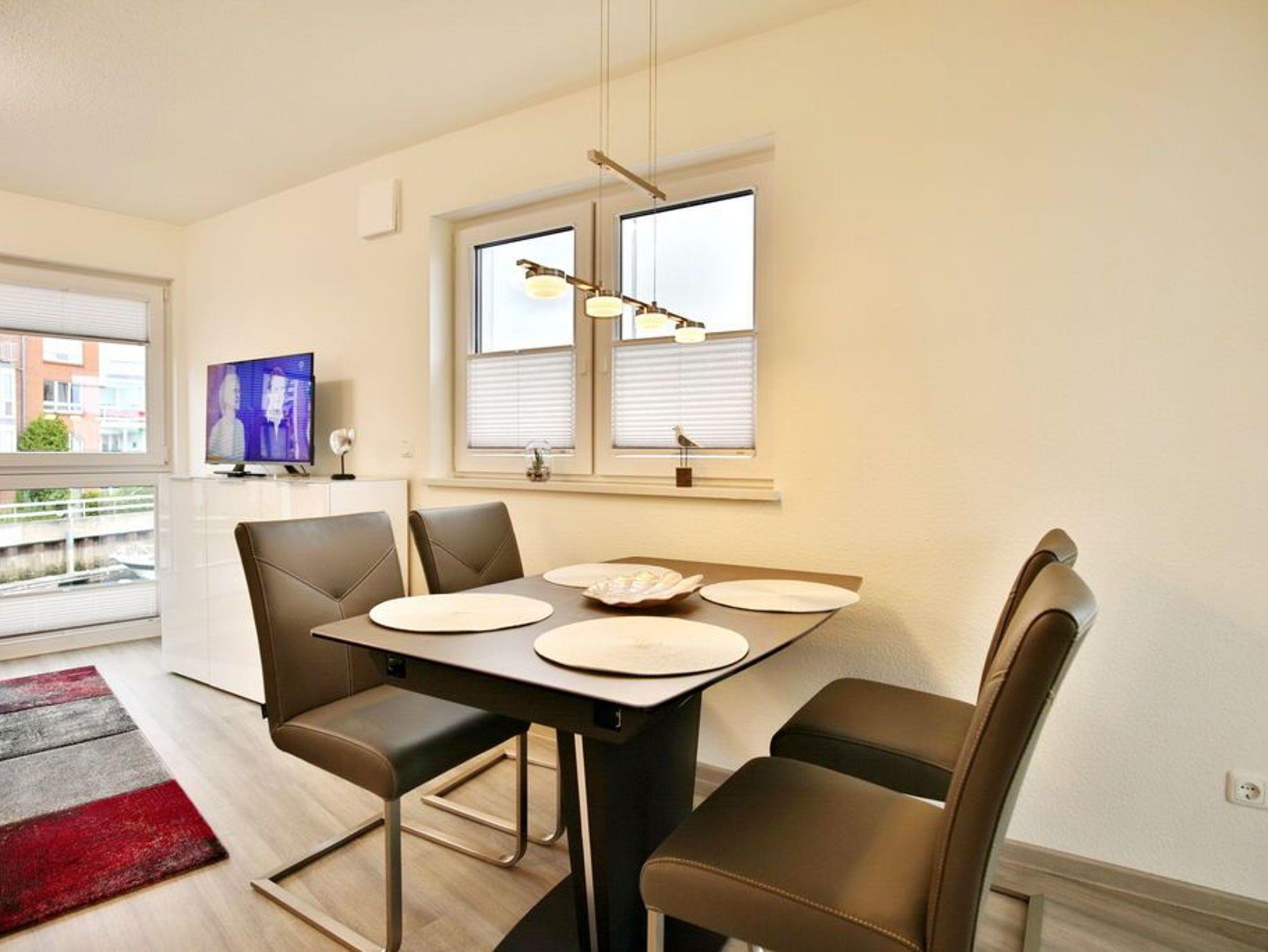 Schöner Blick in die City Marina! 2-Raum-Wohnung für 2 Pers. in der 1.Etage mit überdachtem Balkon (nord-ost). Voll ausgestattete Küchenzeile mit Backofen, Geschirrspüler etc.. Wohn- Esszimmer mit TV, Radio, Schlafzimmer mit Doppelbett, Badezimmer mit ebenerdige Dusche/WC, kostenloses Wlan, alle Fenster mit elktr. Rollläden, Aufzug, Waschmaschine/Trockner i.d. Wohnung, Stellplatz #4 und großer separater Abstellraum mit E-Bike Lademöglichkeit, Waschmaschine/Trockner i.d. Wohnung, keine Haustiere und natürlich Nichtraucher.