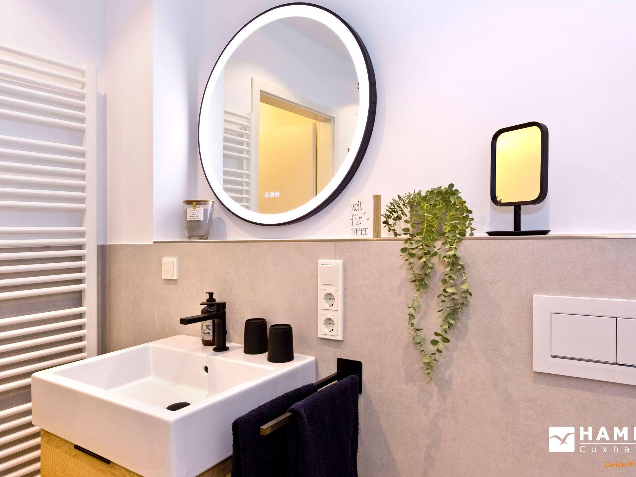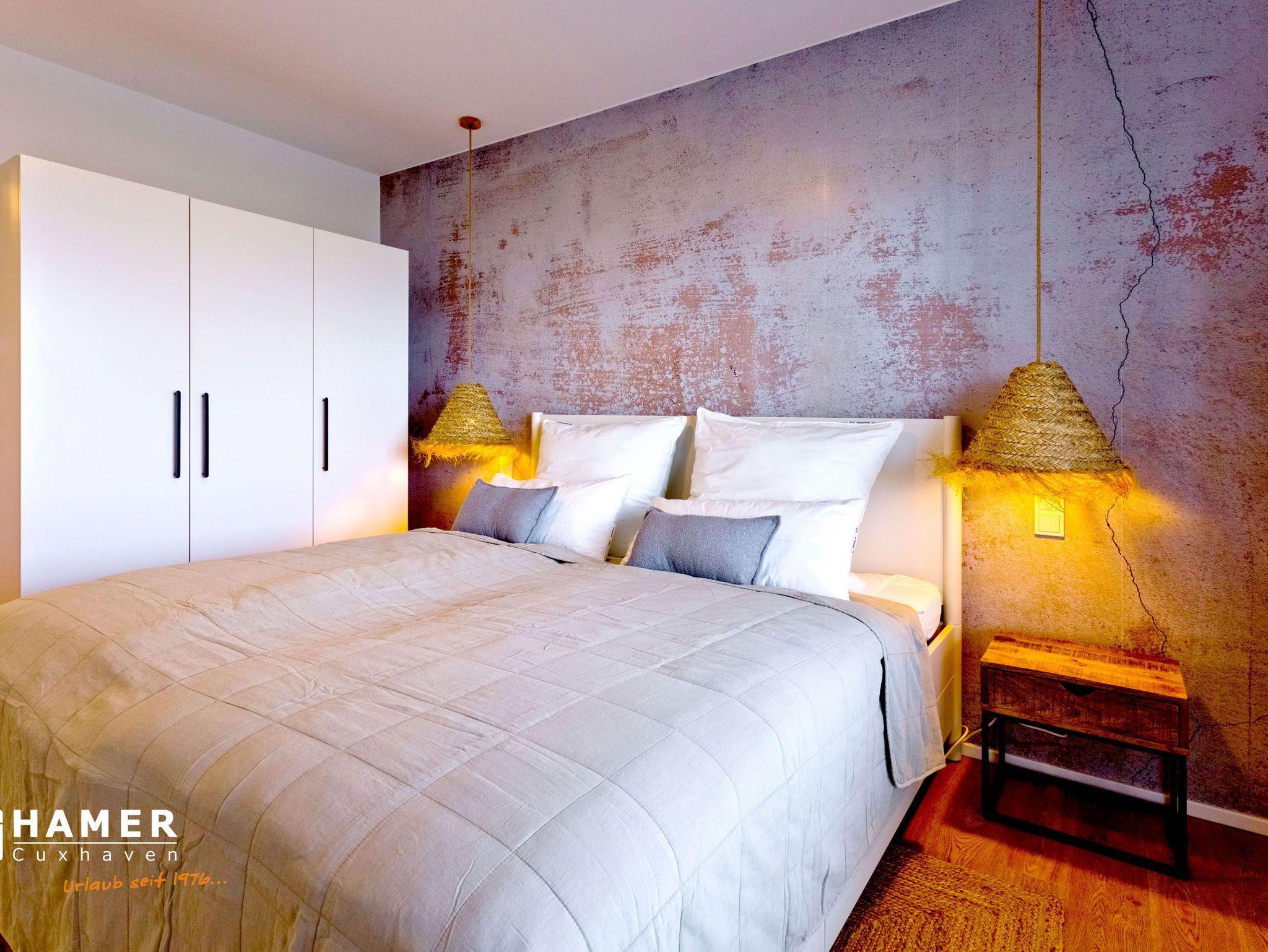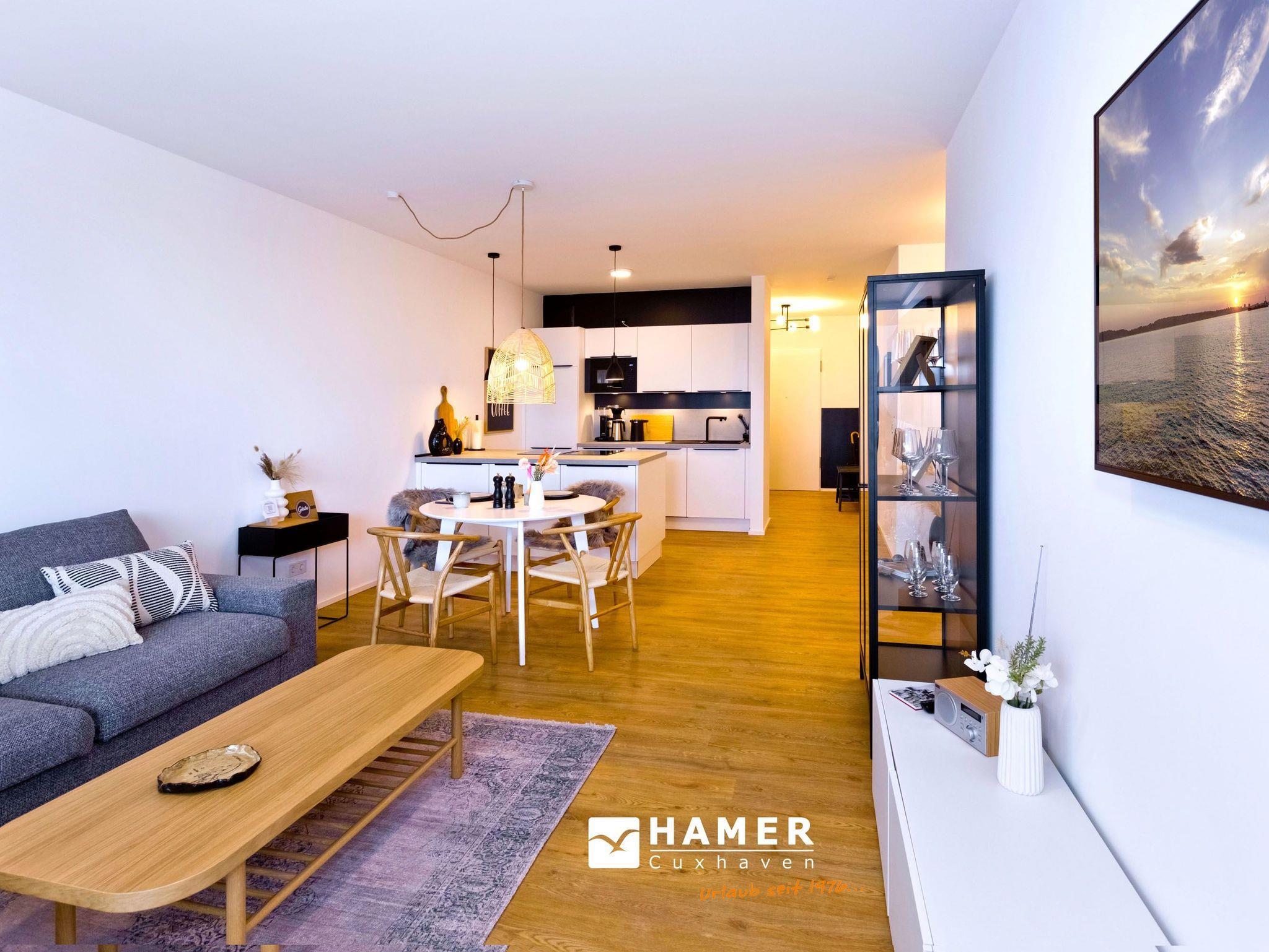 Sehr schöne, großzügige 2-Raum-Ferienwohnung auf ca. 73m² für bis zu 4 Personen (max. 2 Erw. 2 Kinder bis 16J.) geeignet. Großzügiges Wohn- / Schlafzimmer mit hochwertiger Schlafcouch, TV, Radio, kostenloses W-LAN-Internet, Essplatz an Küchenblock angrenzend, Außenjalousien u. Plissees, Zugang zur Terrasse mit Seeblick auf Neuwerk, eigener Strandkorb auf der Terrasse.