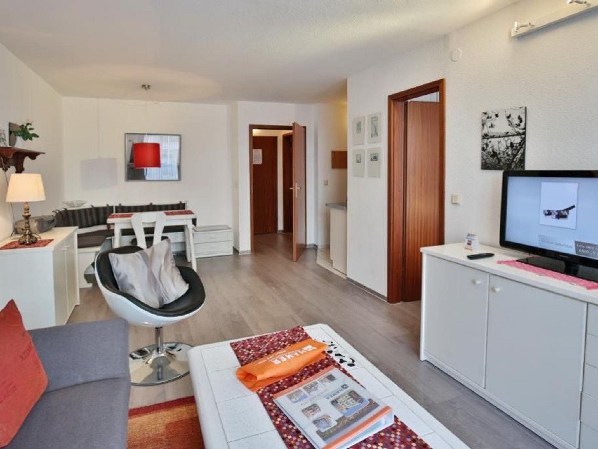 2-Raum-Wohnung auf ca. 45m², parterre, komplett ausgestattet bis 3 Pers., 1 Schlafzimmer mit Doppelbett (1,90m), 1 kombiniertes Wohn/Schlafzimmer mit Doppelbettcouch, SAT-TV, kostenloses W-Lan, Küchenzeile, Du/WC, Flur, Nichtraucher, kleine Ost-Terrasse mit Rasenanteil (mit Balkonmöbeln [&] Sonnenschirm, saisonabhängig), keine Haustiere erlaubt, Stellplatz #3 in der Tiefgarage