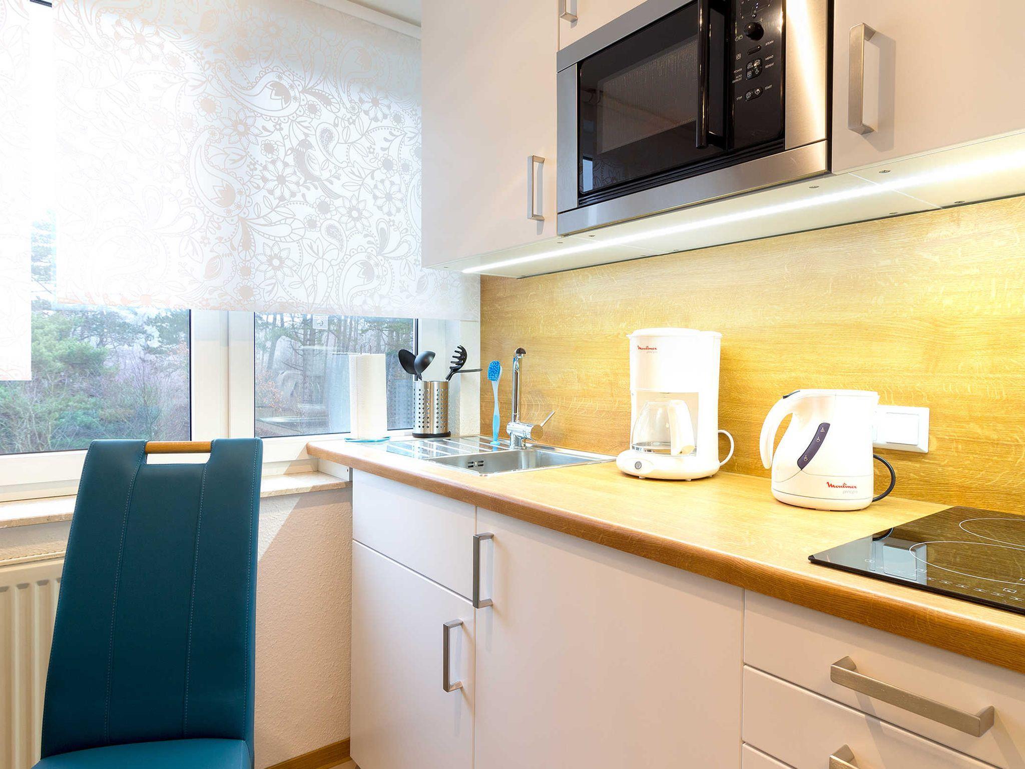 Die separate, gut ausgestattete Küche lädt zum Schlemmen und Klönen (Norddeutsches Wort für Miteinander Sprechen) ein.