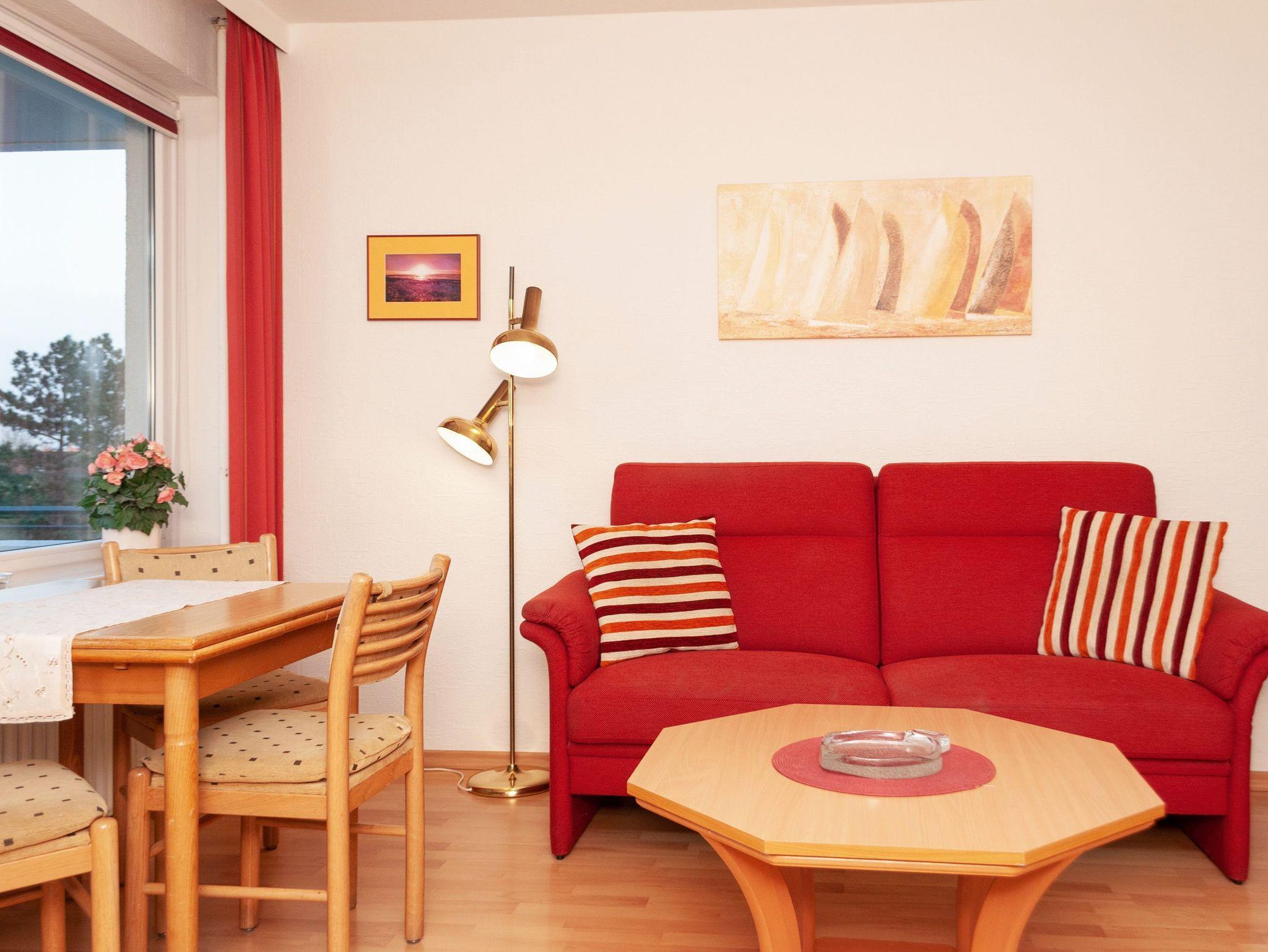 Das Apartment 412 ist ein 2-Raum-Apartment im 4. Obergeschoss für bis zu 4 Personen mit 50 qm. Der Ostbalkon mit Meerblick bietet Ihnen vormittags Sonne und nachmittags Schatten.