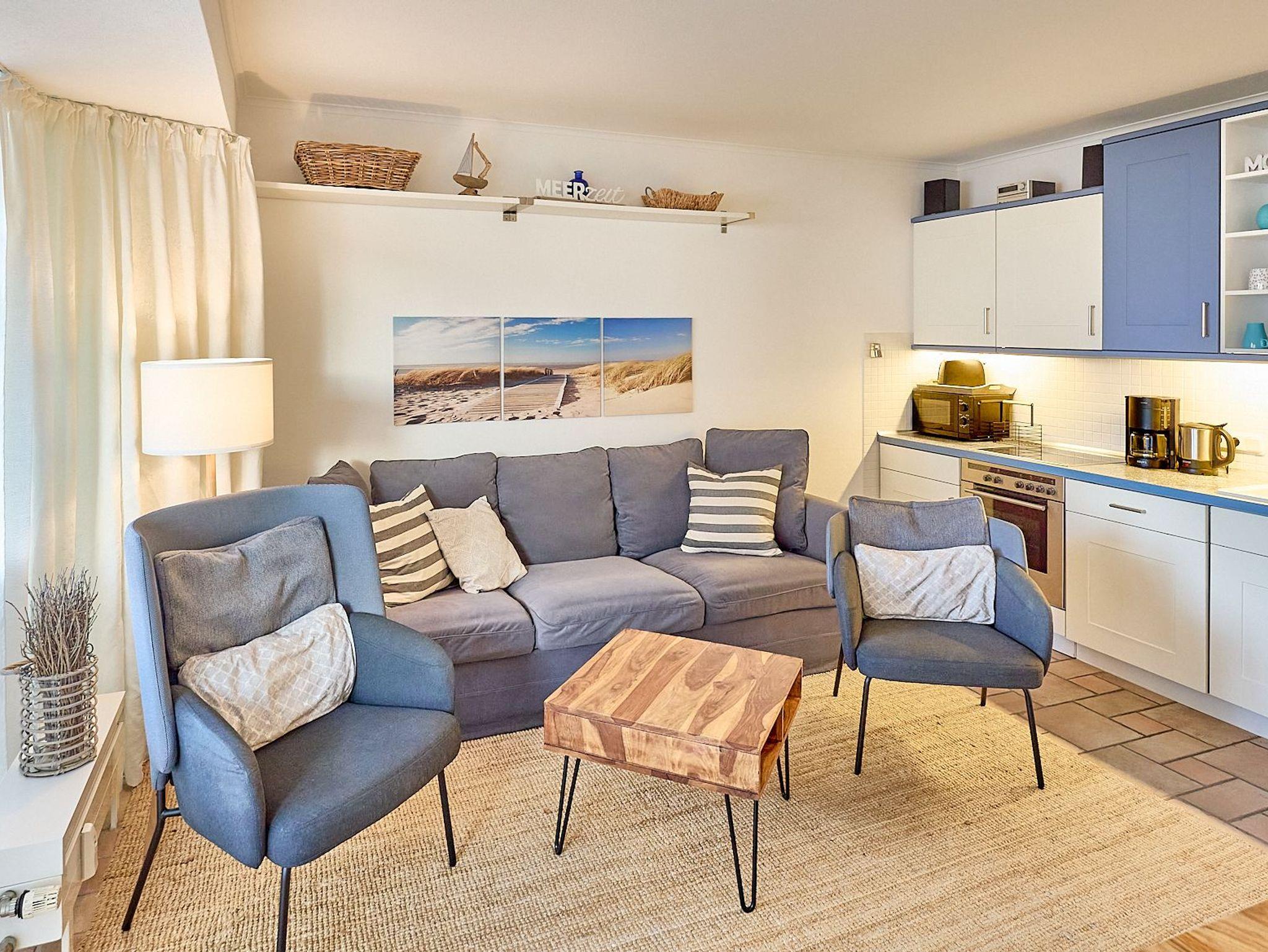 Willkommen in der Duhner Brise ? FeWo 15, Ihrem gemütlichen Urlaubszuhause nur rund 100 Meter vom Strand entfernt. Die freundlich gestaltete Ferienwohnung im 1. Obergeschoss bietet Platz für bis zu 4 Personen und überzeugt durch eine angenehme Aufteilung, zwei schöne Balkone und die ideale Lage zwischen Strand, Promenade und Ortszentrum.