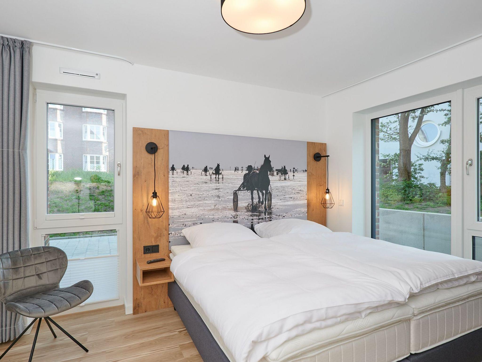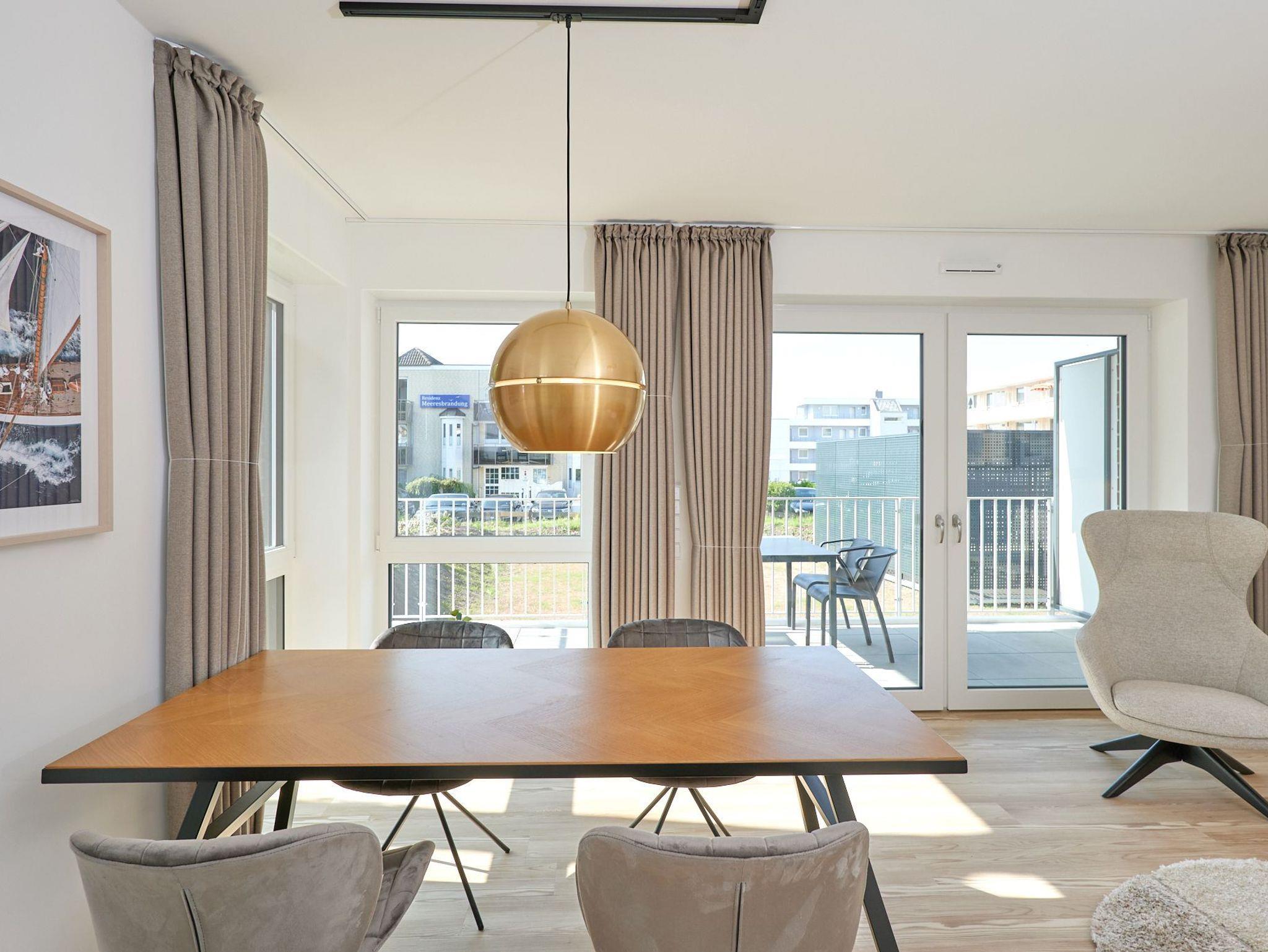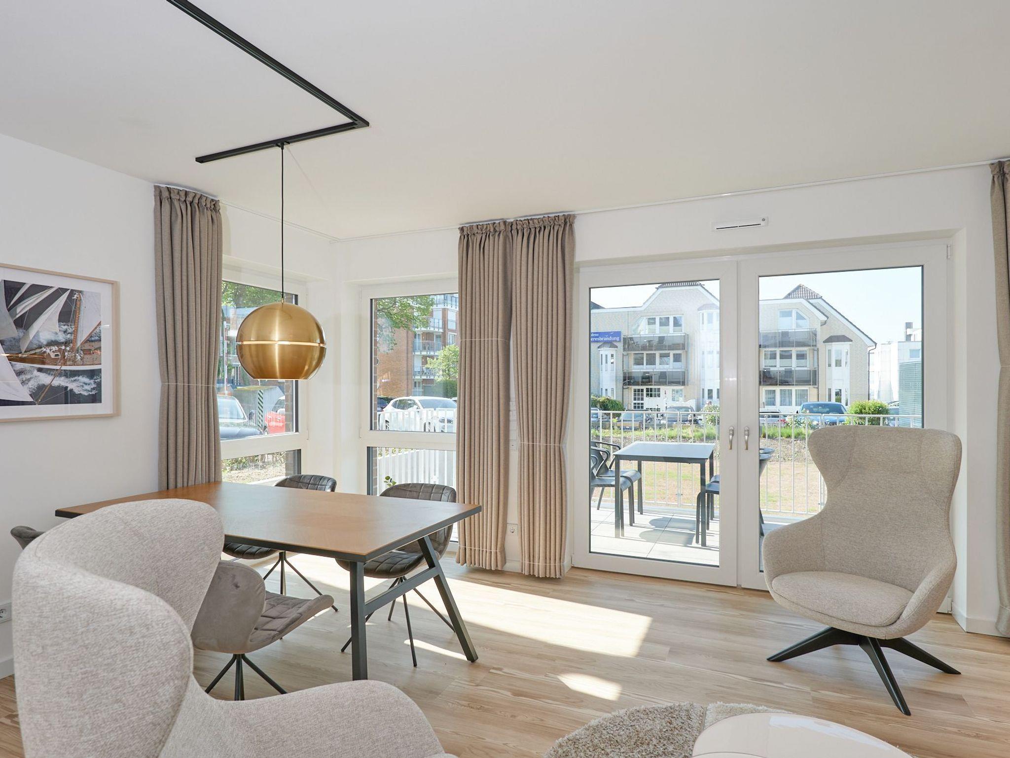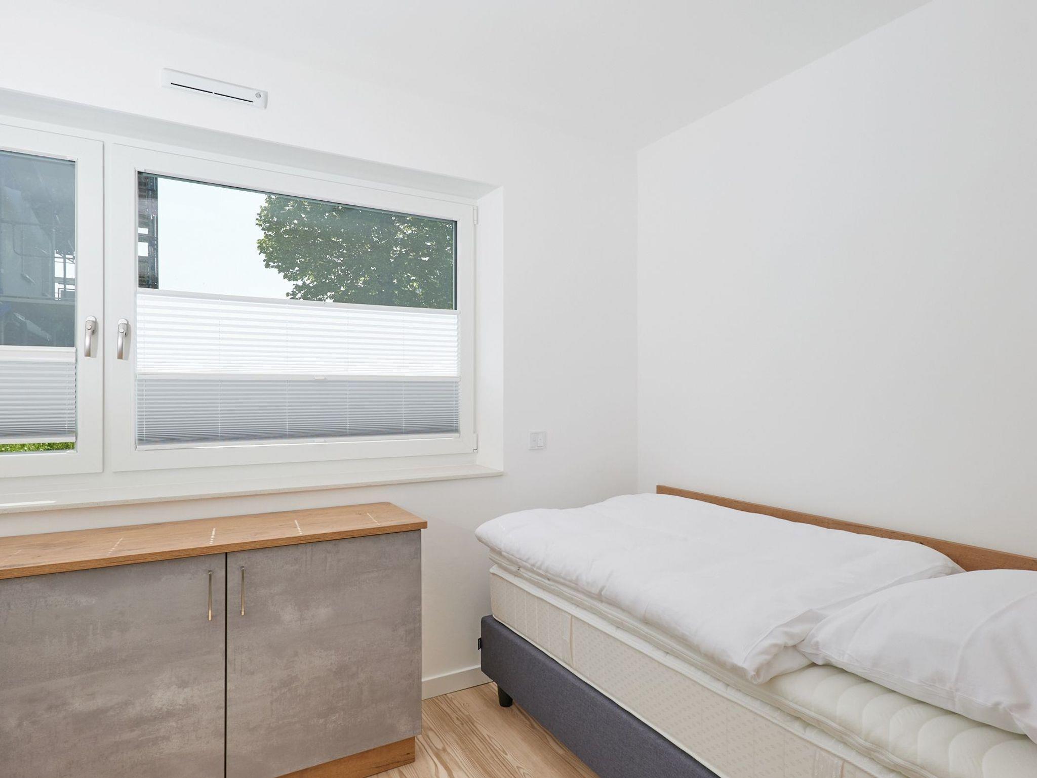 Neubau Mai 2023! Sehr schöne, moderne 3-Raum-Wohnung bis 4 Pers. voll ausgestattet auf ca. 66 m² in der 1.Etage gelegen, 2 Schlafzimmer (1x Doppelbett, 1x 2 Einzelbetten) und Außenjalousien an allen Fenstern, ebenerdige Dusche/WC, Wohnzimmer mit großer Küchenzeile (Backofen, Geschirrspüler, Mikrowelle) 2x Kabel-TV, Radio, kostenfreies W-LAN-Internet, Balkon (nord/west), Personenaufzug, die Wohnung ist barrierefrei erreichbar, reservierter Pkw-Stellplatz in der Tiefgarage inkl., es sind keine Haustiere erlaubt und natürlich Nichtraucher. Durchfahrtshöhe Tiefgarage: 2,05m.