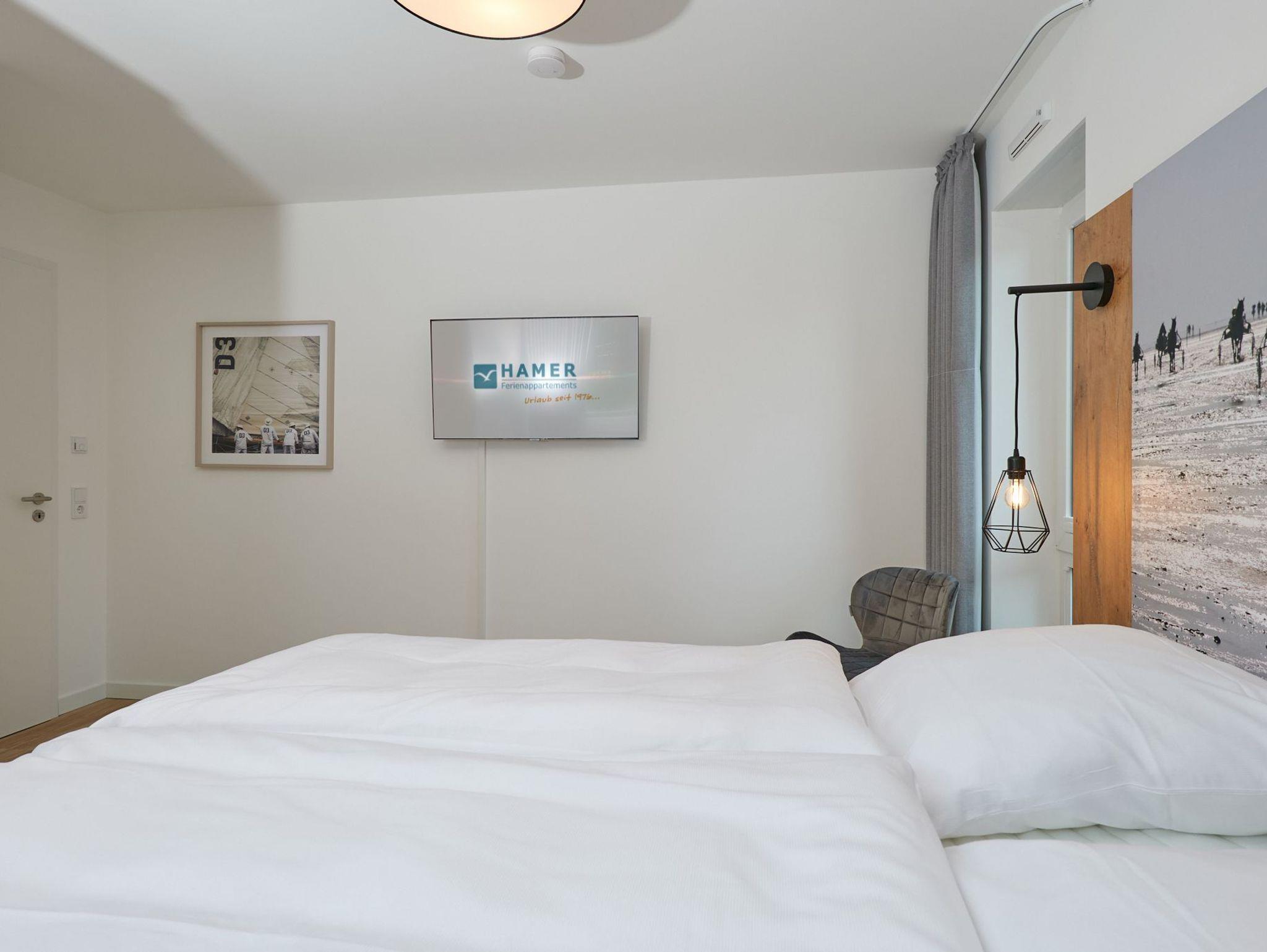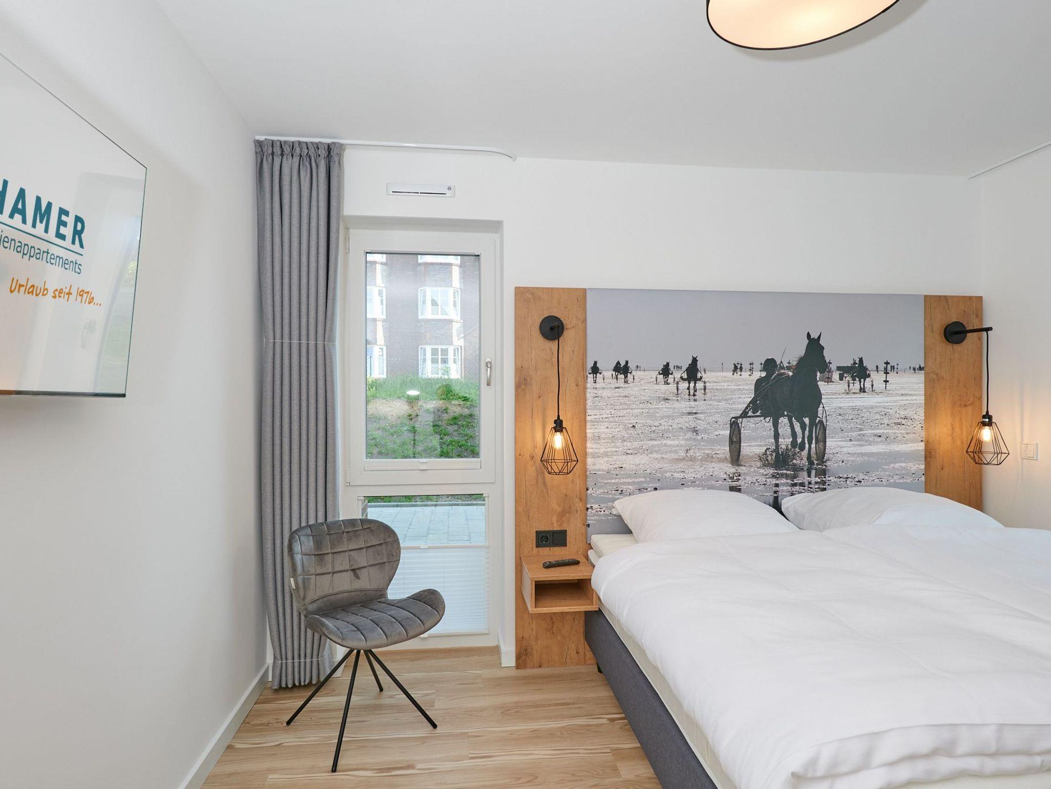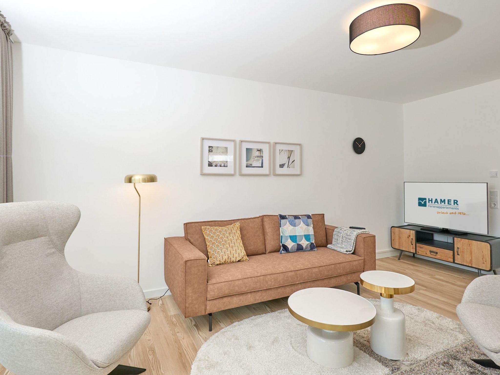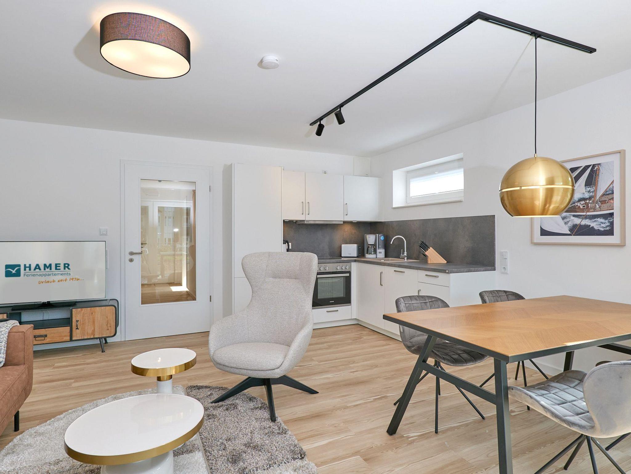 Neubau Mai 2023! Sehr schöne, moderne 3-Raum-Wohnung bis 4 Pers. voll ausgestattet auf ca. 66 m² in der 1.Etage gelegen, 2 Schlafzimmer (1x Doppelbett, 1x 2 Einzelbetten) und Außenjalousien an allen Fenstern, ebenerdige Dusche/WC, Wohnzimmer mit großer Küchenzeile (Backofen, Geschirrspüler, Mikrowelle) 2x Kabel-TV, Radio, kostenfreies W-LAN-Internet, Balkon (nord/west), Personenaufzug, die Wohnung ist barrierefrei erreichbar, reservierter Pkw-Stellplatz in der Tiefgarage inkl., es sind keine Haustiere erlaubt und natürlich Nichtraucher. Durchfahrtshöhe Tiefgarage: 2,05m.