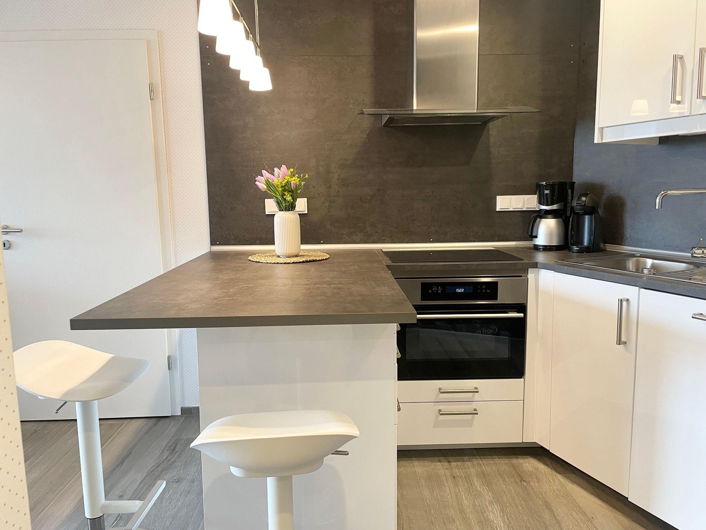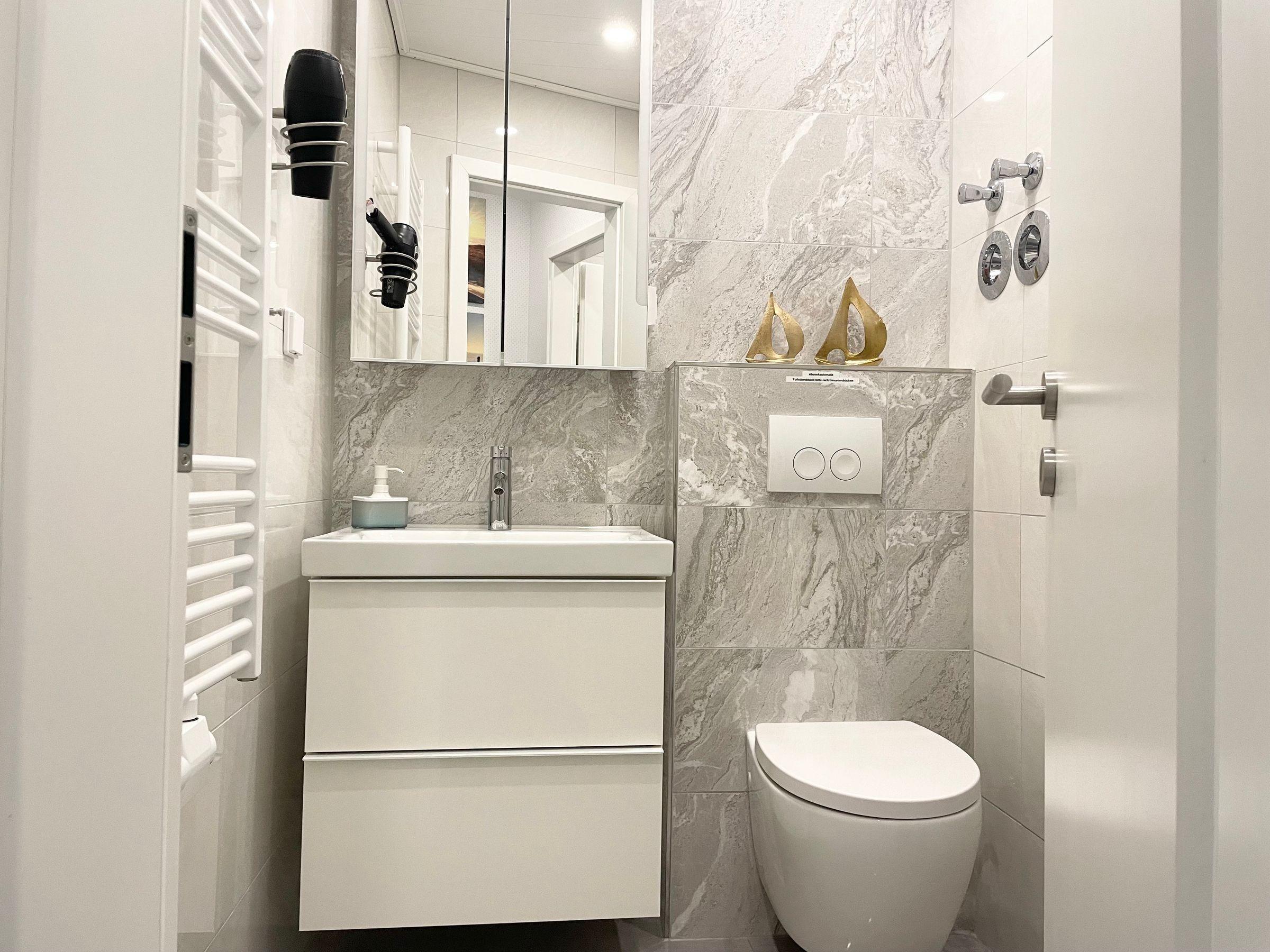 Die Ferienwohnung im Haus Meeresbrandung in Cuxhaven-Duhnen bietet einen komfortablen Rückzugsort in vierter Etage mit direktem Zugang über einen Aufzug. Der Flur heißt mit einem SmartHome-System willkommen und verfügt über eine Garderobe sowie einen bodentiefen Spiegel. Die Wohnung ist mit einem offenen Wohnbereich ausgestattet, der ein Designer-Ledersofa, einen Smart-TV und einen massiven Esstisch umfasst. Die moderne Küche bietet eine umfangreiche Ausstattung, darunter einen Kühlschrank mit Gefrierfach, Spülmaschine und Induktionsherd. Das Schlafzimmer beherbergt ein KingSize-Doppelbett, einen großen Kleiderschrank mit Möbeltresor, sowie individuell verstellbare Leselampen. Die Bäder sind modern gestaltet und verfügen über eine Regendusche sowie eine separate Toilette. Zudem stehen ein gemeinschaftliches Schwimmbad und eine Sauna im Keller zur Verfügung, die über den Aufzug erreichbar sind.