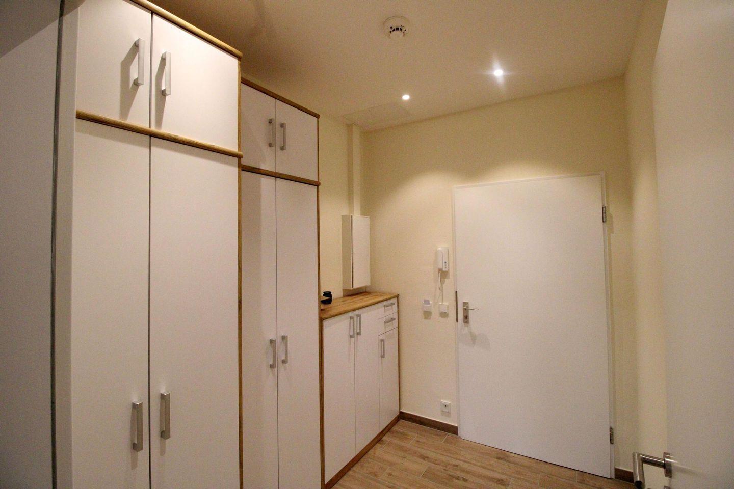 Die Wohnung wurde bis Juni 2020 von Grund auf saniert und mit hochwertigen Materialien und komfortablen sowie modernen Möbeln ausgestattet. Es handelt sich um eine 1-Raum-Wohnung (ca. 49 qm) mit kombinierten Wohn-Schlafraum für max. 2 Personen. Sie verfügt über eine komplett ausgestattete Küchenzeile, eine Essecke, eine Fernsehecke mit Polstermöbel, einen
