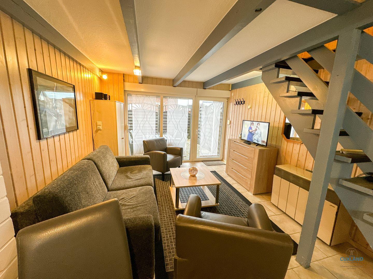 In diesem 40qm großen Ferienhäuschen finden bis zu 3 Personen Platz. Auf zwei Ebenen erstreckt sich das Haus, wobei sich das gemütliche Schlafzimmer mit einem zusätzlichen TV im oberen Bereich befindet. Der Wohn- und Essbereich mit offener Küche im unteren Bereich bietet Zugang zur großen Sonnenterrasse mit Terrassenmöbeln. Ein reservierter Parkplatz gehört ebenfalls zum Haus.