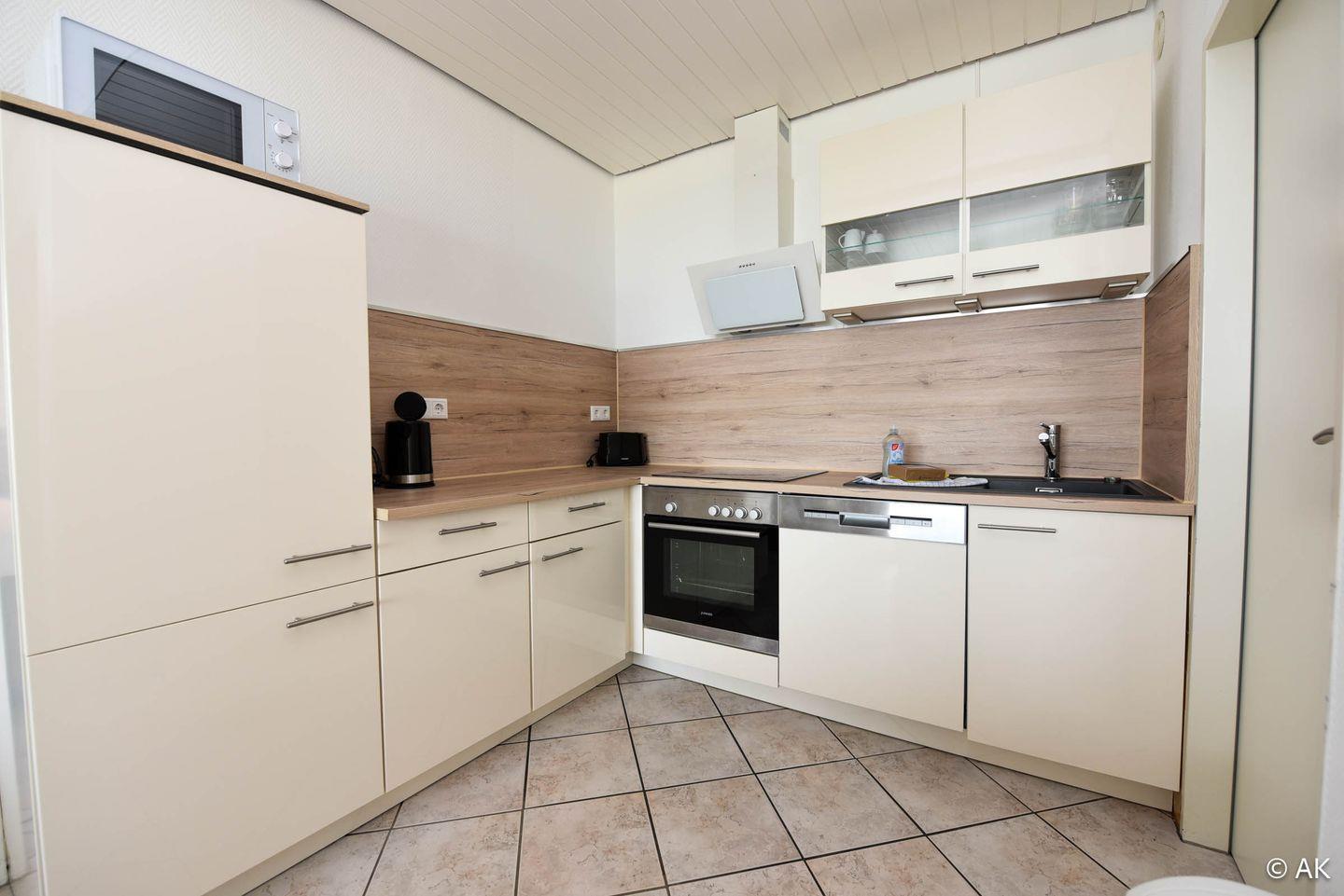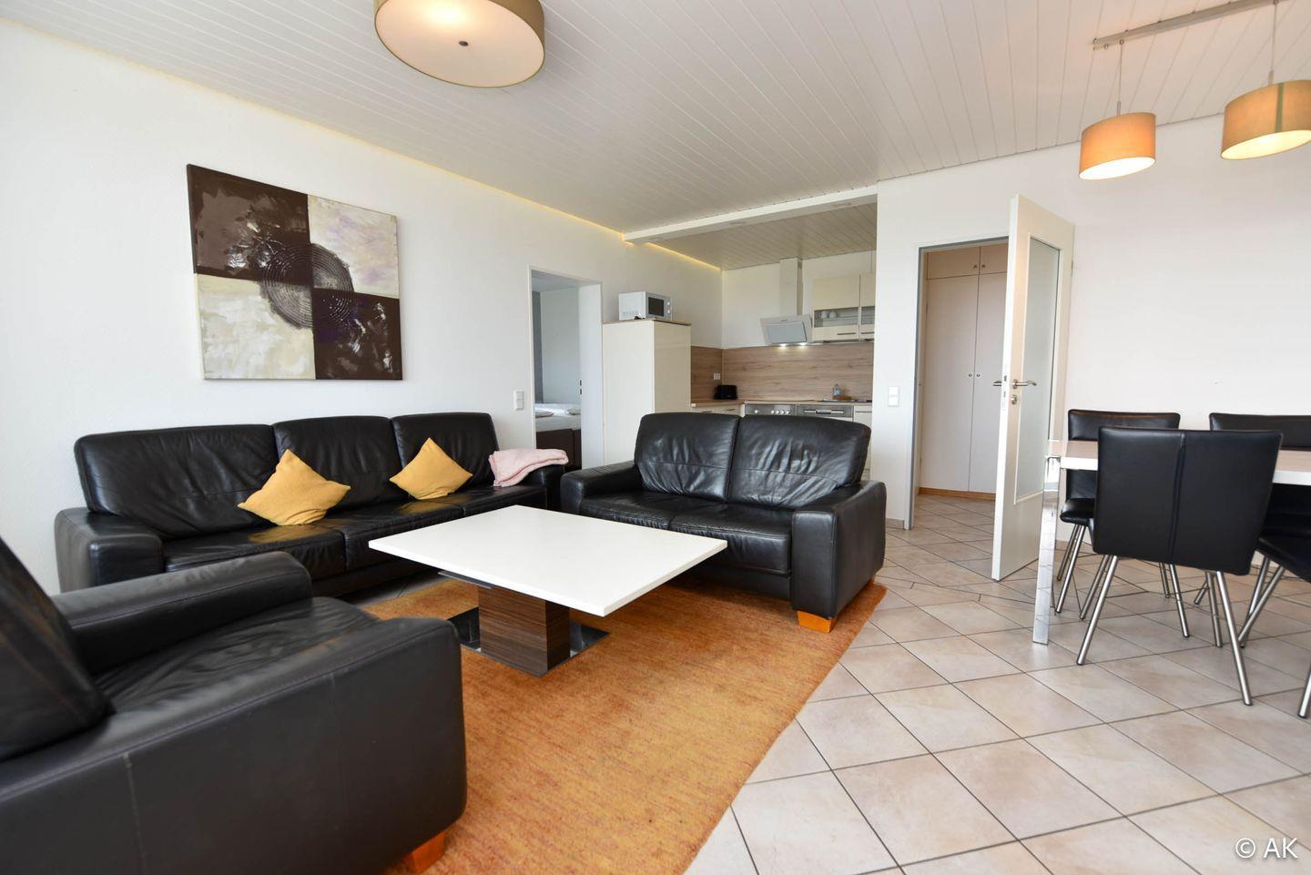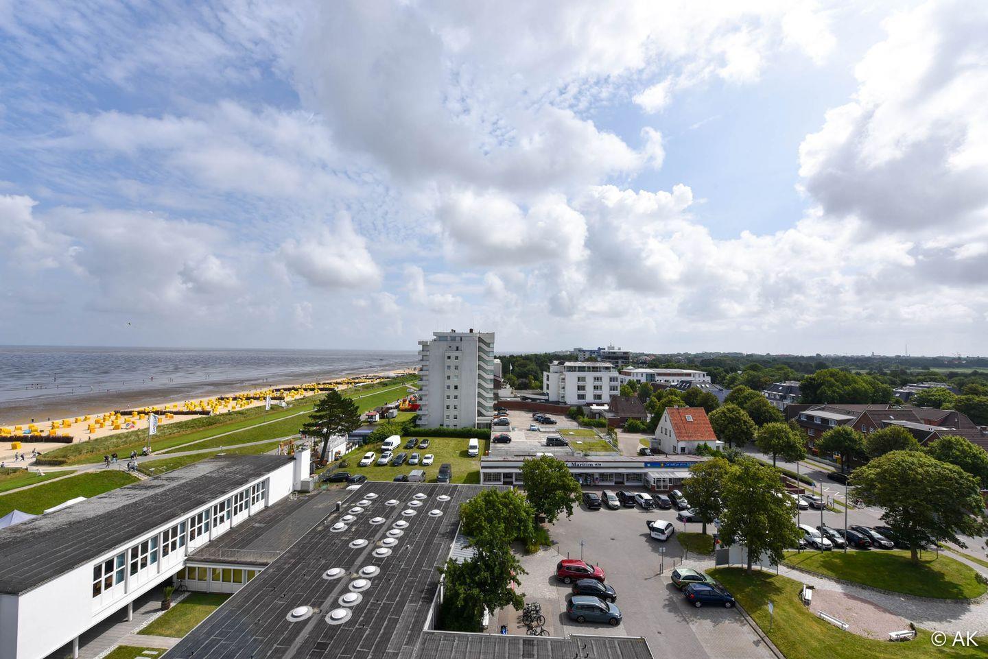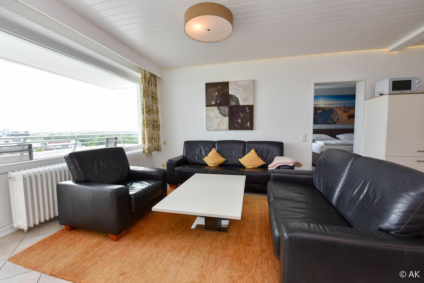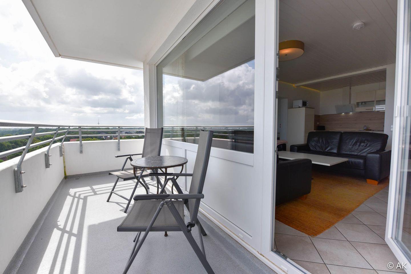Ferienwohnung im 8. Stock des Haus Hanseatic in Duhnen für bis zu 4 Personen. Mit zwei Balkonen und traumhafter Seesicht, moderner Küche, Schwimmbad, Sauna, WLAN und direktem Strandzugang.