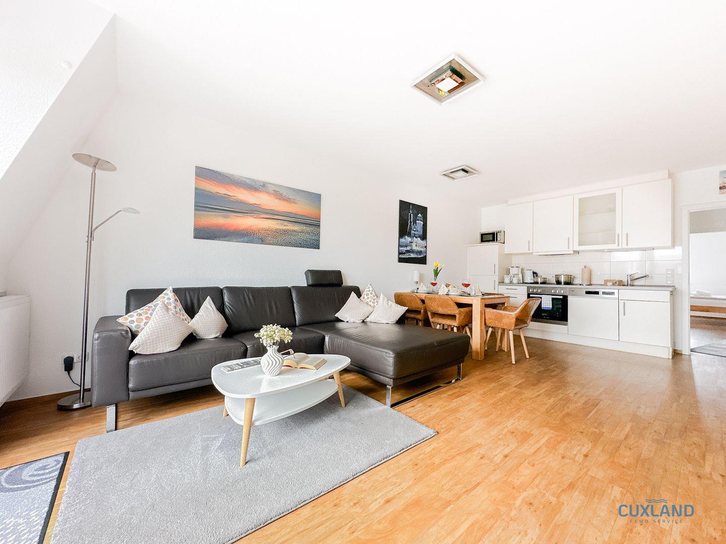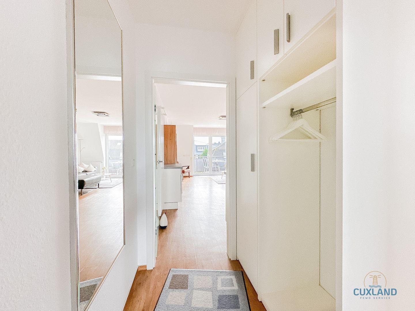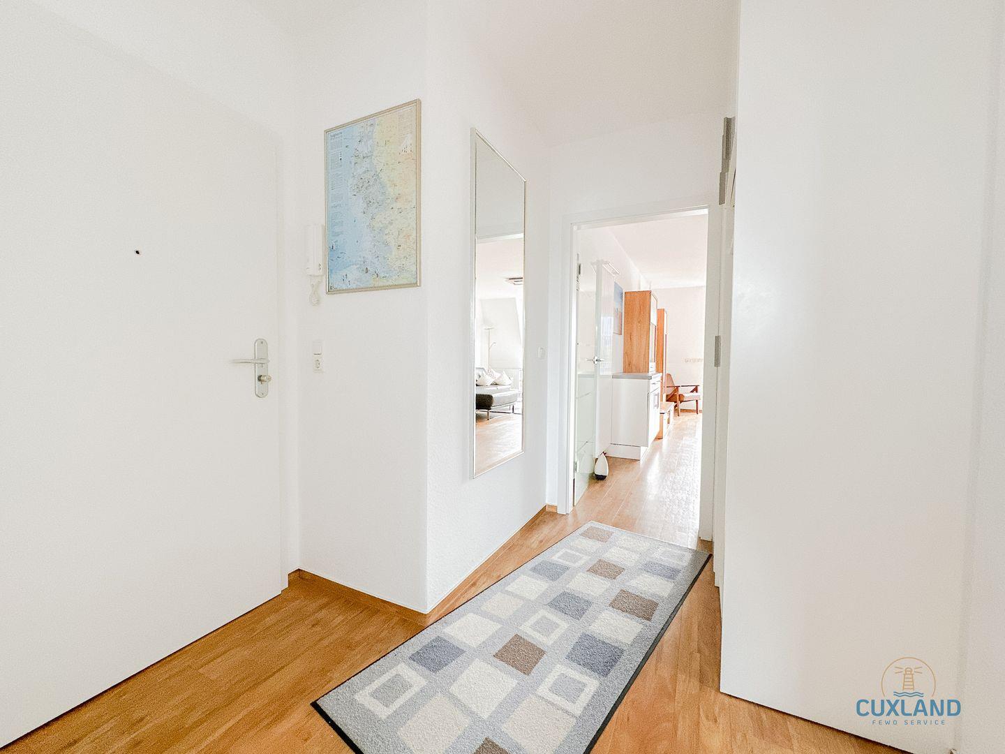 Wohnung 15 befindet sich im zweiten Stock der Residenz Rugenbarg, ein gepflegtes Gebäude in attraktiver Lage von Cuxhaven-Duhnen. Ein Aufzug sorgt für barrierearmen Zugang – ideal für Familien mit Kinderwagen oder Gäste mit eingeschränkter Mobilität. Ein kostenloser Privatparkplatz direkt am Haus erleichtert die Anreise. Der nahegelegene Strand ist schnell erreichbar und bietet optimale Voraussetzungen für erholsame Tage an der Nordsee. Ebenfalls in wenigen Minuten fussläufig erreichbar ist das Ortszentrum von Duhnen mit zahlreichen, Restaurants, Cafés, Geschäften und dem Ahoi Erlebnisbad.