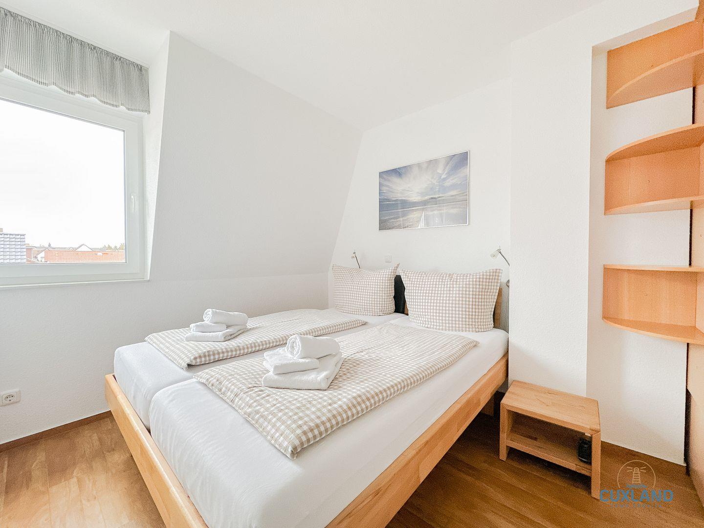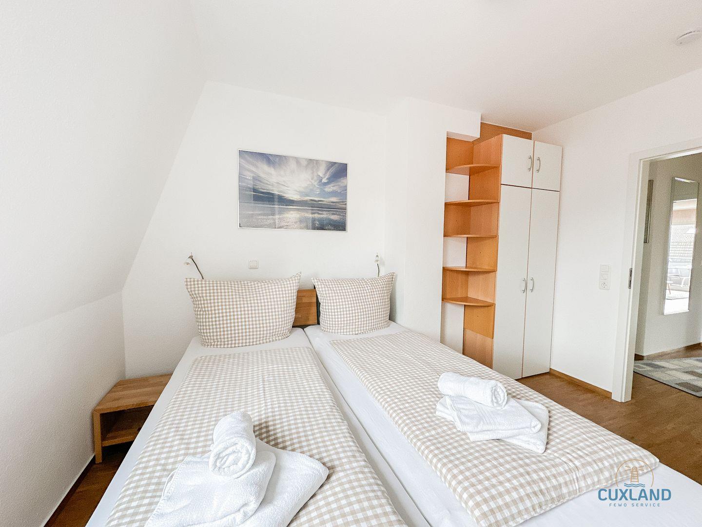 - Eines mit Doppelbett (180x200cm) und TV