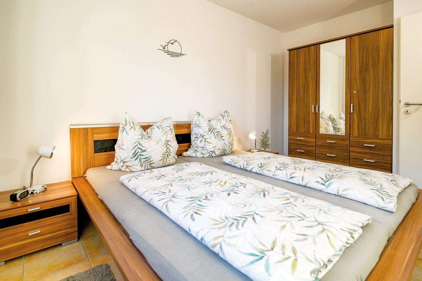 Auf ca. 50 m² Wohnfläche bietet die moderne und lichtdurchflutete Ferienwohnung Platz für 2 bis 5 Personen. Zwei separate Schlafzimmer, ein helles Tageslichtbad sowie ein offener Wohn- und Essbereich sorgen für Komfort und eine angenehme Atmosphäre. Die gut ausgestattete Einbauküche mit Cerankochfeld (2 Platten), Backofen und Mikrowelle ermöglicht eine flexible Selbstverpflegung.