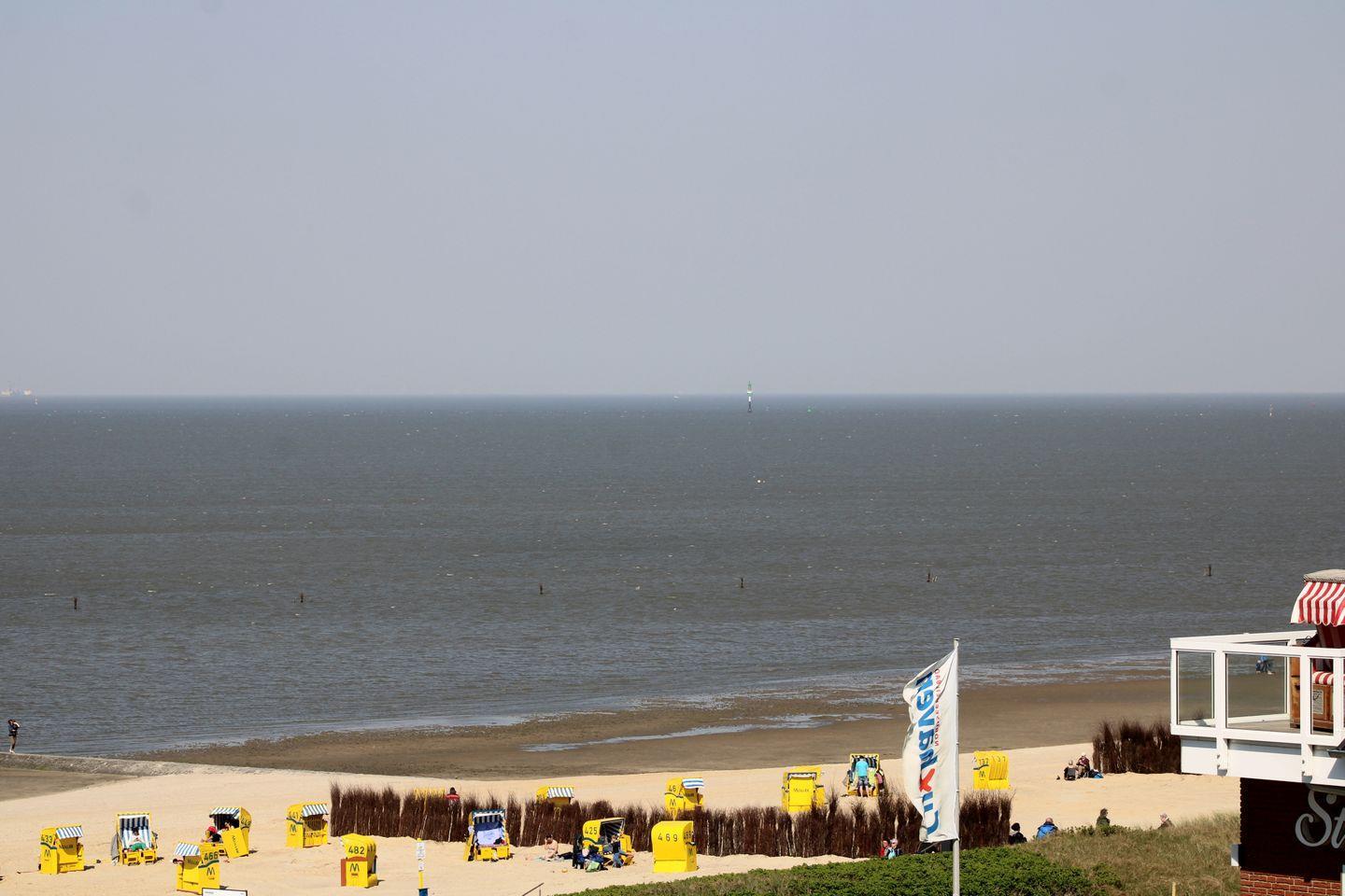 Vom Balkon hat man eine seitliche Sicht zum Strand als auch zur Elbmündung.