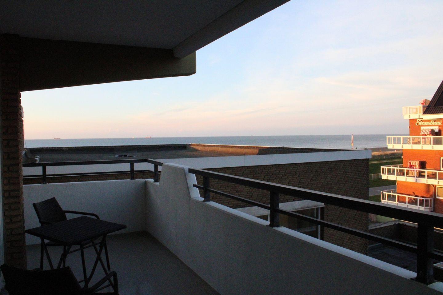 Aus der Wohnung und vom Balkon sehen Sie zum Deich/Strand bzw. zur Elbe.