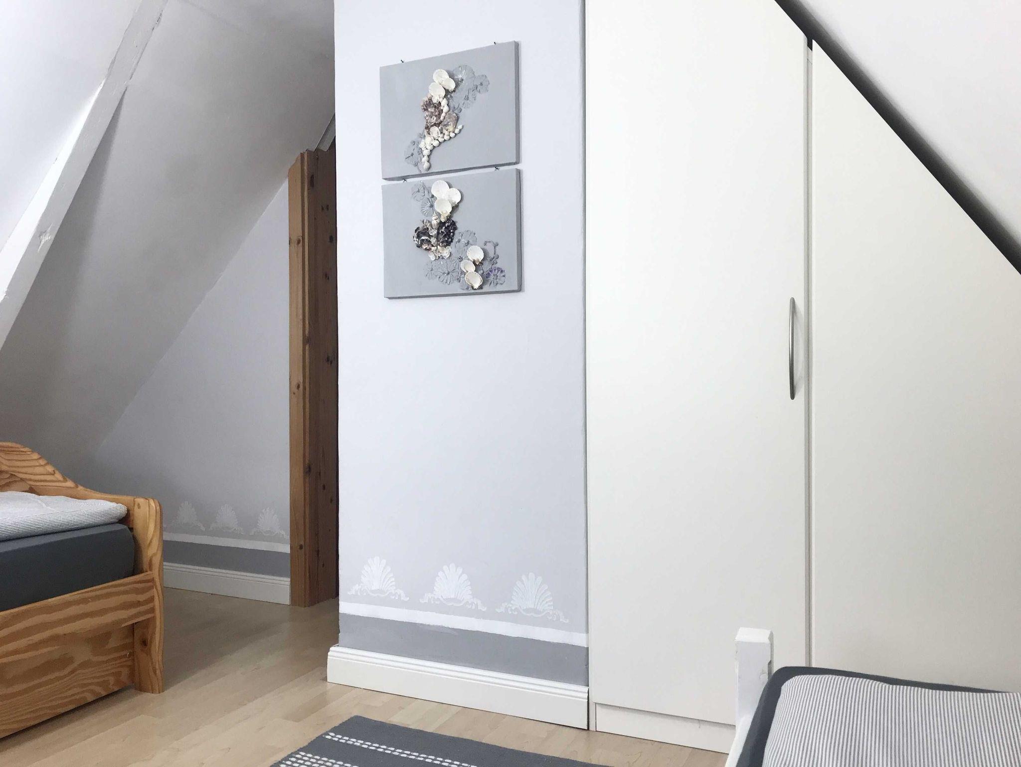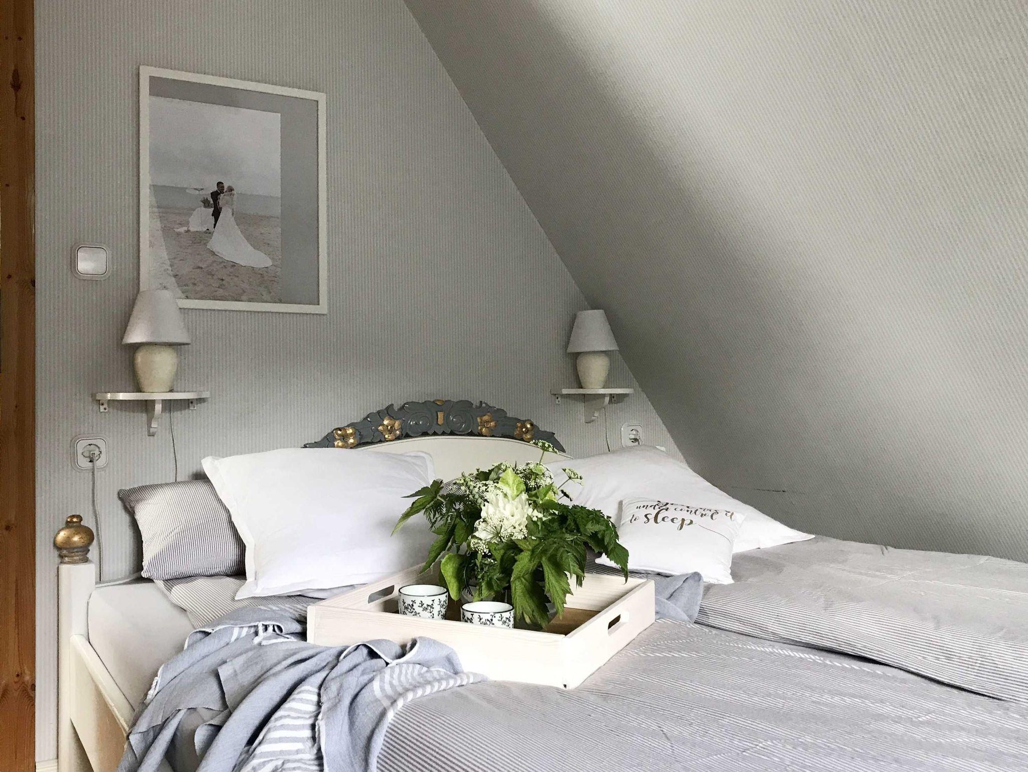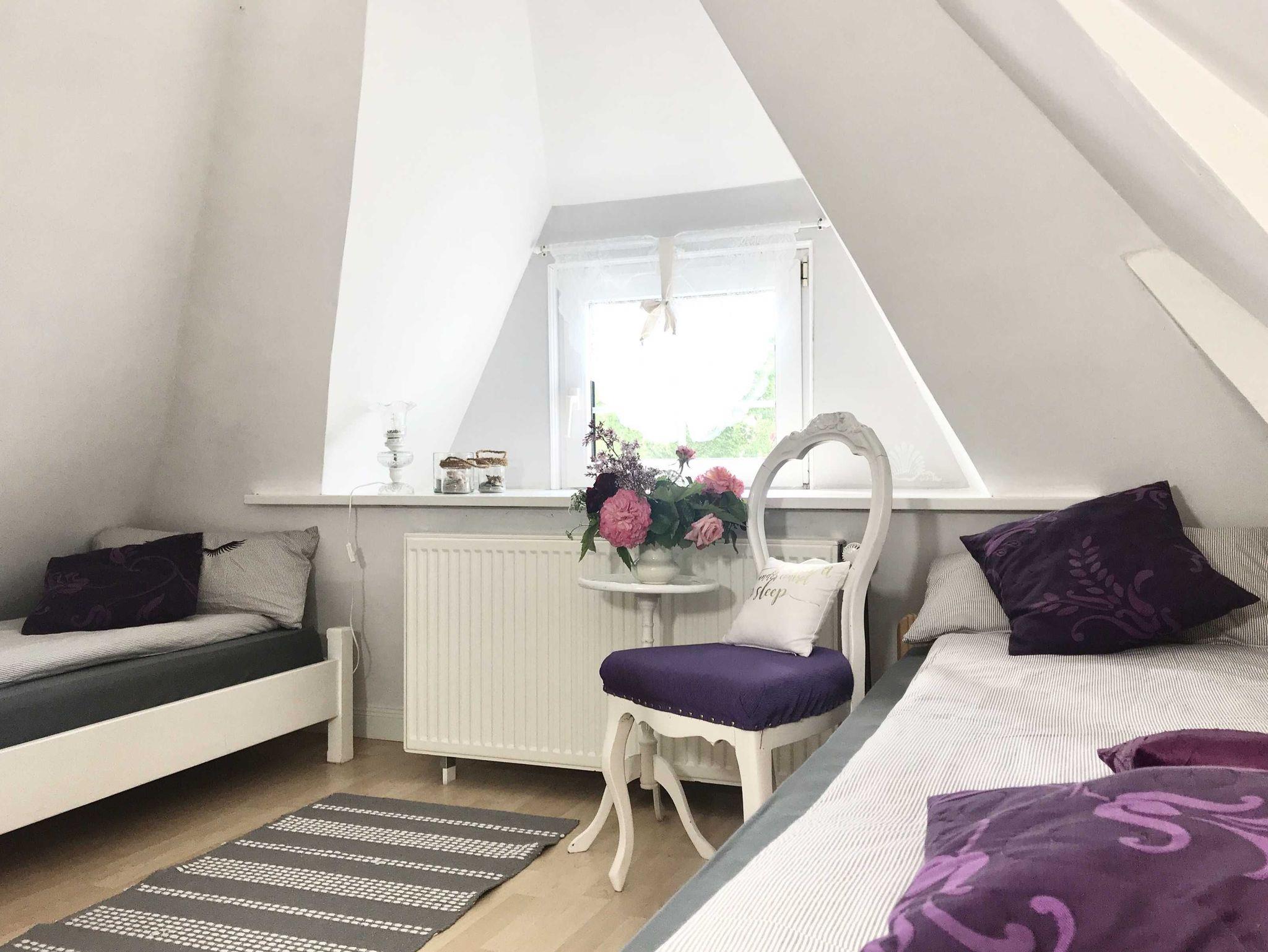 Die 2 Schlafzimmer sind über eine Treppe erreichbar. Ein Zimmer mit Doppelbett, ein Zimmer mit 2 einzelnd stehenden Betten.