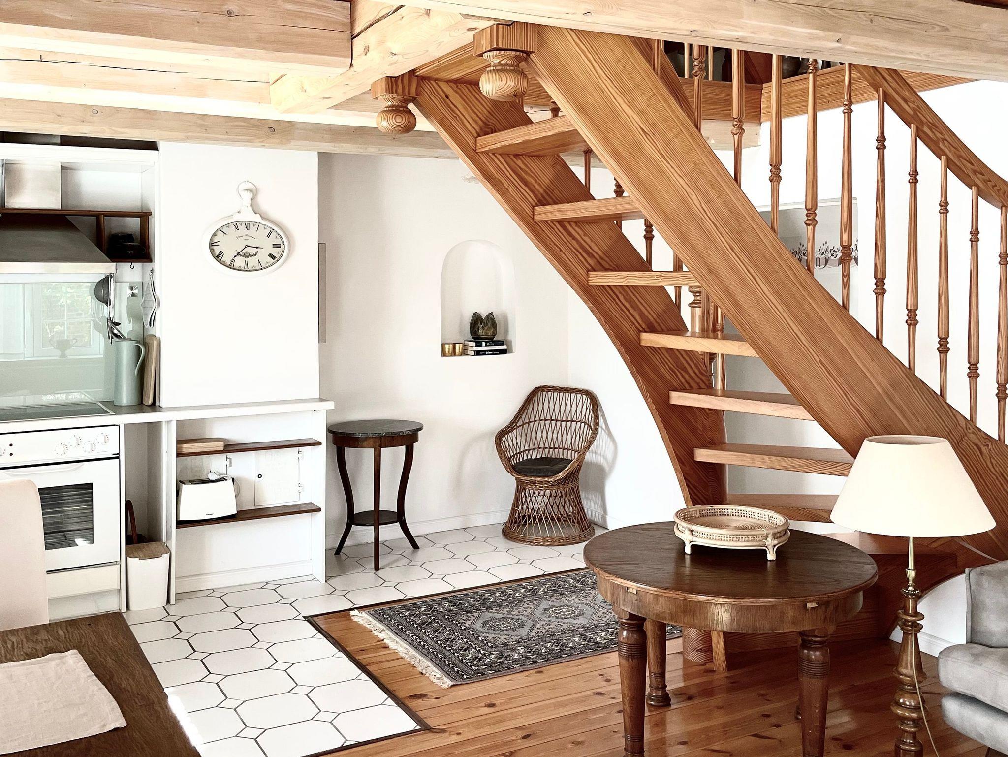 Die Wohnung ist ca. 54 m² groß. Im Erdgeschoss befindet sich eine offene Küche mit Esstisch, eine Sitzecke mit Smart TV und ein kleines Duschbad.