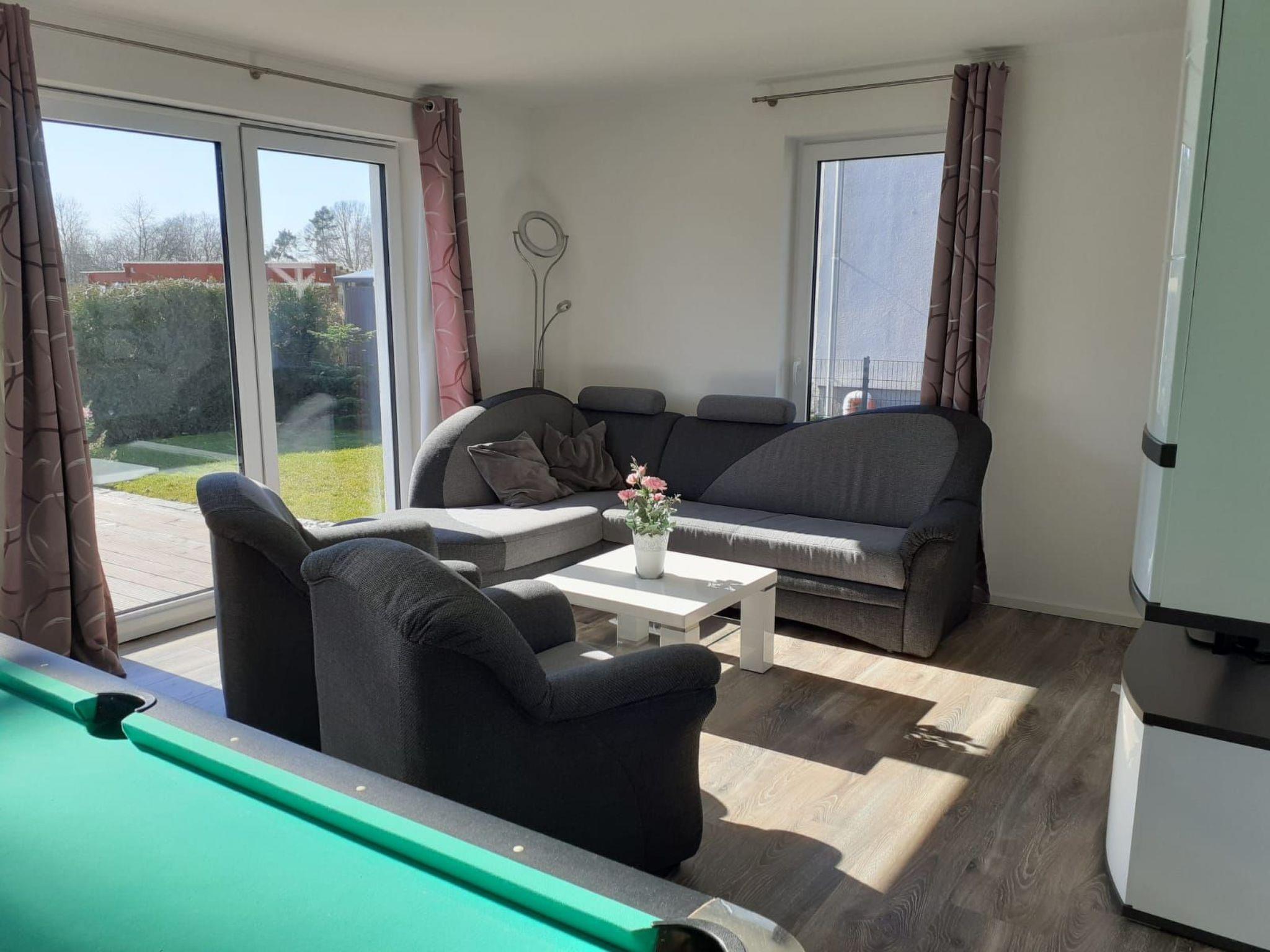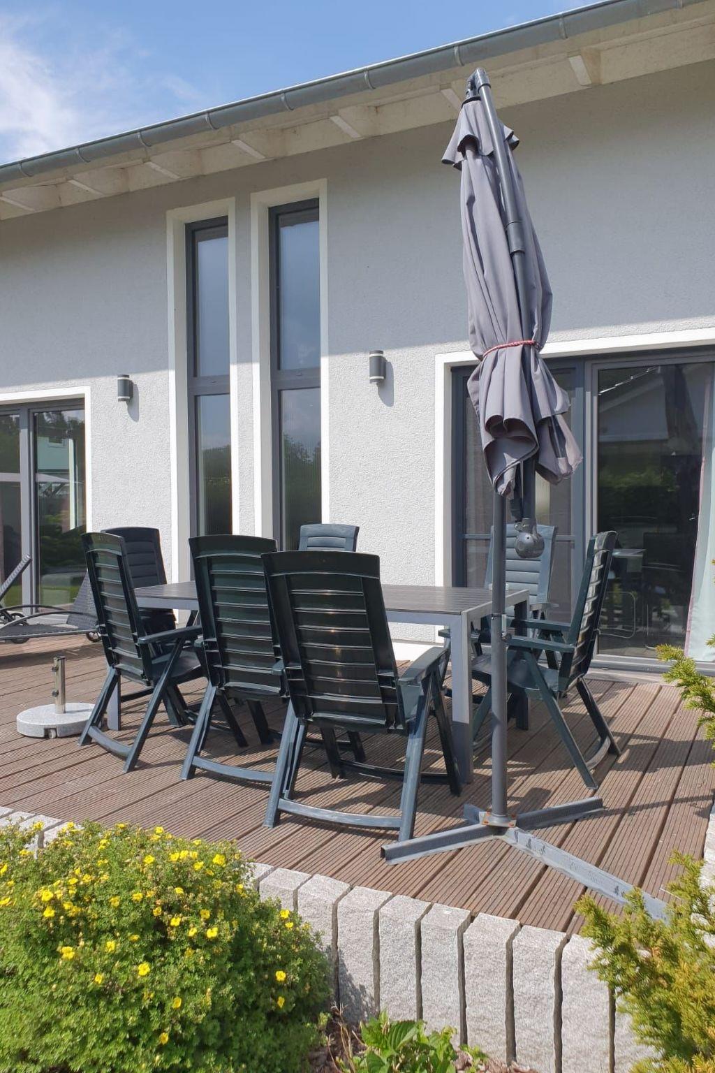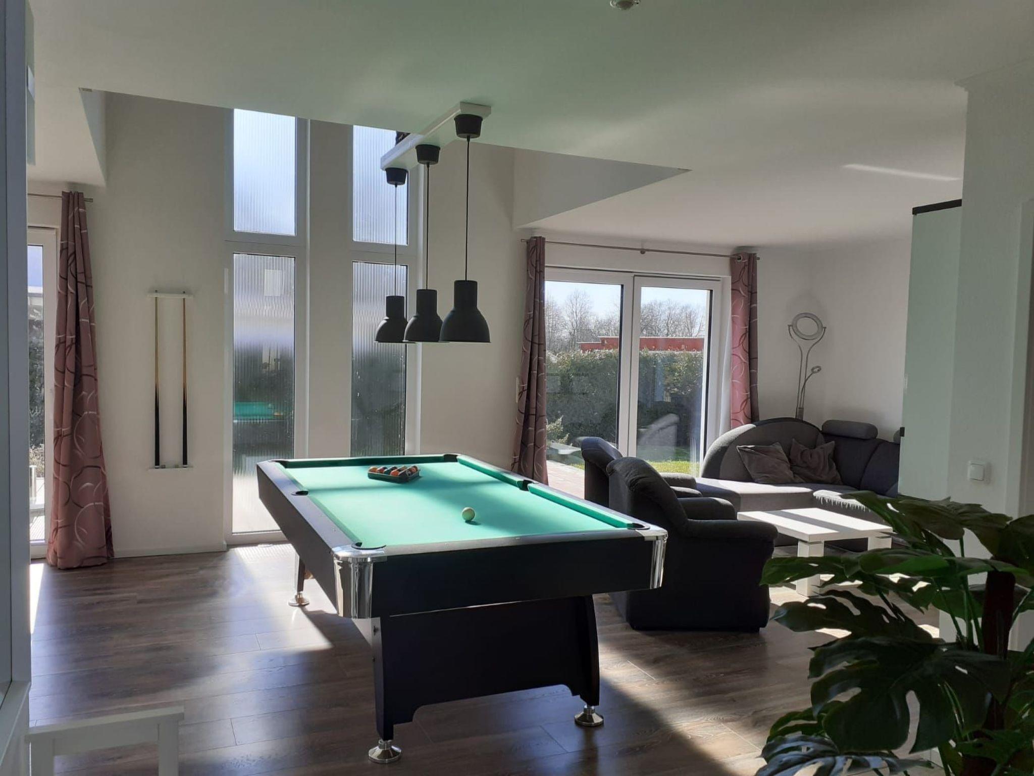 The holiday home Vanessa is located in Mecklenburg, in the holiday village Dümmer See with approx. 80 houses. The holiday village is fenced in and secured by an electrically operated gate. The path from the house to the lake (bathing area with a small sandy beach) is approx. 100 metres. The boat and fishing jetties are also located there. The holiday home is newly built (2017) and with its 120 square metres of living space offers plenty of room for 2 guests (with a small surcharge up to max. 8 people). The underfloor heating makes the stay pleasant even in winter and after a sauna session you can relax wonderfully on the large terrace. The equipment of the house leaves nothing to be desired, whether dishwasher, washing machine, tumble dryer, toaster, coffee machine, microwave or electrical appliances, everything is available. A spacious living room with flat screen TV invites you to linger, and the pool table and foosball table make many hearts beat faster. Upstairs there are four bedrooms with double bed, wardrobe, bedside table and chest of drawers. Two bathrooms with WC, one with shower, the other with shower and bathtub ensure a stress-free start to the day. A travel cot and high chair (by arrangement and subject to availability) are available. The house naturally includes a rowing boat from 15.4 to 1.11, 2 bicycles and an outdoor barbecue. The holiday home Vanessa is a non-smoking house. Towels and bed linen are available for a hire charge.