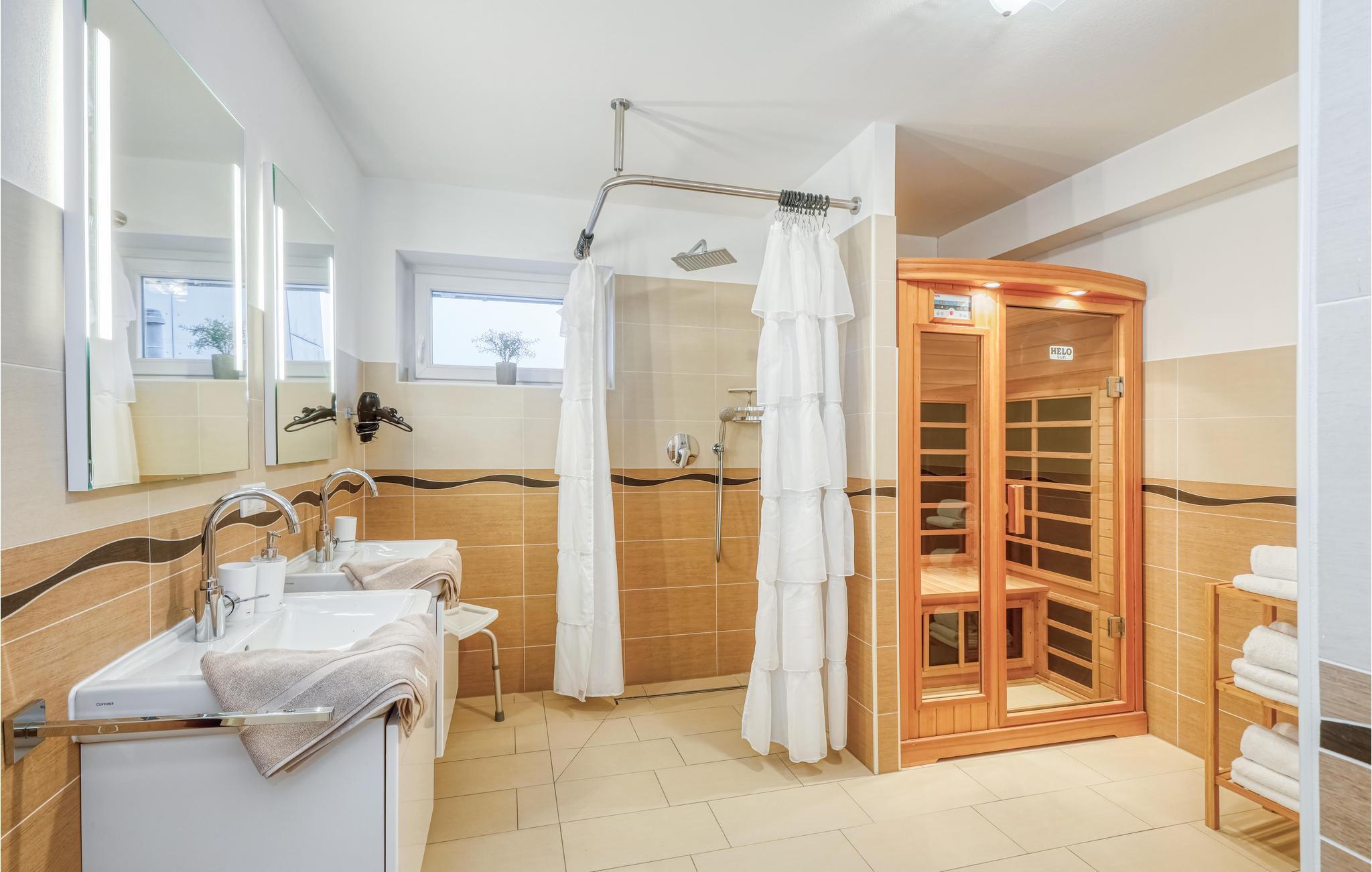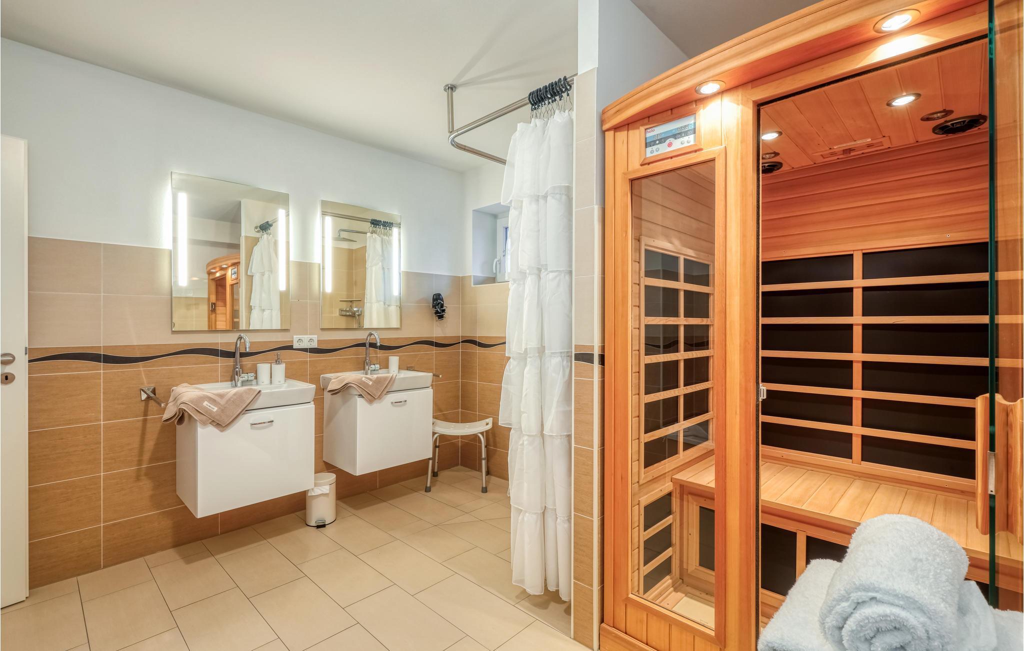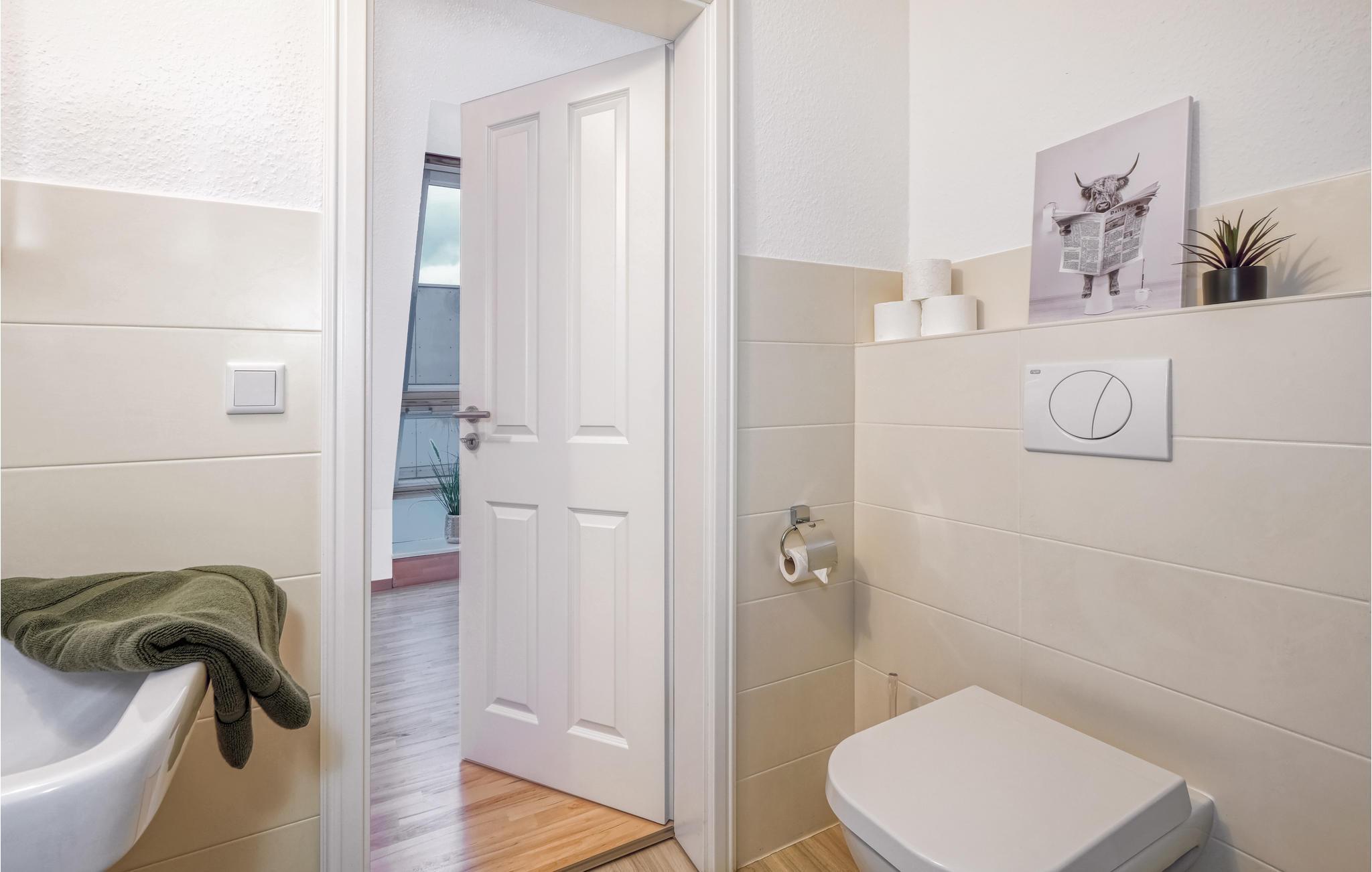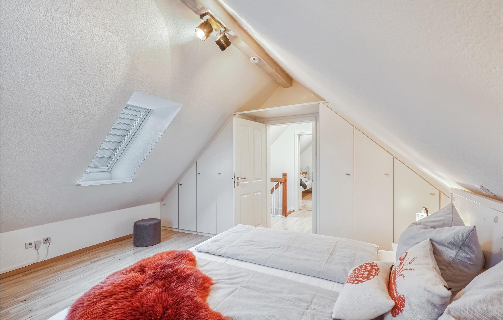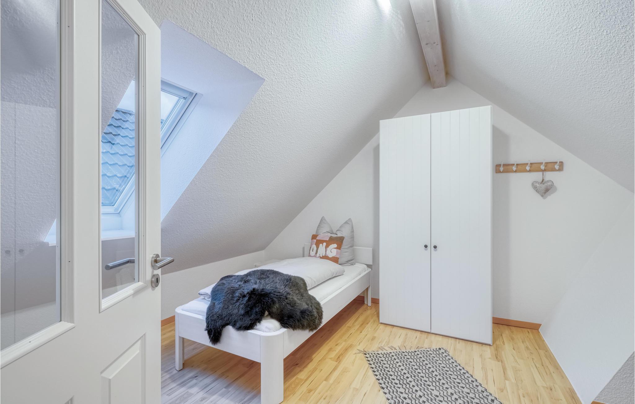 Denne komfortable og lyse ferieleiligheten ved Nordsjøkysten ønsker deg velkommen midt i sentrum av byen. Leiligheten er ideell for familier eller ferier med venner, og det er nok plass til alle. Den vakre leiligheten over to etasjer ligger rett i den lille butikkrekken i Dagebüll. Det er en kafé i første etasje, så det er bare trappene i huset som skiller deg fra en deilig frokost eller kaffe og kake. Du kan selvfølgelig også lage mat selv på det moderne kjøkkenet i ferieleiligheten. I stuen kan alle sette seg godt til rette i det høykvalitets sofaområdet, og et stort spisebord er selvfølgelig også tilgjengelig. Soverommene ligger rett under taket i 2. etasje. Vær oppmerksom på at sengene står på skråtaket, og at sittehøyden ved hodegjerdet er ganske lav. Spesielt i den kalde årstiden vil du ha glede av den infrarøde badstuen og det ekstra store badekaret, der du kan varme deg opp etter en lang tur langs diget.