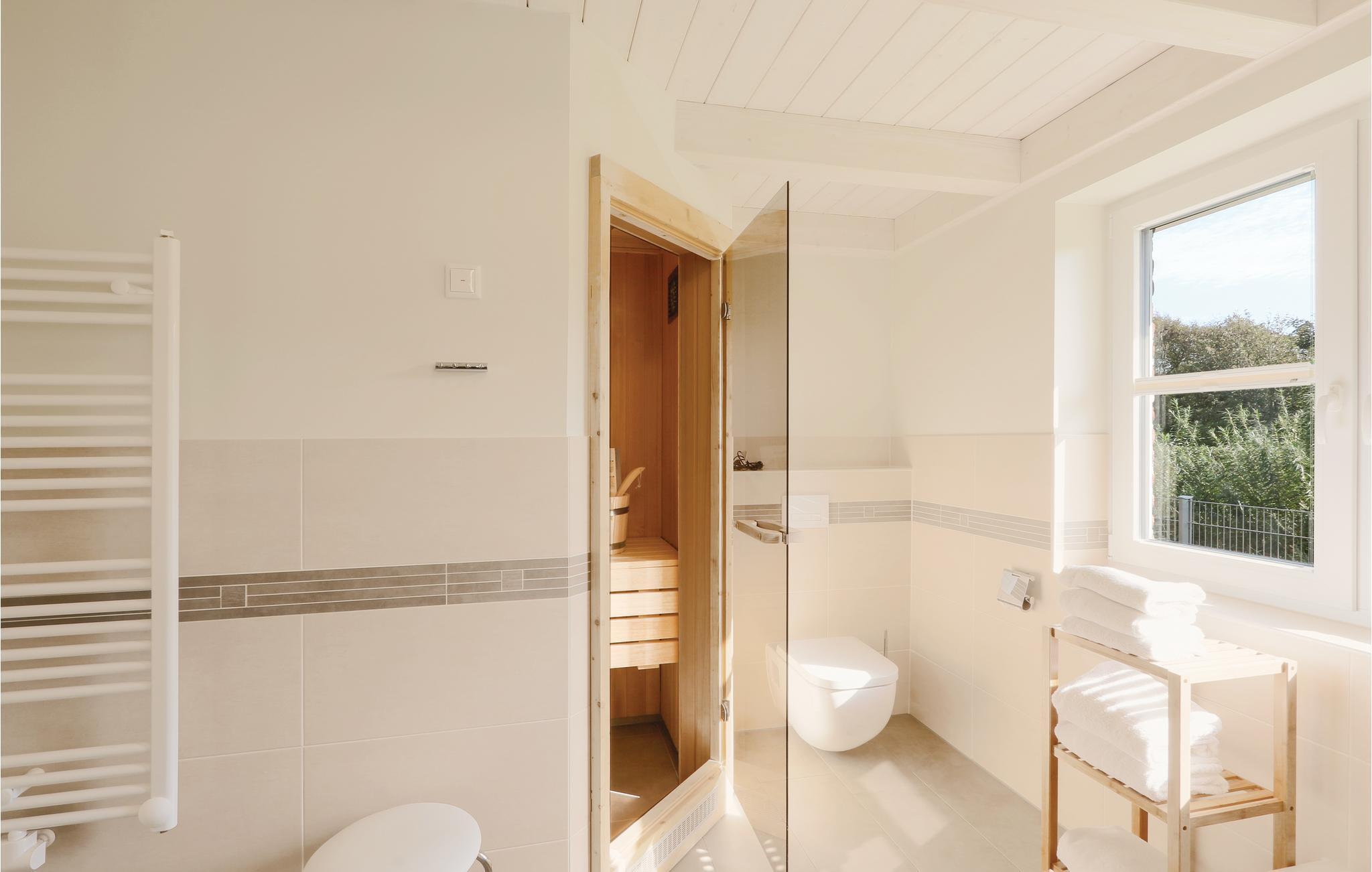 Huset er innredet med møbler av høy kvalitet, og alle rommene er romslige. Takket være den interne badstuen og den koselige peisen er huset et virkelig høydepunkt selv i den kalde årstiden. Etter en lang spasertur langs diget kan du sette deg godt til rette her og varme deg opp igjen.