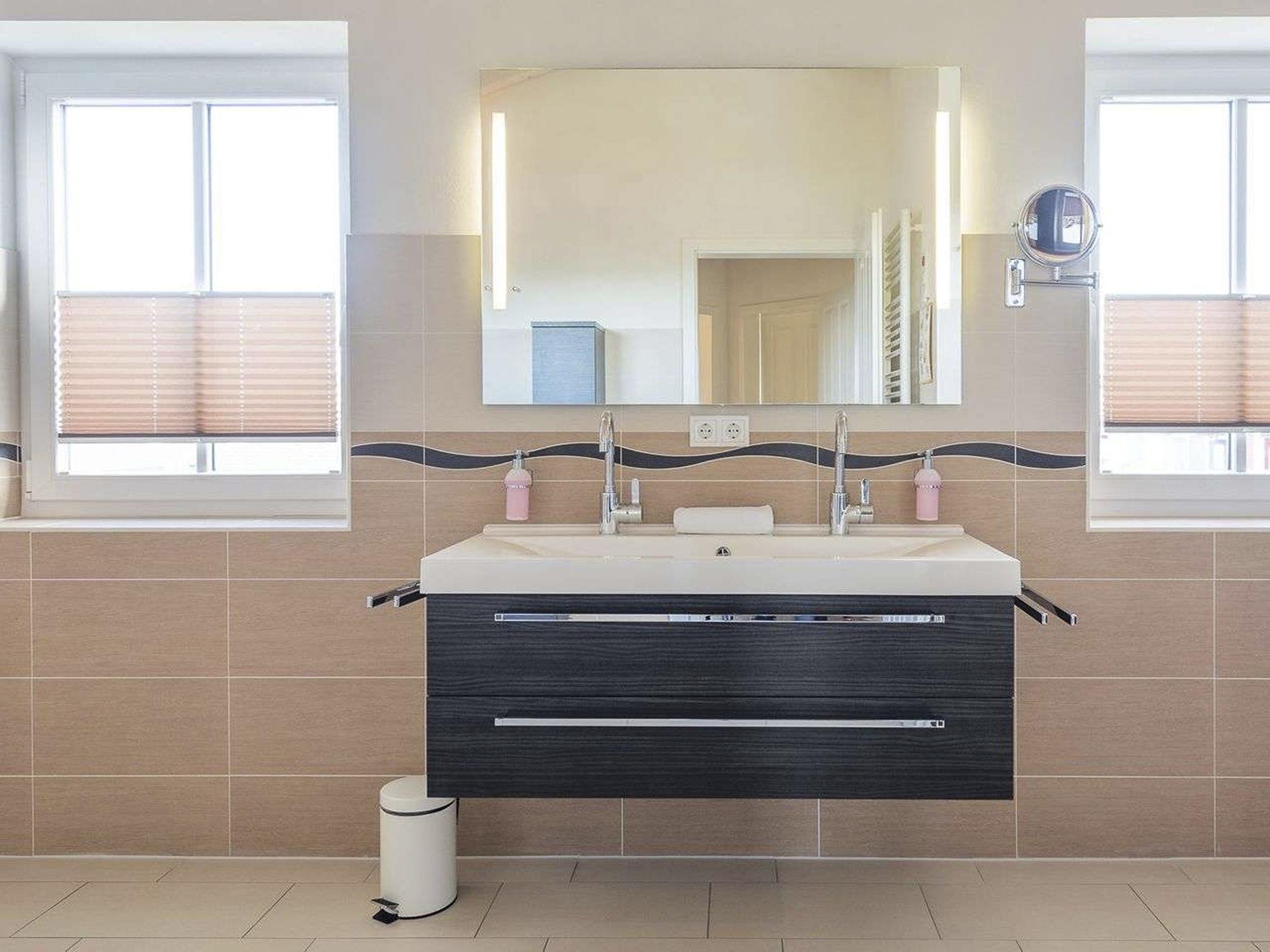 "Seestern", 4-room semi-detached house 100 m2 on 2 levels, on the ground floor. Comfortable and tasteful furnishings: living/dining room with Scandinavian wood stove and satellite TV (flat screen), radio and DVD. Exit to the terrace. 1 room with 1 x 2 bunk beds. Open kitchen (oven, dishwasher, 4 ceramic glass hob hotplates, electric coffee machine). Shower/WC. Upper floor: 2 double bedrooms. Sep. WC, bath/shower/WC, Sauna. Terrace furniture. Facilities: Internet (WiFi, free). Please note: non-smoking house. Maximum 2 pets/ dogs allowed. Smoke alarm.