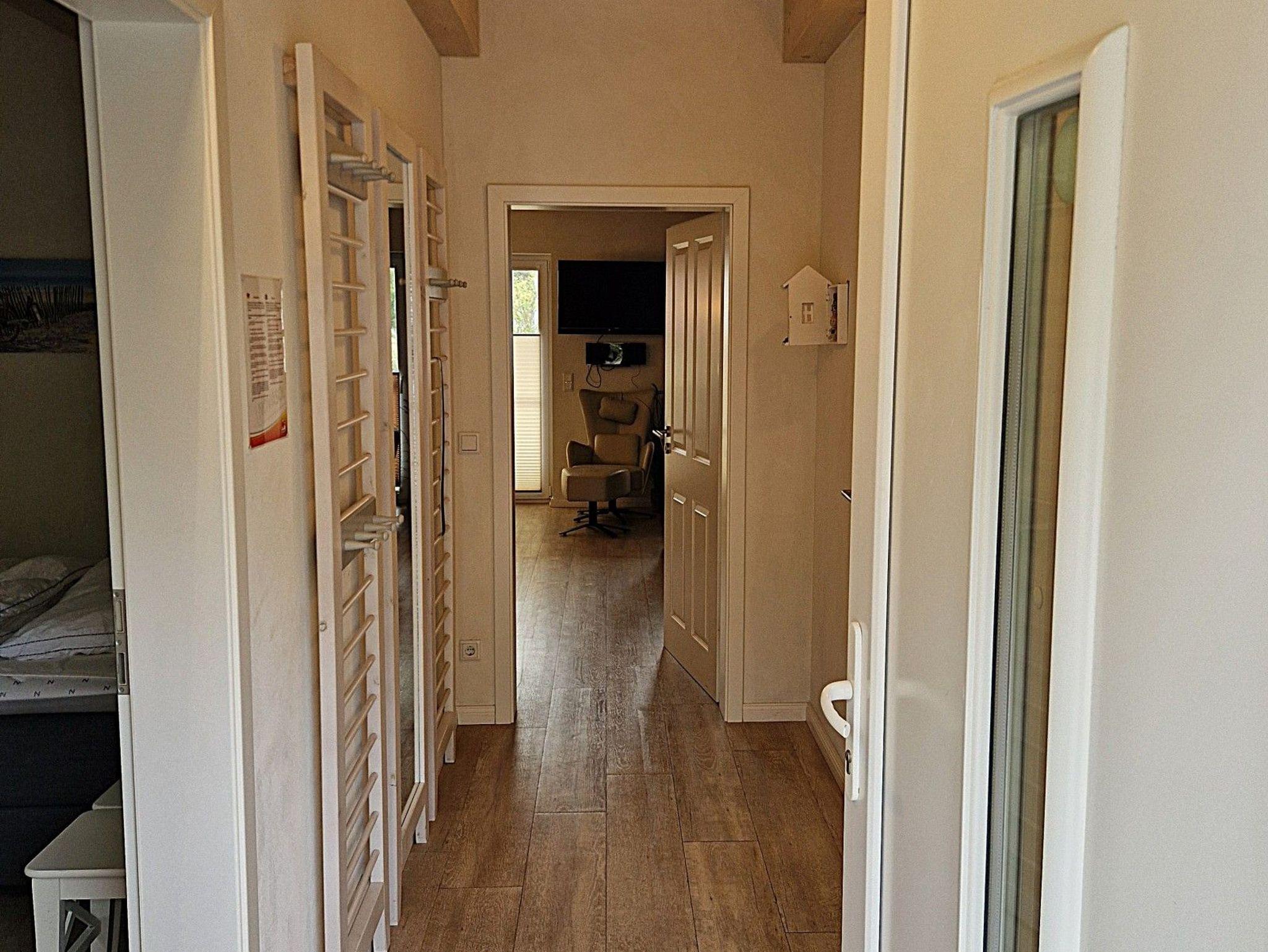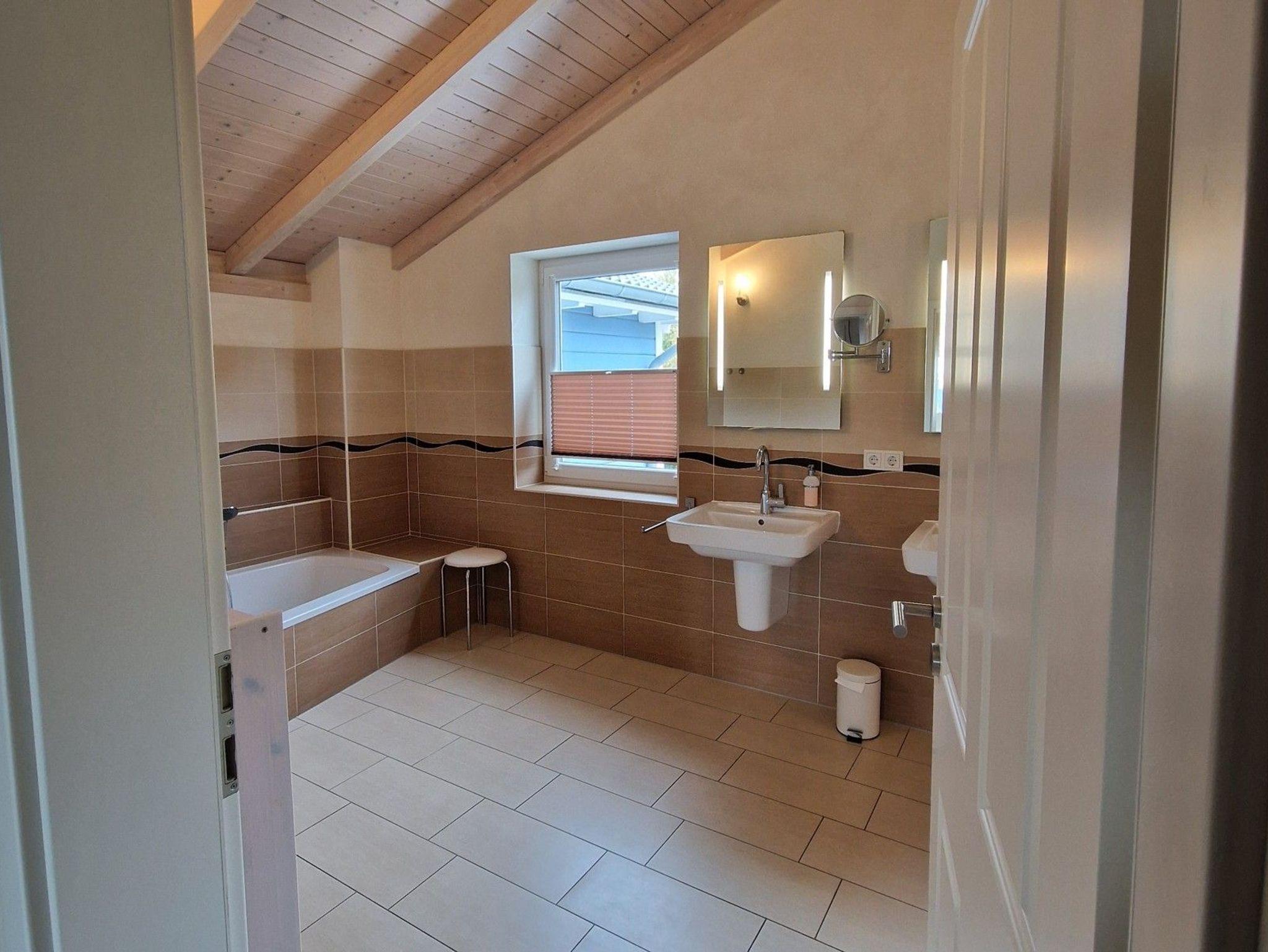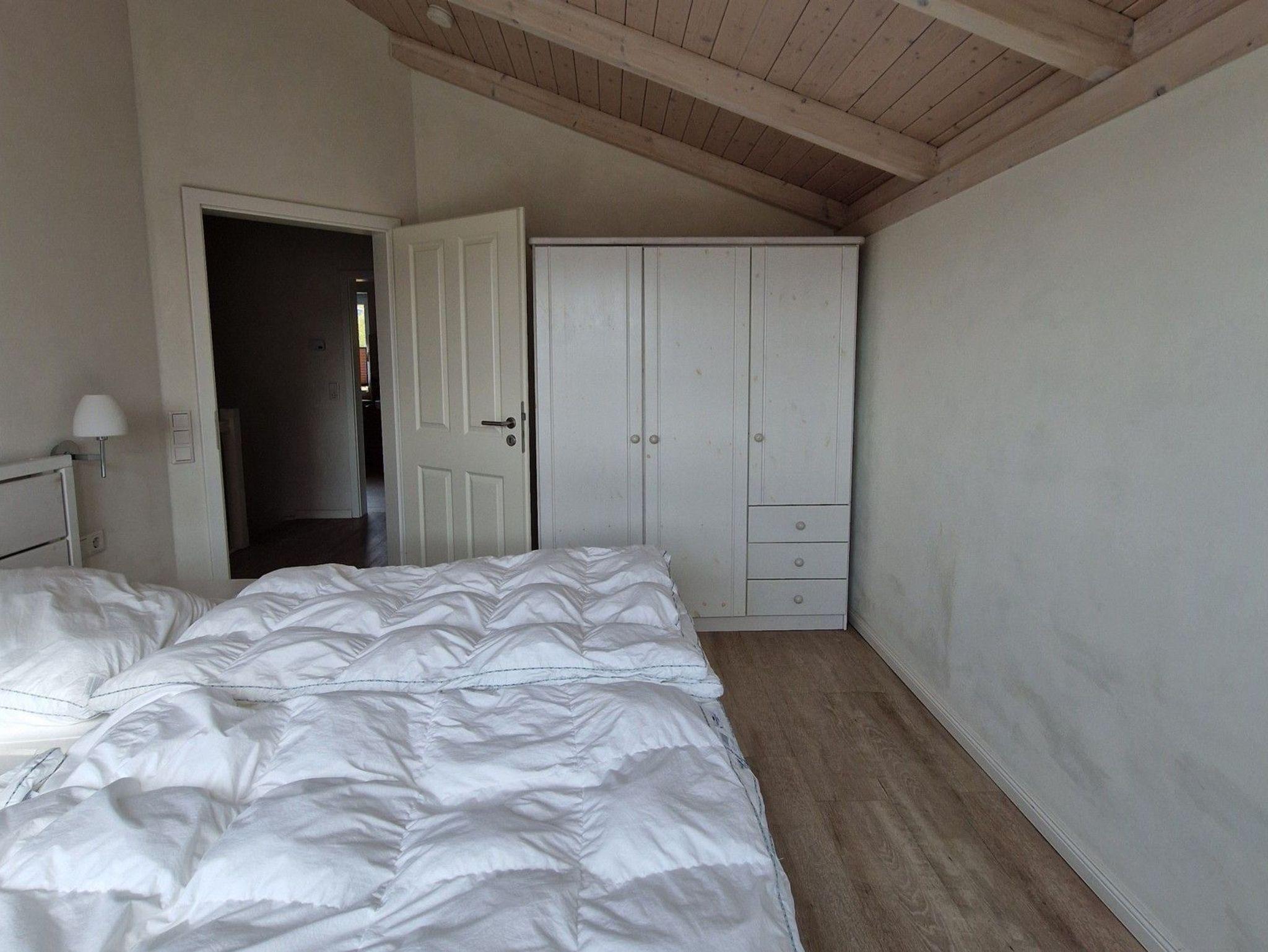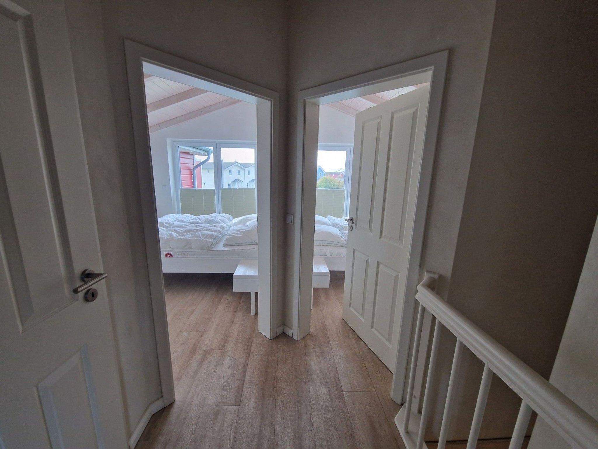 Im Erdgeschoss erwarten Sie ein barrierearmes Bad mit ebenerdiger Dusche sowie ein Schlafzimmer mit zweihochwertigen Einzelbetten. Im Obergeschoss erwarten Sie zwei Schlafzimmer, mit jeweils einem Doppelbett.