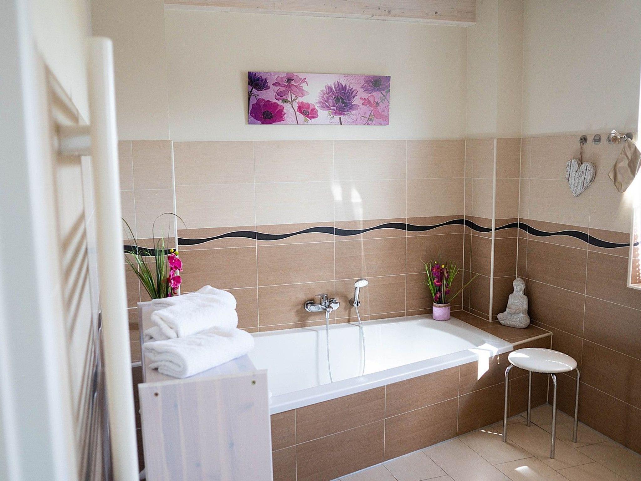• 2 Badezimmer (1x OG mit Badewanne, 1x EG mit Dusche) / Gäste-WC (DG)