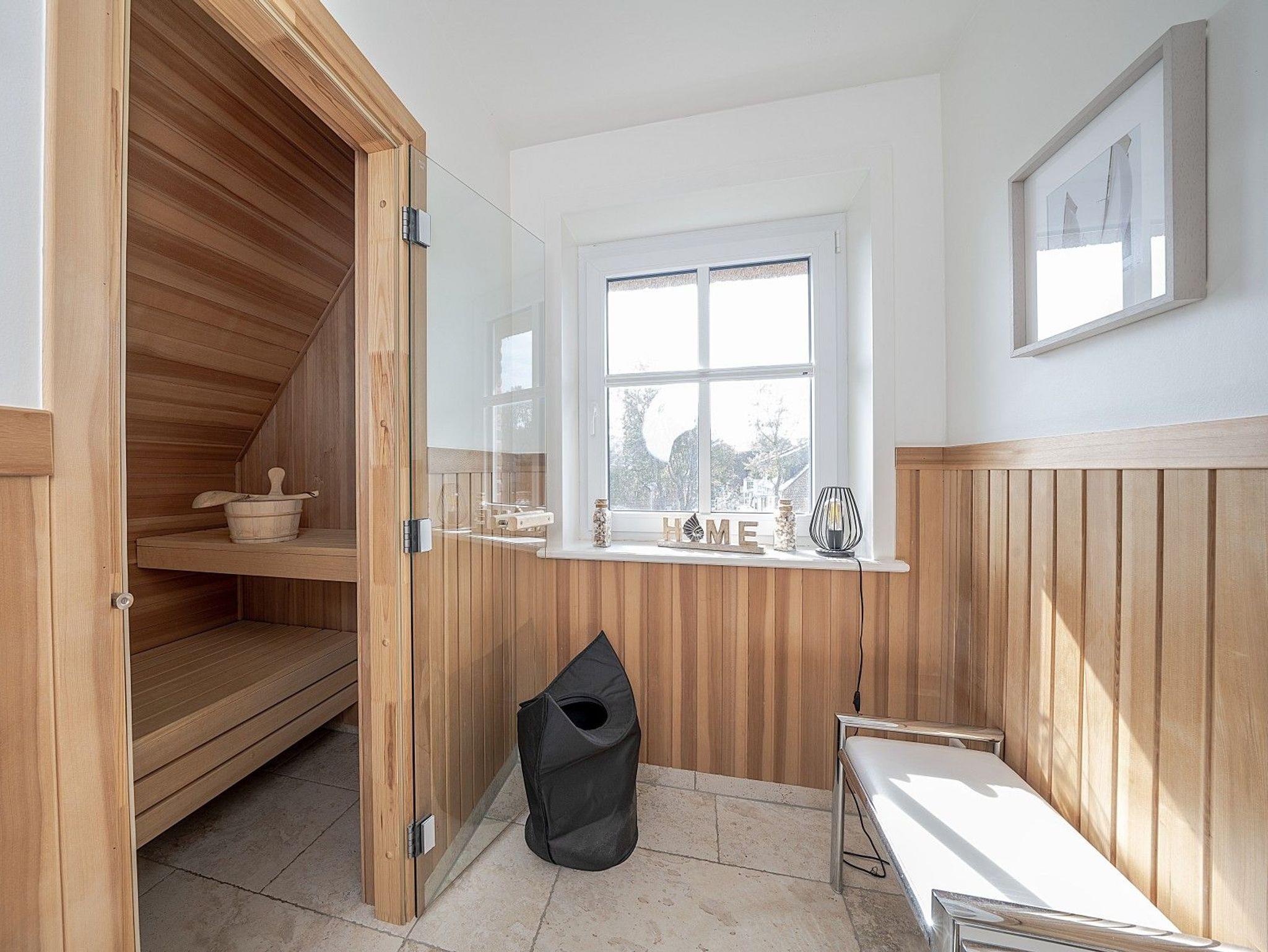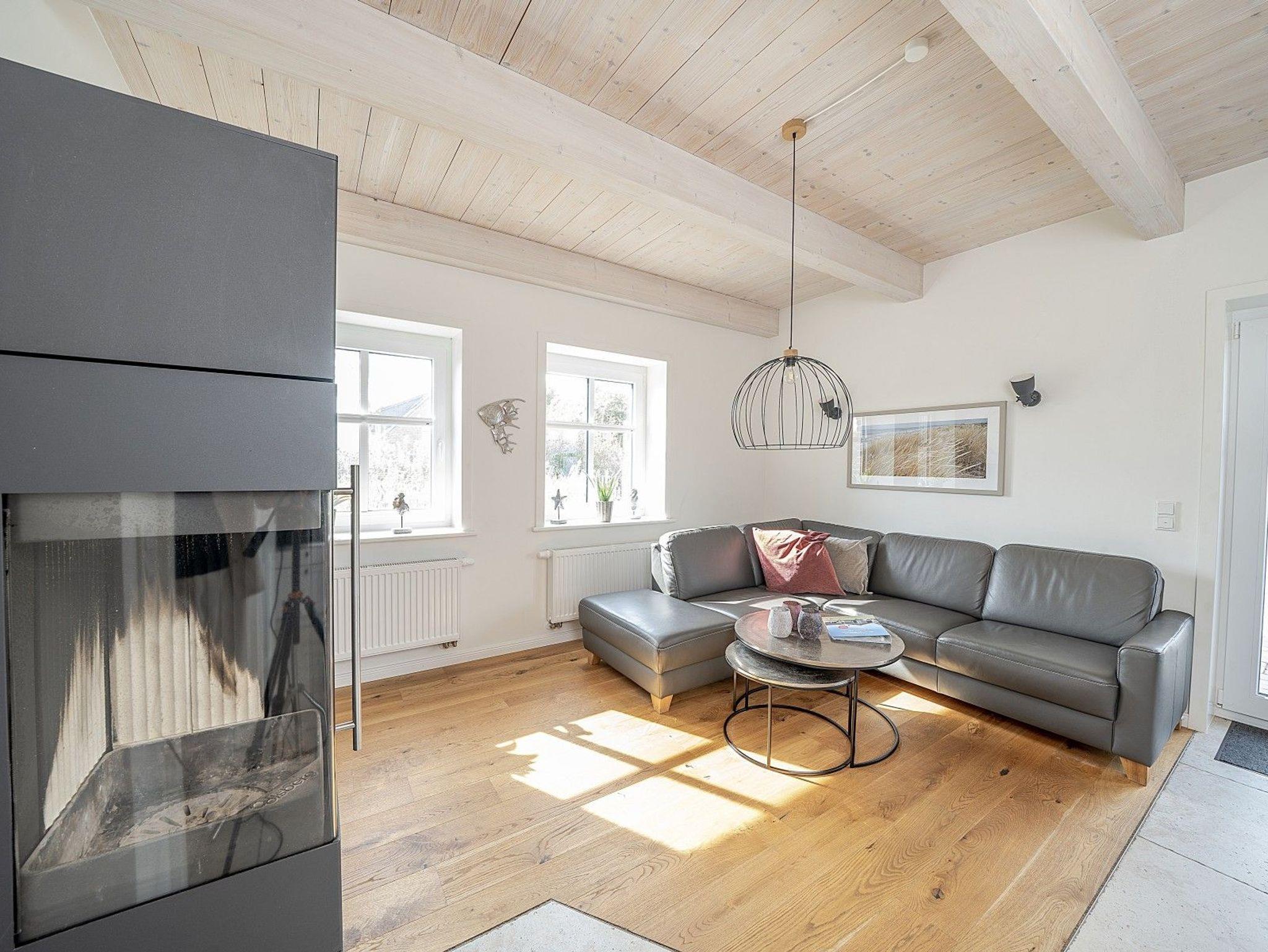 Drei gemütliche Schlafzimmer, zwei hochwertig ausgestattete Badezimmer sowie ein offener Wohn- und Essbereich mit moderner Küche bieten reichlich Platz für erholsame Tage. In der kühleren Jahreszeit sorgen Kaminofen und private Sauna für wohlige Wärme und Entspannung.