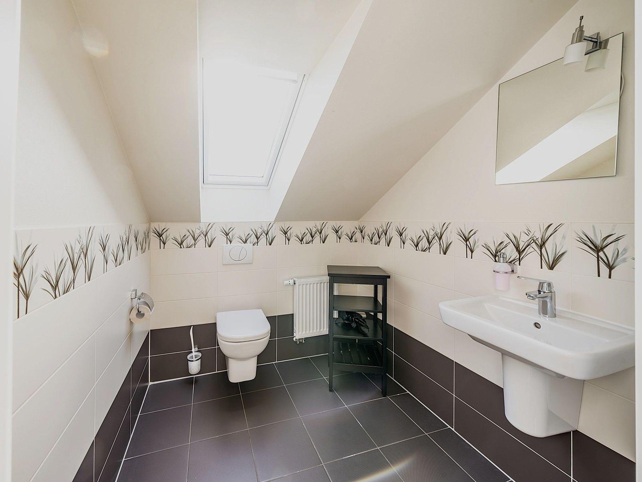 • 2 Badezimmer (1x OG mit Badewanne, 1x EG mit Dusche) / Gäste-WC (DG)