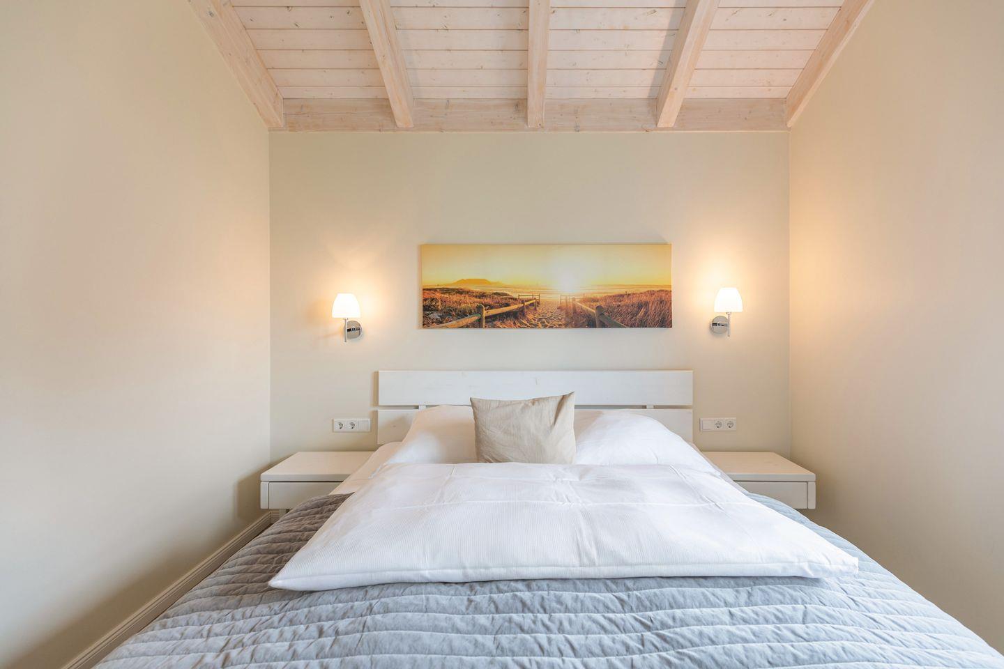 Das 80 m² große Ferienhaus besticht durch seinen modernen, exklusiven Einrichtungsstil im skandinavischen Charme. Zwei Schlafzimmer mit jeweils einem komfortablen Doppelbett (180 x 200 cm) bieten Platz für bis zu vier Personen.