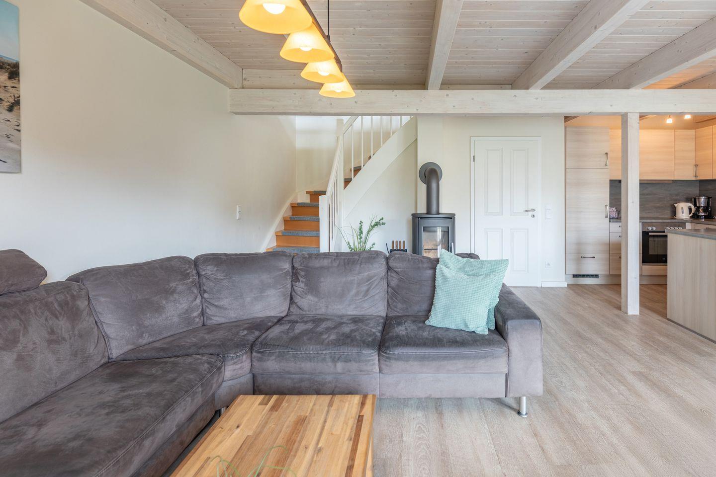 Das 126 qm große Ferienhaus ist modern und exklusiv im skandinavischen Charme eingerichtet. Die offene Küche bietet Ihnen eine exklusive und umfangreiche Ausstattung, die das Herz eines jeden Hobbykochs höher schlagen lässt: Ceranfeld mit 4 Kochplatten, Backofen, Kühlschrank mit ***Gefrierfach, Mikrowelle, Geschirrspüler, Filterkaffeemaschine, und vielem mehr.