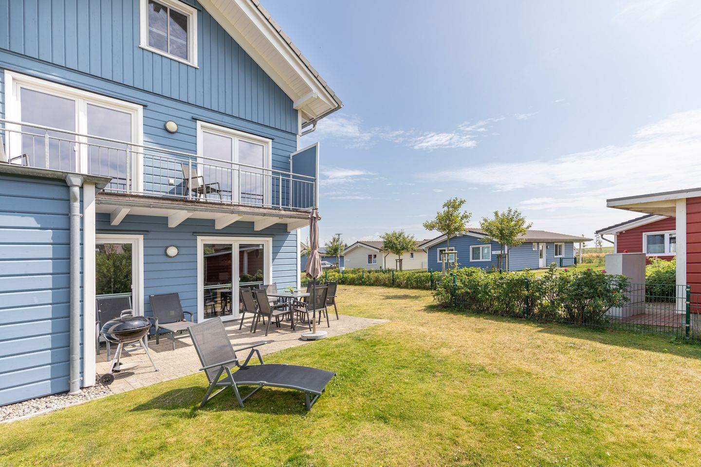 Auf der überdachten, windgeschützten Terrasse können Sie auf bequemen Gartenstühlen die Sonne genießen.