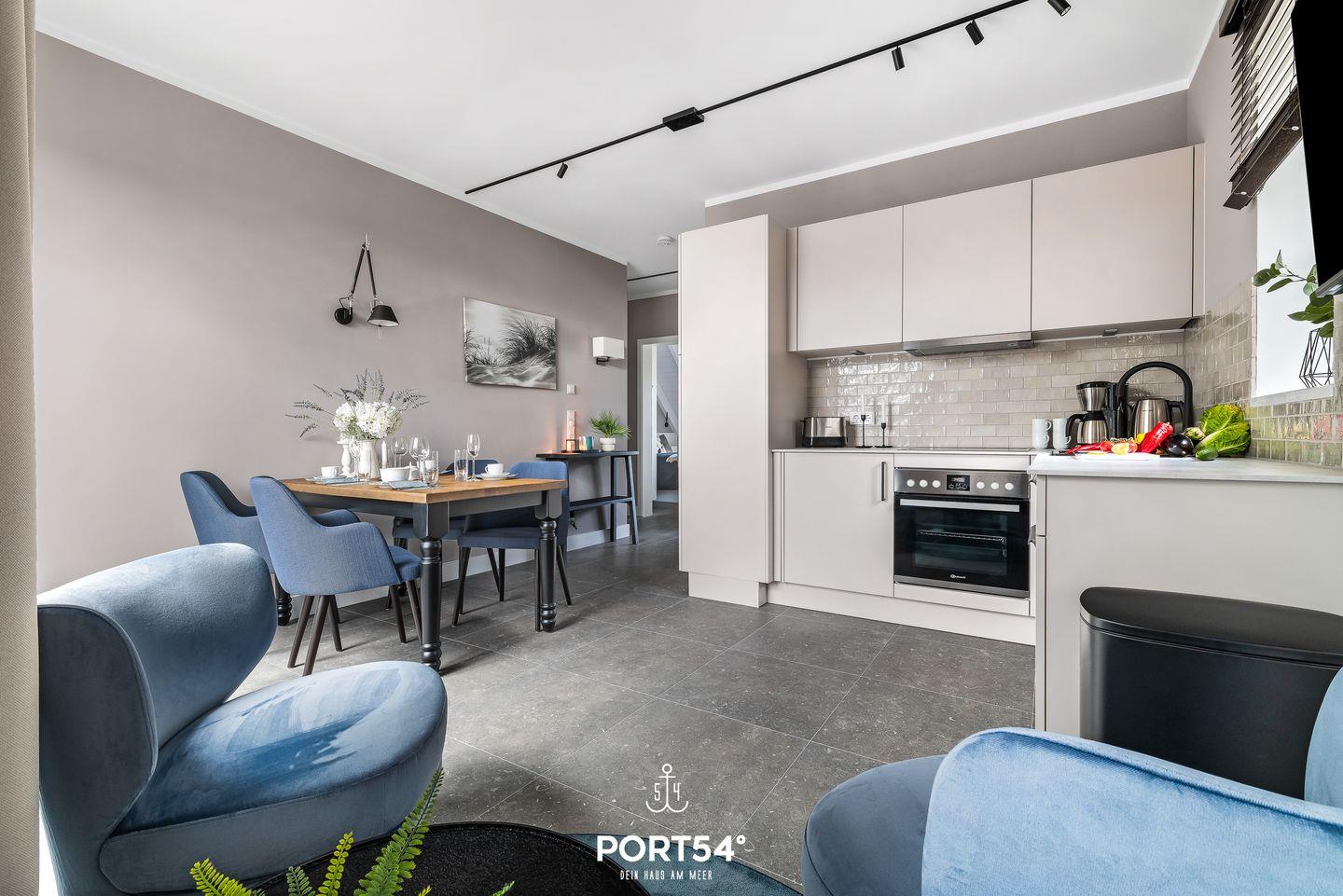 Die Ferienwohnung verfügt über 2 Zimmer, darunter 1 Schlafzimmer, 1 Badezimmer sowie einen Wohnbereich mit Schlafsofa. Die offene Küche ist direkt in das Wohnzimmer integriert und mit Cerankochfeld, Backofen, Kühlschrank mit Gefrierfach, Spülmaschine, Kaffeemaschine, Eierkocher sowie Küchenutensilien, Geschirr und Besteck vollständig ausgestattet. Damit hast du beste Voraussetzungen für eine komfortable Selbstversorgung.