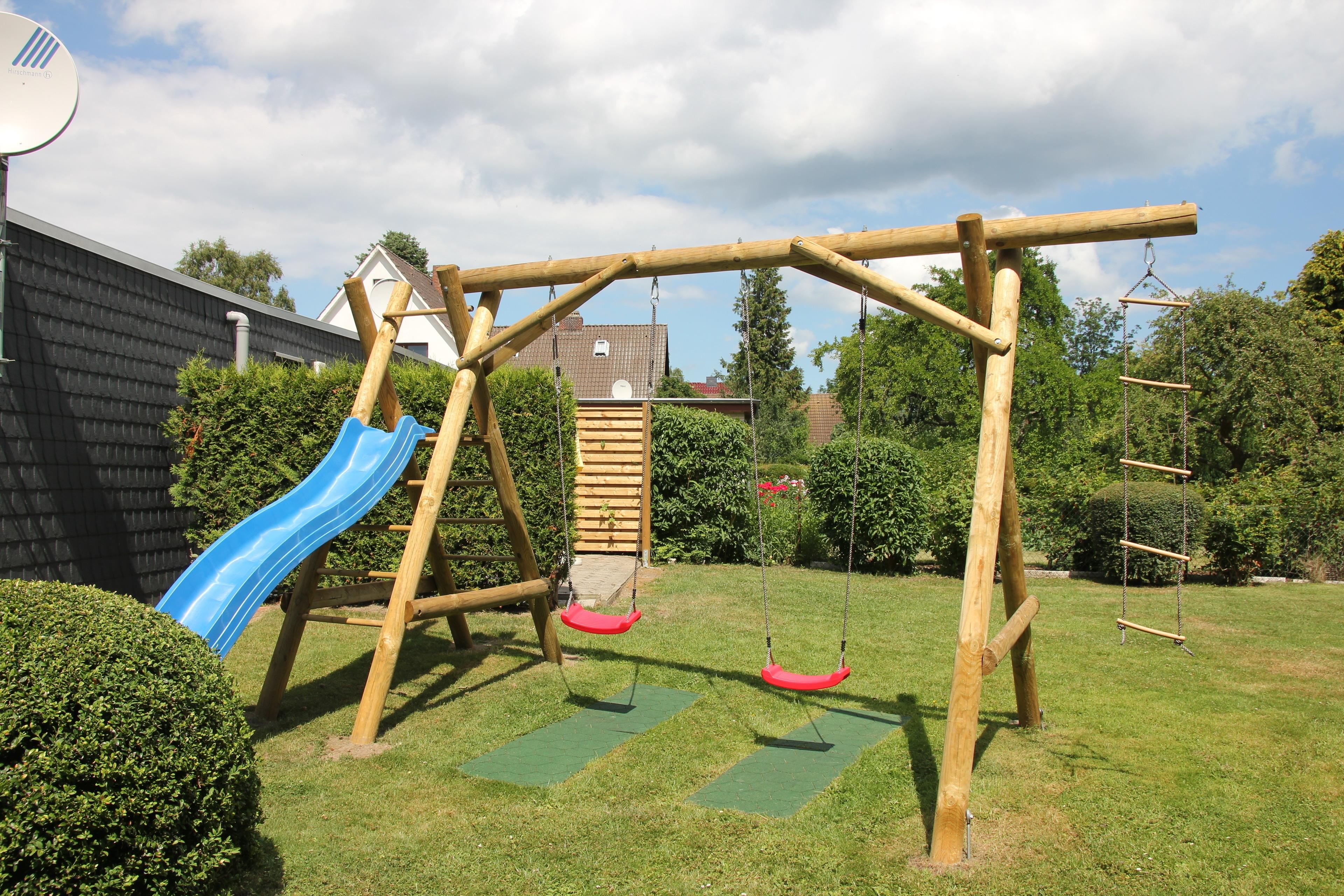 Die Wohnung besteht aus einem gefliesten Wohnraum mit Sofa und Sessel, Couchtisch, Esstisch mit 4 Stühlen, Anrichte, Einbauküche mit Backofen+ Ceranfeld, Kühlschrank mit Gefrierfach, Mikrowelle, Geschirrspüler, zwei separate Schlafzimmer, eines mit Doppelbett und Kinderbett, eines mit zwei getrennten Einzelbetten, beide Räume mit Kleiderschrank und Nachttisch, Dusche/WC mit Fußbodenheizung. Separater Abstellraum für Fahrräder und Strandzubehör im Garten. Parkplätze vor dem Haus. Großer Garten mit Schaukeln und Rutsche, eine Wäschespinne steht zur Verfügung. Sat-TV, Musikanlage mit DVD/CD und W-Lan. Separater Eingang mit eigenem Briefkasten.