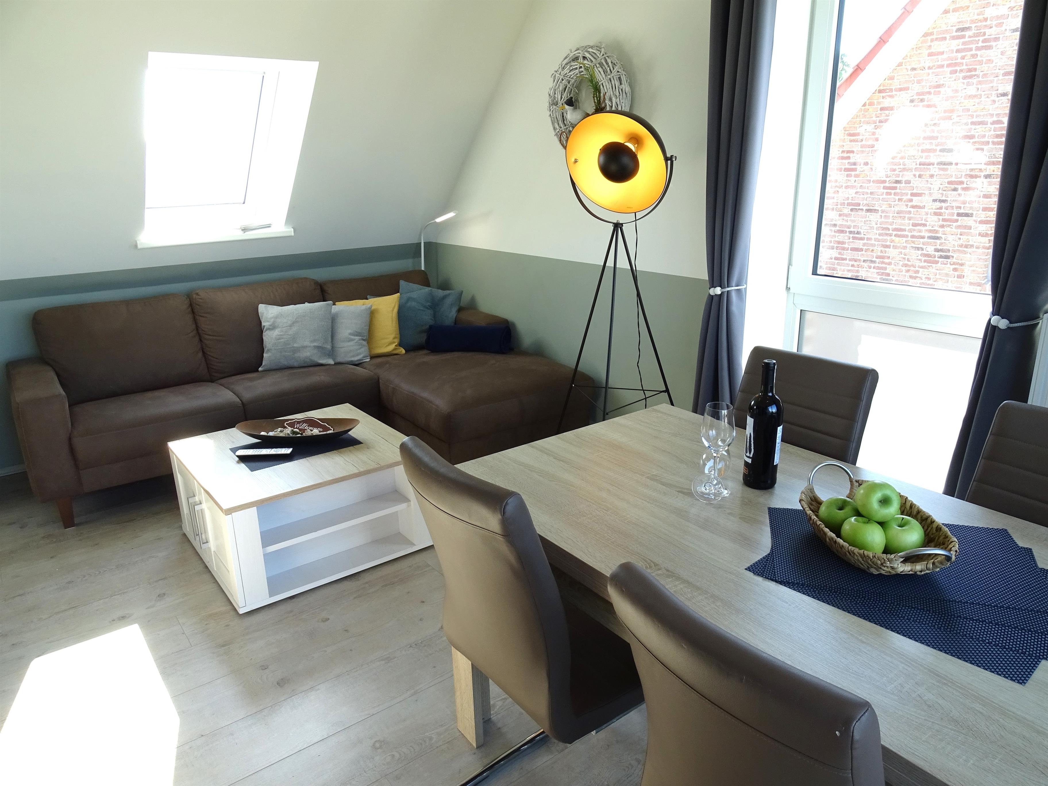 Herzlich Willkommen im Urlaub, die Neubauferienwohnung "Strand Quartiere 13b -Koje 8" befindet sich im Obergeschoss und Dachgeschoss des Hauses und bietet Platz für 4 Erwachsene + 1 Kleinstkind, eine Sauna und Loggia.