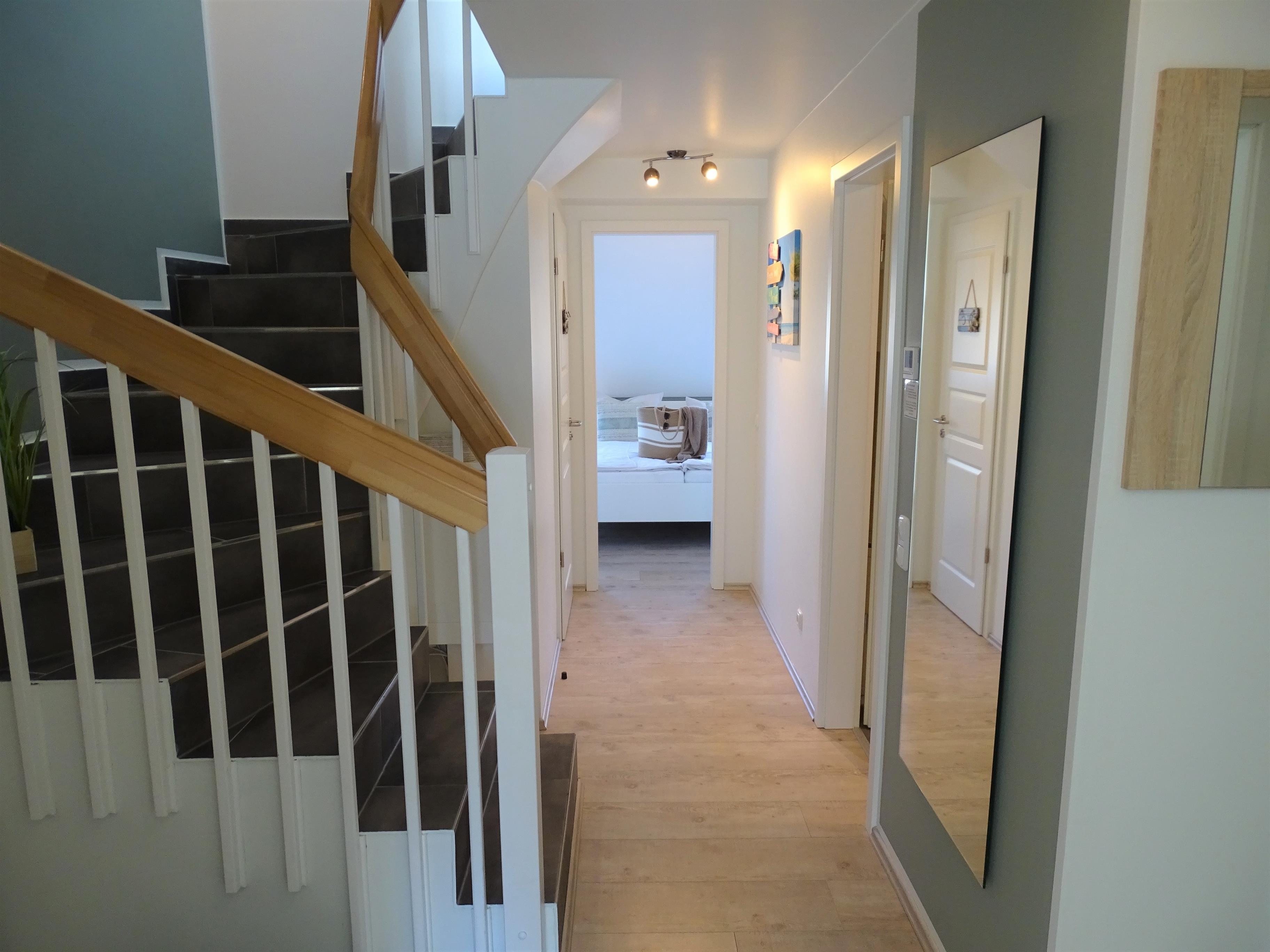 Herzlich Willkommen im Urlaub, die Neubauferienwohnung "Strand Quartiere 13b -Koje 9" befindet sich im Obergeschoss und Dachgeschoss des Hauses und bietet Platz für 4 Erwachsene + 1 Kleinkind, eine Sauna und Loggia.