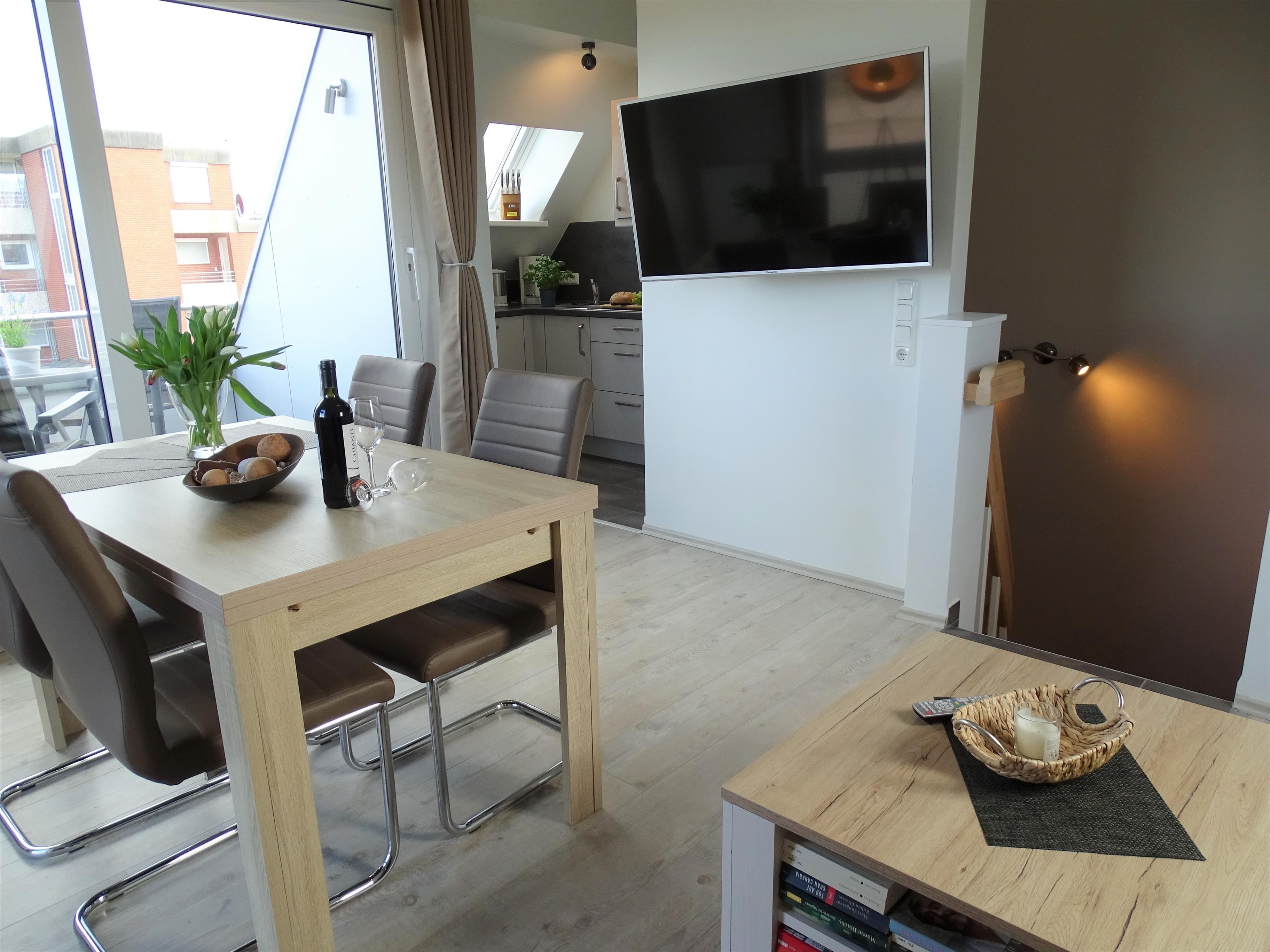 Herzlich Willkommen im Urlaub, die Neubauferienwohnung "Strand Quartiere 13b -Koje 10" befindet sich im Obergeschoss und Dachgeschoss des Hauses und bietet Platz für 4 Erwachsene + 1 Kleinkind, eine Sauna und Loggia.