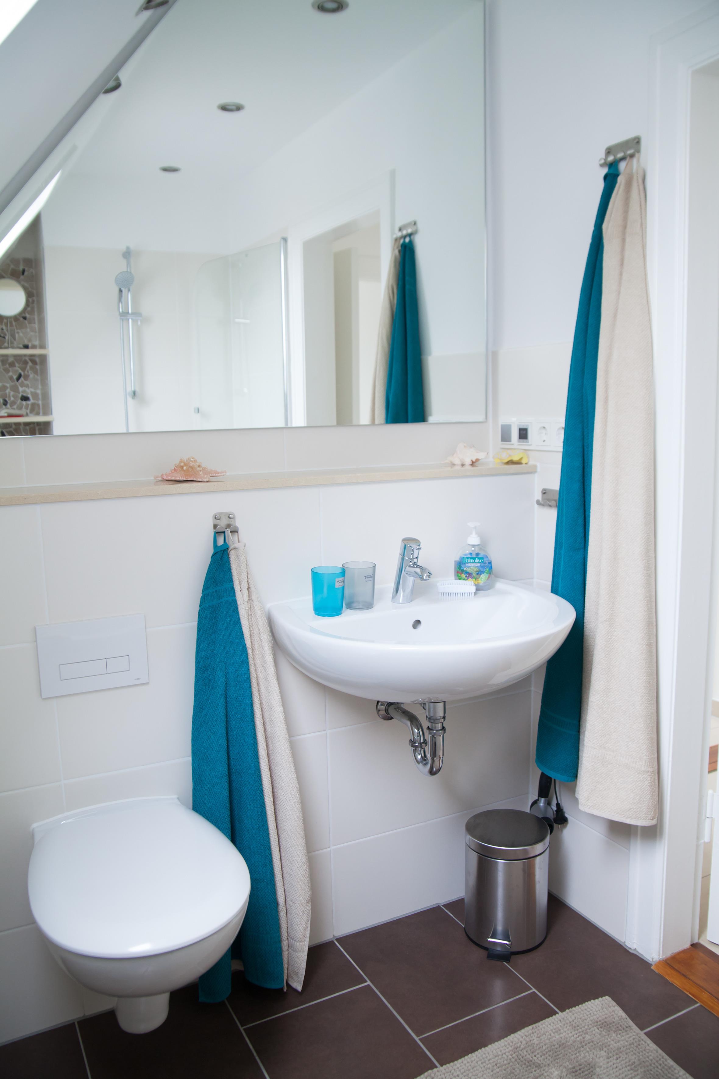 Ein Gäste-WC im Erdgeschoss und ein schönes Badezimmer mit Kombiwanne (Badewanne mit Dusche) im Obergeschoss, gehören selbstverständlich dazu. In Küche und Badezimmer können Sie bei Musik aus dem Touch-Einbauradio abschalten. Für die Allerkleinsten stehen 2 verschiedene Hochstühle und ein Kinderreisebett zur Verfügung.