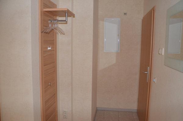 Durch einen mit Steinen umrahmten Wanddurchbruch kommen Gäste in die Küche mit Sitzgelegenheit für 4 Personen. Das erste separate Schlafzimmer verfügt über ein Doppelbett, das zweite separate Schlafzimmer ist mit Einzelbetten ausgestattet. Das Bad verfügt über Badewanne und Dusche, darüber hinaus verfügt die Wohnung über ein Gäste-WC.