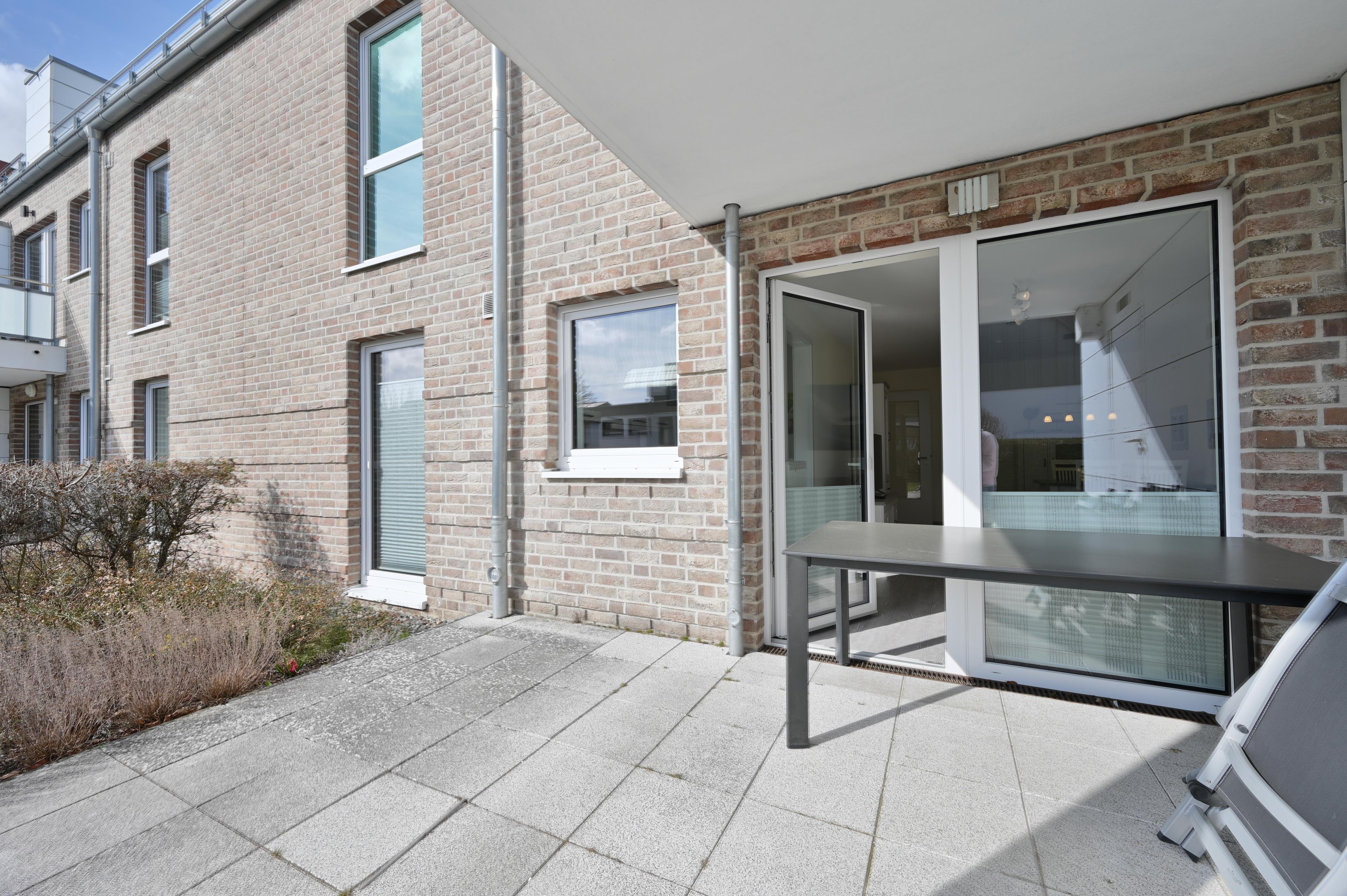Zudem haben Gäste vom Wohn-Schlafzimmer aus Zugang zur hübschen, möblierten Terrasse.