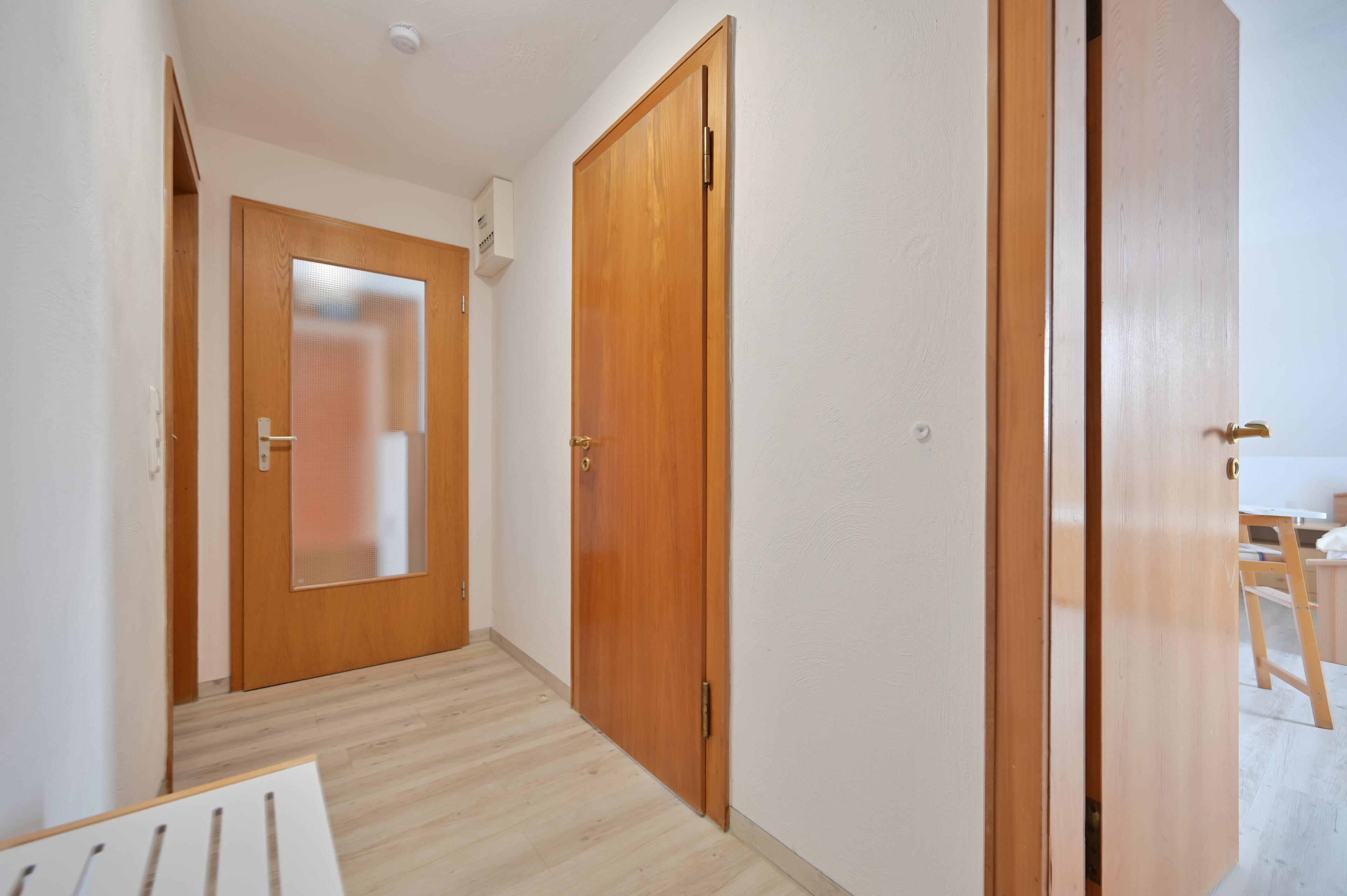 Der Eingangsbereich verfügt über einen Garderobenbereich und verbindet die Wohnräume mittels eines Flurs.