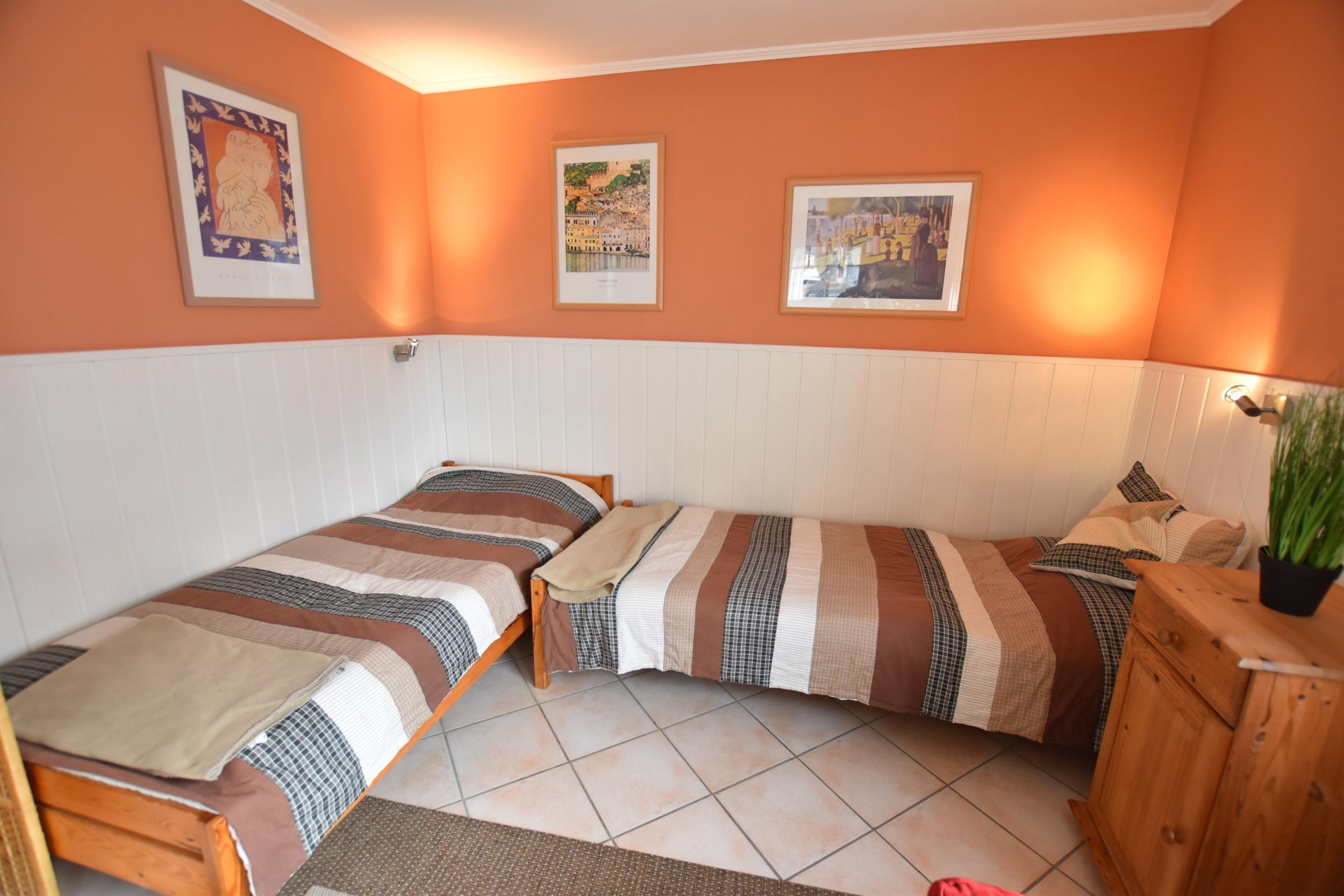 Klein aber fein... diese gemütliche 1-Zimmer-Erdgeschoss-Wohnung wird Sie verzaubern. Drei Personen haben hier auf circa 40 m² Wohnfläche reichlich Platz: Wohn-/Schlafraum mit zwei Einzelbetten (90x200) und Schlafcouch (140x200), Dusche mit WC, voll ausgestattete separate Küche. Direkt vor Ihrem Wohnzimmerfenster befindet sich die grün eingewachsene Terrasse mit entsprechenden Gartenmöbeln und Markise.