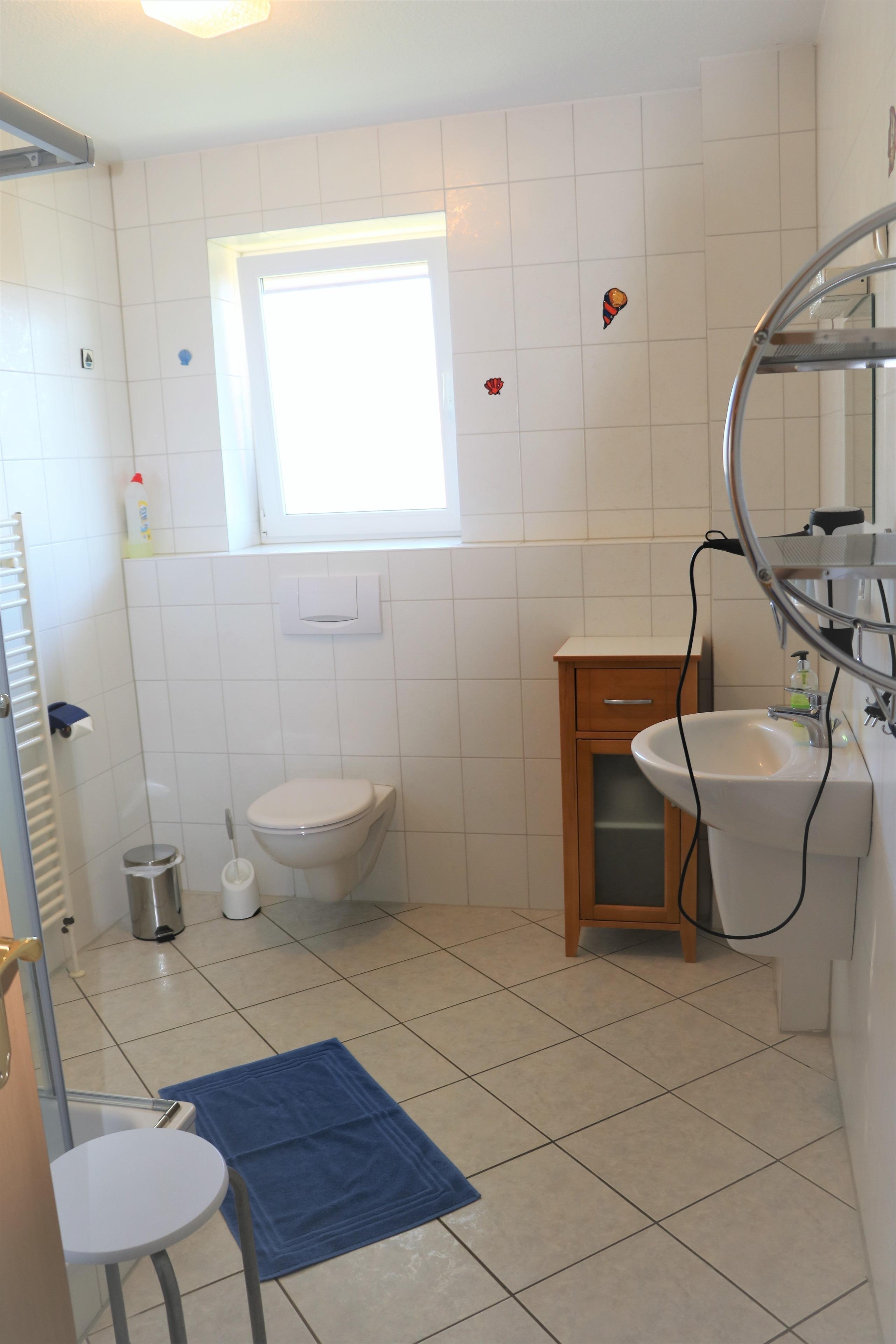 Unsere strandnahe Ferienwohnung 2 liegt im 1. Stock bietet Platz für bis zu 4 Personen. Sie verfügt dabei über 2 Schlafräume, einen Wohnraum mit integrierter neuer Küche in Holzoptik, einem Eßtisch sowie ein Badezimmer mit Dusche und WC.