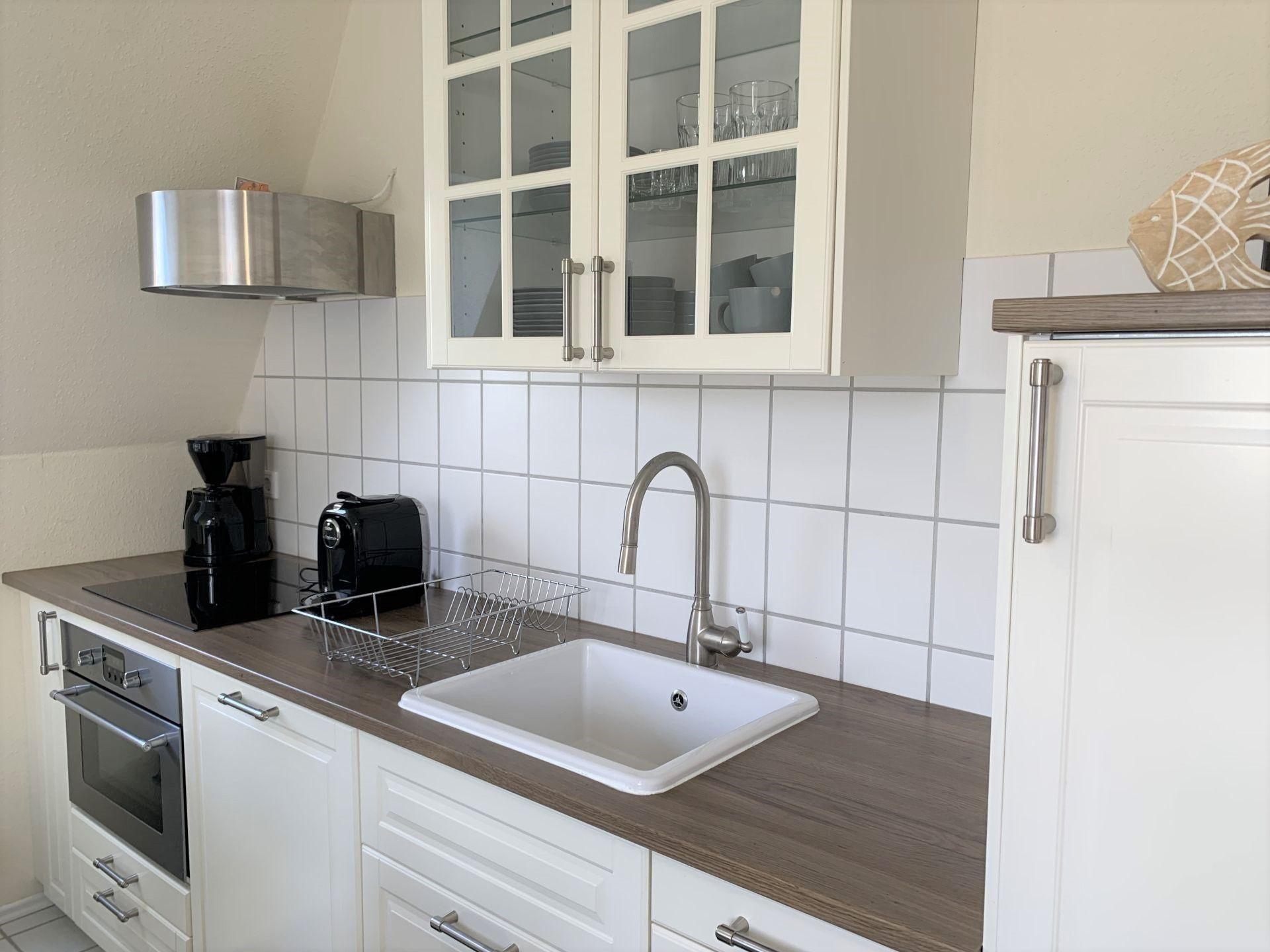 Die Wohnung verfügt über drei Schlafräume, eins davon mit einem großen Boxspringbett (180x200cm) und viel Platz für das Gepäck, ein Schlafraum mit zwei Einzelbetten und 3. Schlafzimmer mit zwei Einzelbetten. In jedem Schlafzimmer befindet sich ein Kleiderschrank. Außerdem gibt es im Wohnzimmer eine ausziehbare Wohnlandschaft, die zwei weiteren Personen Platz zum bequemen Schlaf bietet. Die Küche ist mit allen wichtigen Geräten, wie Spülmaschine, Induktionskochfeld, Backofen, Mikrowelle, Wasserkocher, Toaster und Kaffeemaschine für den täglichen Bedarf ausgestattet. Ein ausziehbarer Tisch mit sechs Stühlen lädt zum Essen, Spielen oder einfach nur zum gemütlichen Beisammensein ein. Es gibt ein großes Bad mit Dusche und Badewanne, WC, zwei Waschbecken und Fenster, sowie ein kleines Bad mit Dusche, einem Waschbecken und WC, ebenfalls mit Fenster.