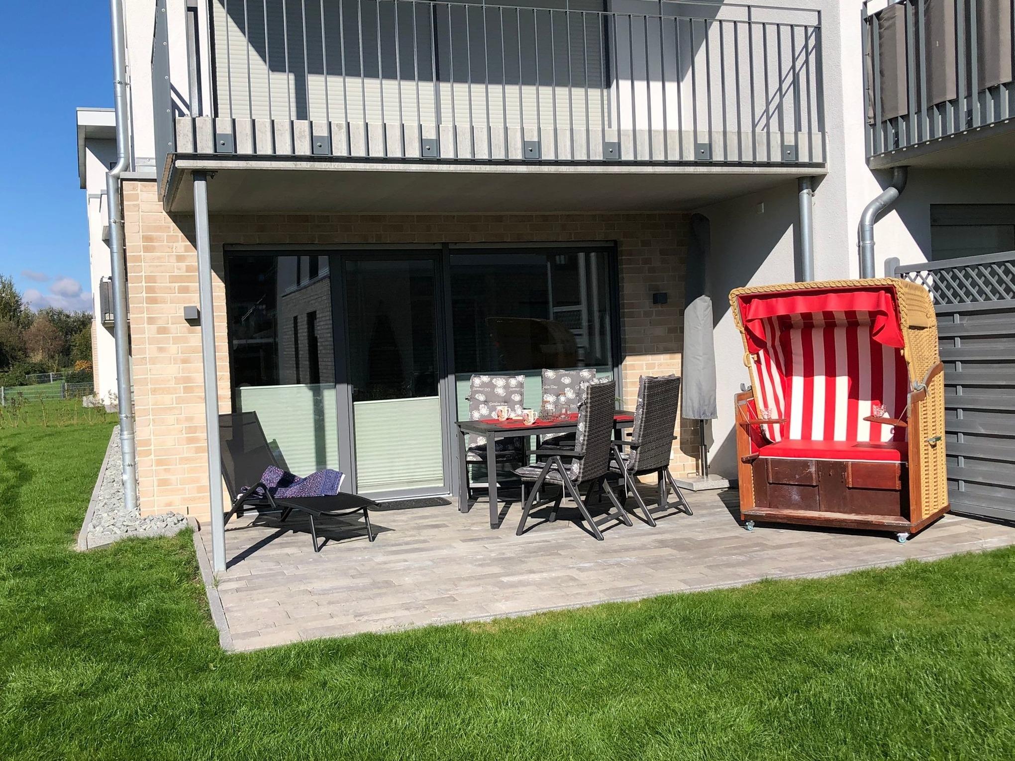 Der Ausstattungsplan ihres Feriendomizils ist dem Grundriss entsprechend durchdacht, dass Inventar ist entsprechend sehr geschmackvoll und liebevoll ausgewählt. Neben 2 separaten Schlafräumen mit Boxspringbetten, einem modern-gemütlichen und offenem Wohnbereich mit kompletter Einbauküche, einem hell und freundlich gestaltetem Badezimmer mit ebenerdiger Dusche, erwartet Sie eine nach "Süden" ausgerichtete sonnige Terrasse mit Gartenmöbeln. In einem Original Ostseestrandkorb zum Relaxen, können Sie die Abendsonne bis spät in den Abend genießen. Das Ferienobjekt ist für maximal 4 Erwachsene und 1 Kleinstkind im Alter bis zu 3 Jahren ausgelegt. Haustiere sind hier leider nicht gestattet. Sämtliche Räume verfügen über Plissees zur Abschattung und Außenrollos für die Verdunkelung. Bettwäsche und Handtücher, sowie Kinderreisebett und Kinderhochstuhl können Sie beim Vermittlungsbüro Wandelt für den Urlaubsaufenthalt bequem anmieten...Ein zugewiesener Kfz - Stellplatz befindet sich direkt am Objekt. Für E-Fahrzeuge ist eine öffentlich nutzbare E-Ladestation in ca. 20 m Entfernung vom Objekt verfügbar. Für Internet Freaks ist eine direkte Verbindung vom Hausanschluss in das weltweite Netz mit Glasfaser vorhanden.