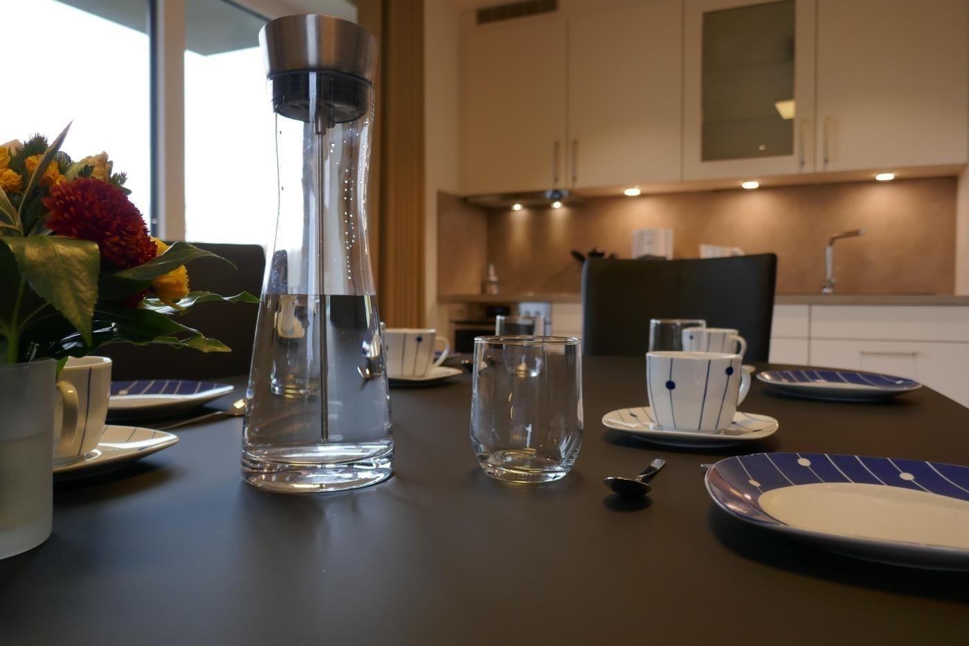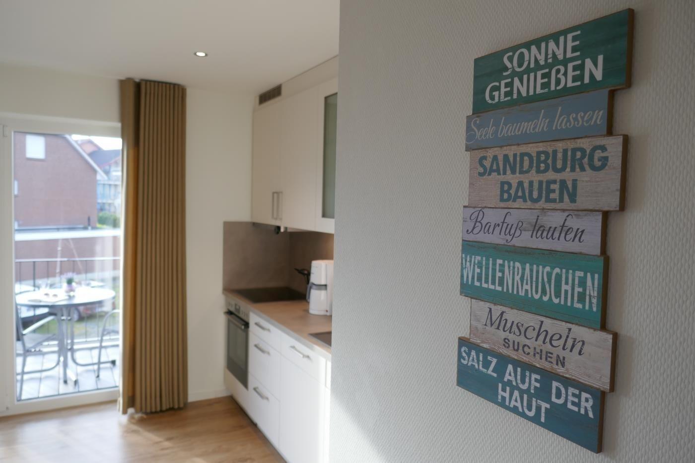 Die offene Einbauküche ist top ausgestattet. Von der Kaffeemaschine über den Eierkocher bis zum Geschirrspüler ist alles vorhanden.