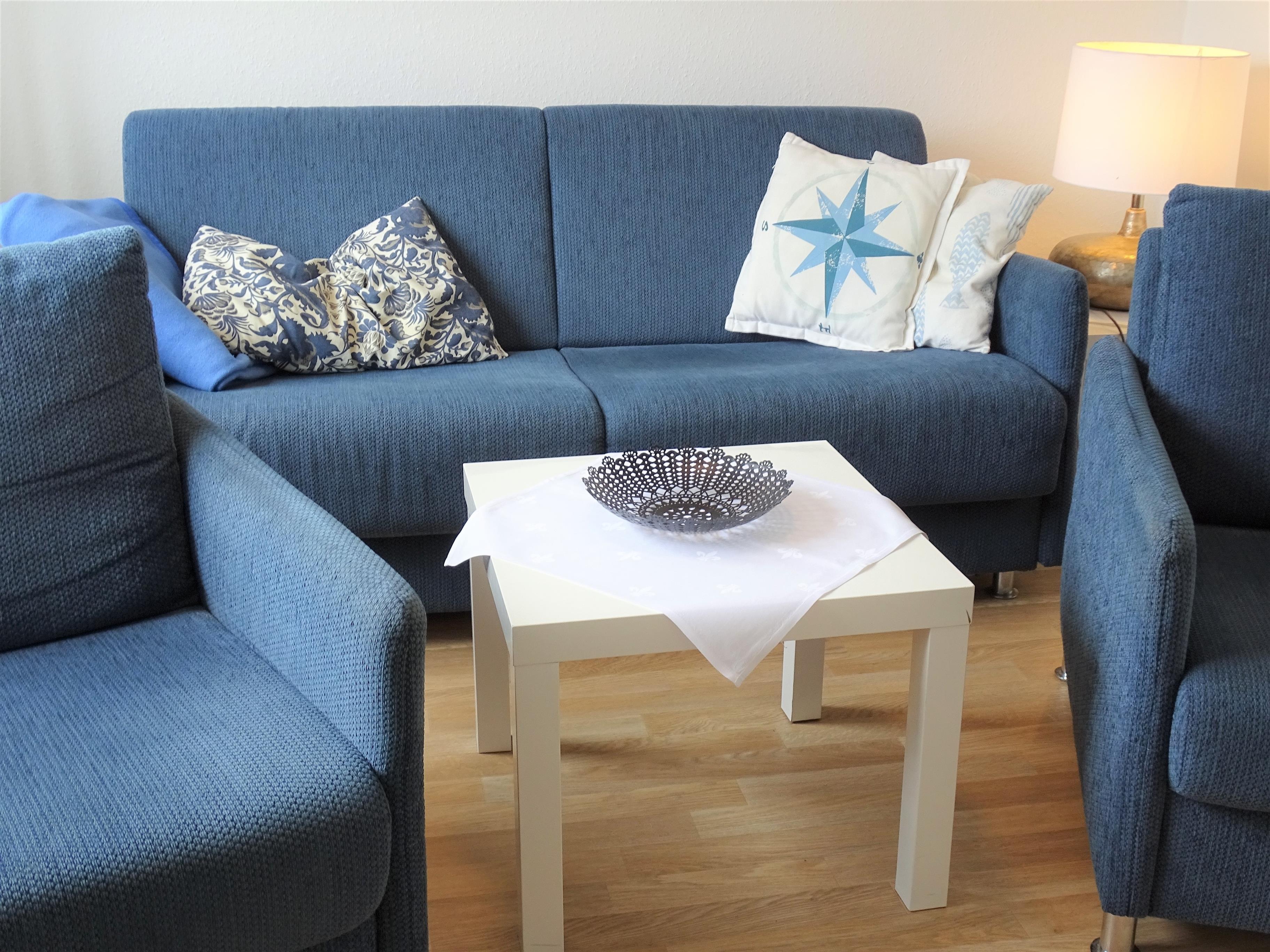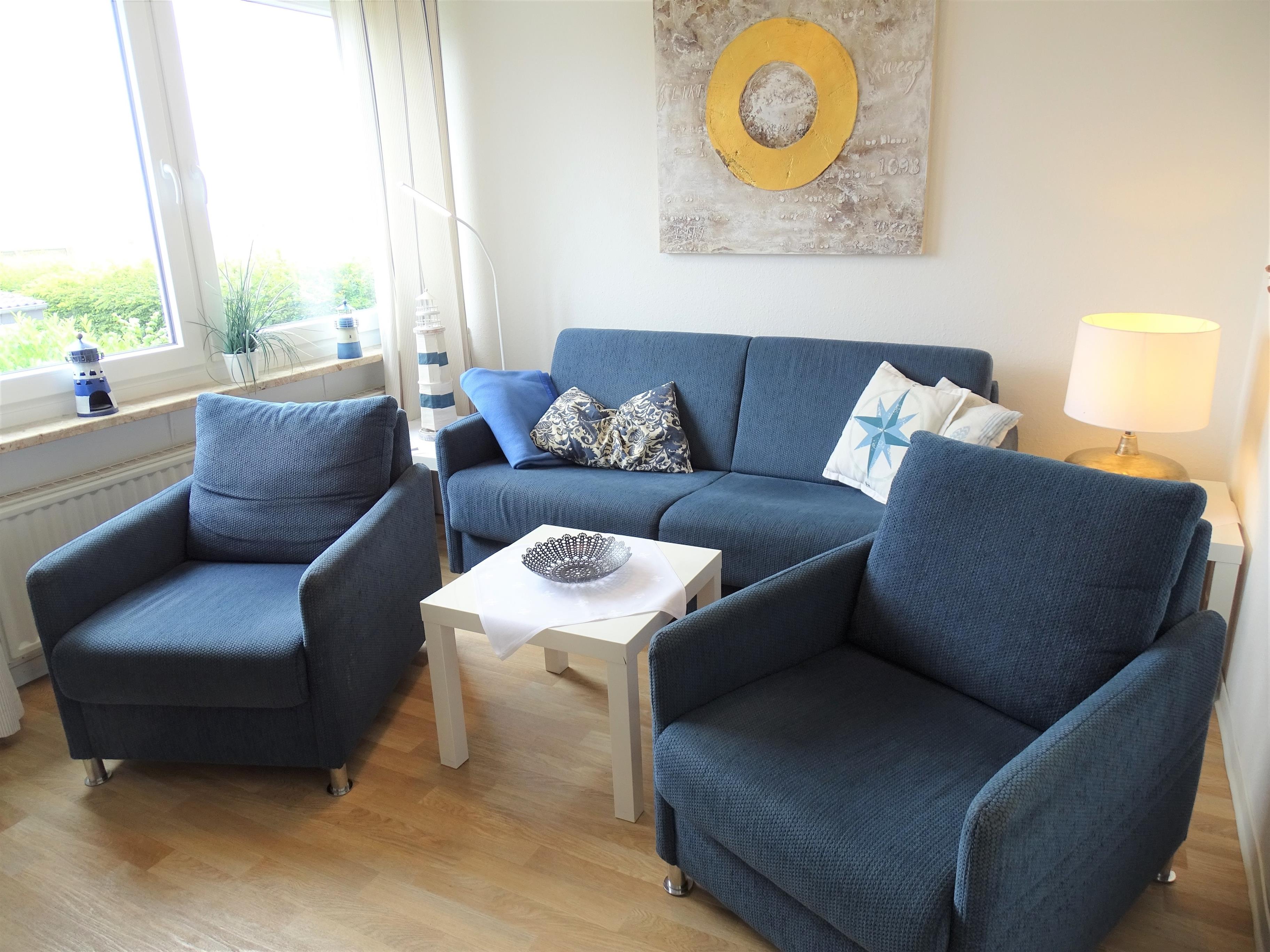 - 1 Wohnzimmer mit seitlichem Seeblick, Sofa, 2 Sesseln, inkl. 81 cm Flachbildfernseher (DVBT),