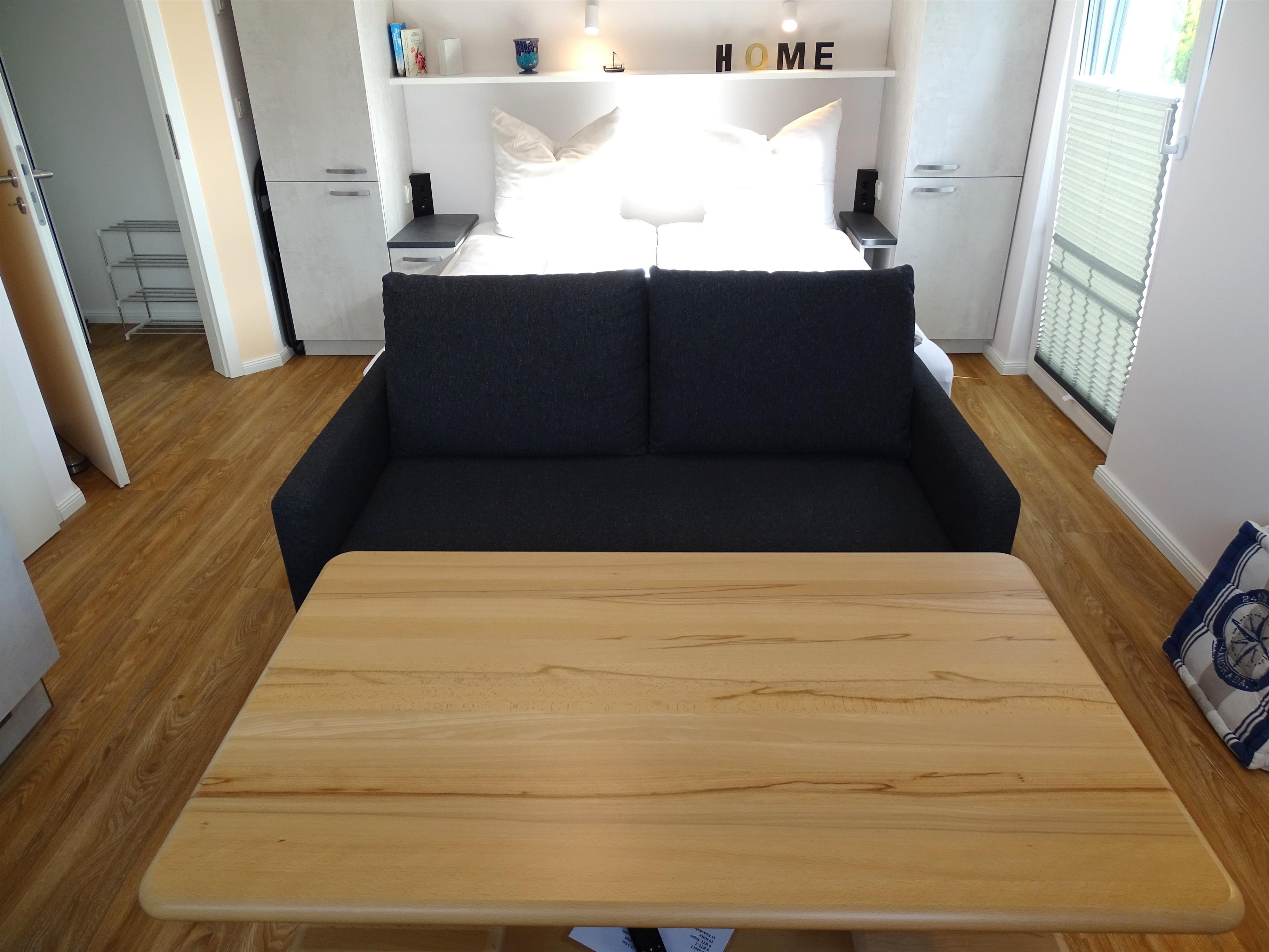 Die modern gehaltenen Innenräume wurden liebevoll gestaltet. Bei der Einrichtung wurde großer Wert auf Komfort gelegt. Farben und Materialien sind harmonisch aufeinander abgestimmt Im Objekt gibt es insgesamt 6 Appartements. Dieses Appartement empfängt Sie mit einem offenen Wohn / Schlaf- und Küchenbereich und hält ein modernes Bad für Sie bereit. Auf dem Balkon stehen Gartenmöbel für Sie bereit.