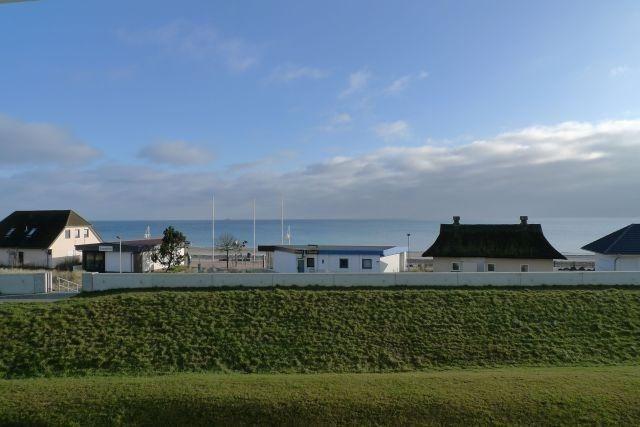 Das Appartement befindet sich im 2. Stock des Strandhotels zur Meerseite, unmittelbar hinter dem Deich. Von hier aus hat man einen tollen Blick über die Promenade und auf das Meer.
