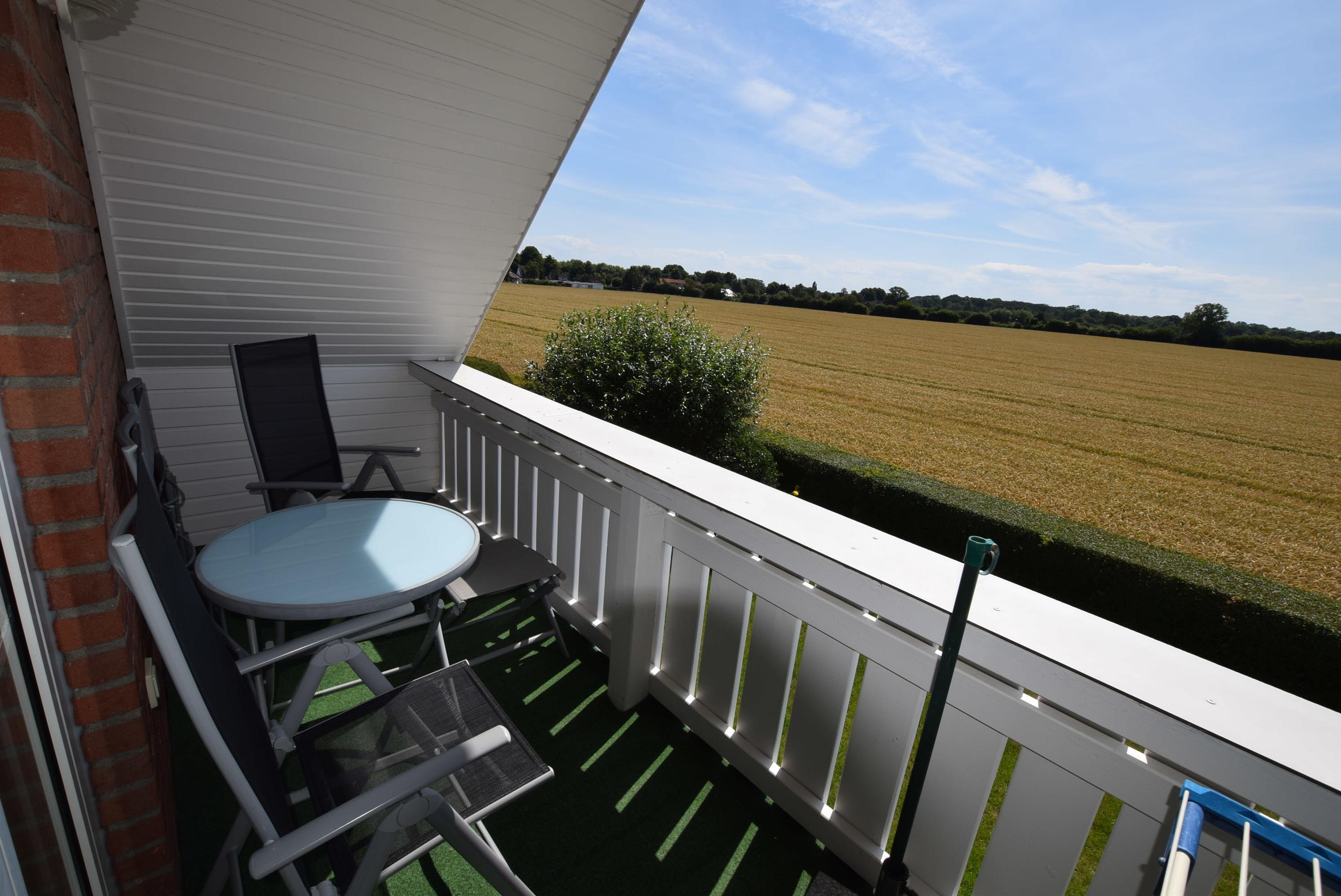 Entfernung zum Ortskern ca. 5 Min.; zum Hauptstrand ca. 8 Min. Von unserem Ferienhof ca. 2 Min. - zu erreichen durch einen Privatweg. Möblierte Süd-Terrasse mit freiem Ausblick über Feld und Wald.